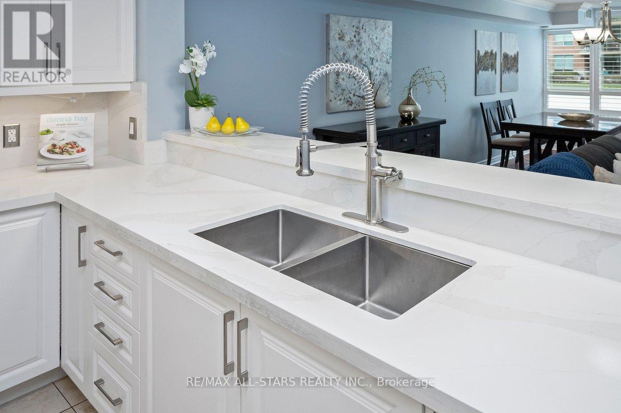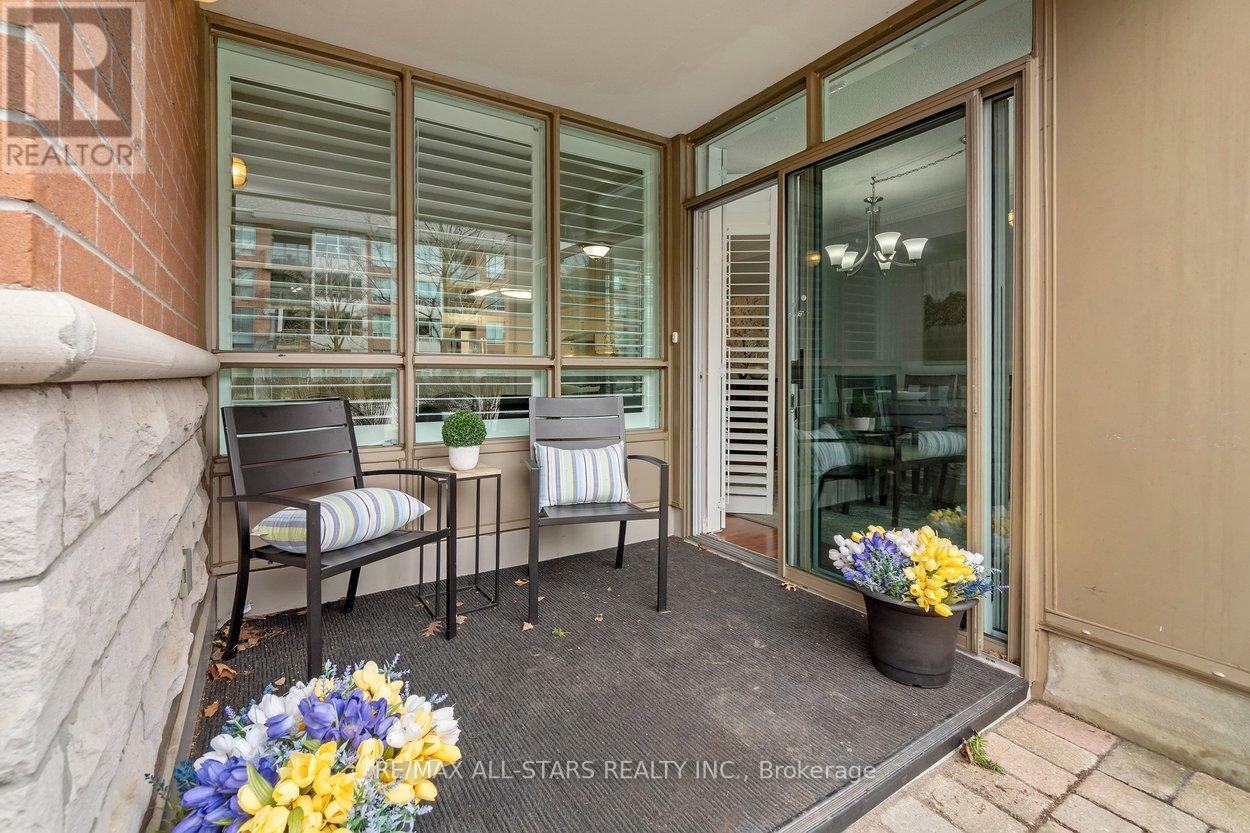 Better than a bungalow, and exceptional value per square foot - this is easy, main-floor living at its very best. No elevators, no waiting, no stairs - step out to your own covered terrace & open patio, where morning coffee turns into neighbourly chats & the world quietly goes by! This rarely offered 1,250 sq ft ground-level suite delivers the kind of space downsizers are looking for, w a layout that comfortably fits your house-sized furniture & dining room set. A welcoming foyer opens into bright, open-concept living & dining areas anchored by a cozy electric fireplace, w fresh paint, laminate floors & custom window coverings. The updated kitchen is both stylish & practical, w quartz counters & backsplash, full fridge & a separate full freezer, all open to the main living space, so you are always part of the conversation. The primary bedroom easily accommodates a king-sized suite, complete w walk-in closet & an updated ensuite featuring quartz counters, a soaker tub & a separate walk-in shower. The 2nd bedrm is generously sized for guests or a den, w a full second bathroom just steps away. In-suite laundry keeps everything convenient & self-contained. One of the standout features here is the outdoor space - nearly double what upper floors offer - ideal for container gardening, fresh air, or for pet lovers. Includes one premium underground parking space (arguably the best in the building) & a locker. Maintenance fees cover high-speed internet, cable, water, building insurance and parking, making day-to-day living wonderfully simple. Swan Lake Village in Markham is one of the GTA's most sought-after gated communities, offering a secure, beautifully maintained setting with walking paths, a vibrant community centre, indoor/outdoor pools, tennis, pickleball, bocce, gym, and a full calendar of social activities - a lifestyle where everything is taken care of, and all that's left to do is enjoy! (id:64974)
