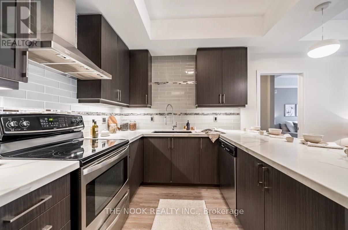 Welcome to Unit 110 at 660 Gordon Street-a beautiful 2-bedroom, 2-bathroom condo in the heart of Whitby, offering the perfect blend of comfort, style, and convenience. This bright and airy home features a spacious open-concept living and dining area, ideal for both relaxing and entertaining. Large windows and a walkout to the private balcony fill the space with natural light, creating a warm and inviting atmosphere. The modern kitchen is equipped with stainless steel appliances, ample cabinetry, and a versatile breakfast bar that can also serve as a workspace. Both bedrooms are generously sized with large windows and plenty of closet space, while the primary suite boasts a walk-in closet and a private ensuite for added comfort. Additional highlights include in-suite laundry, a private balcony, and access to a range of building amenities. Perfect for families, professionals, or anyone looking to enjoy a vibrant community close to all amenities! (id:64974)