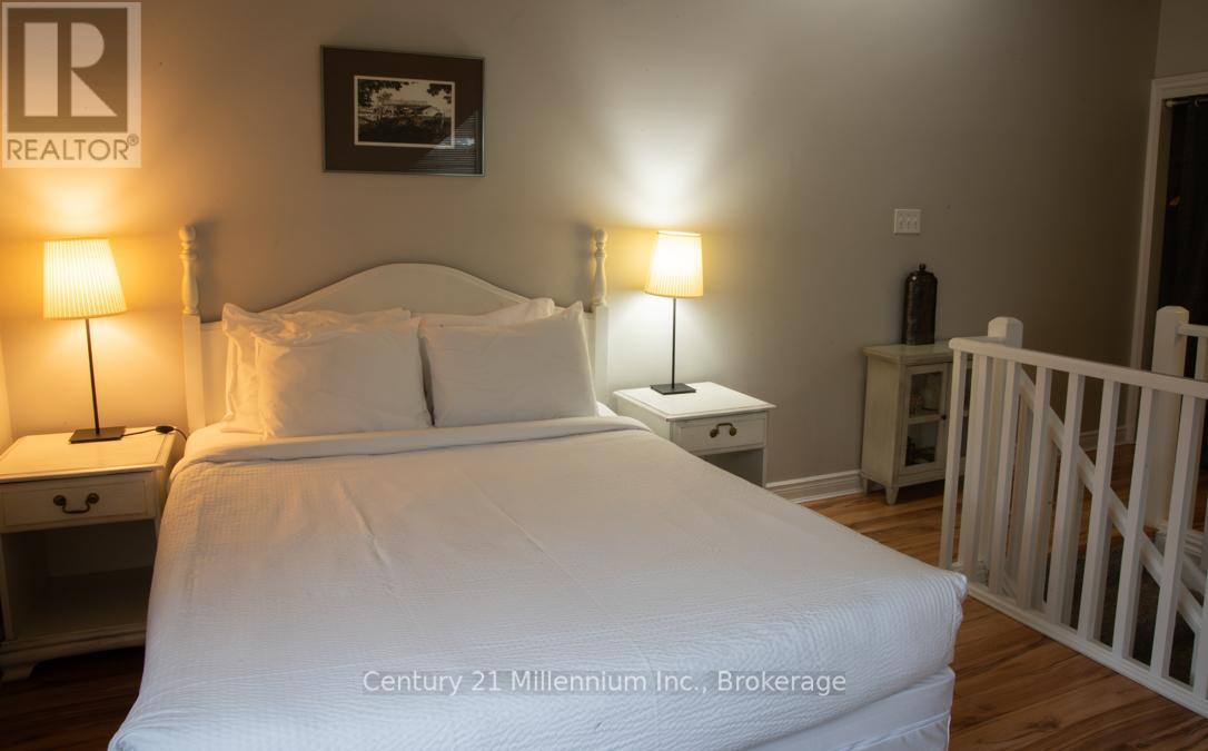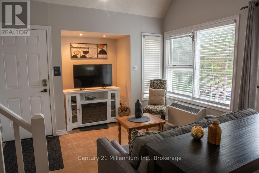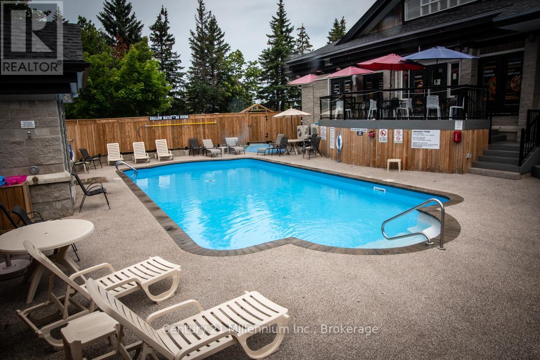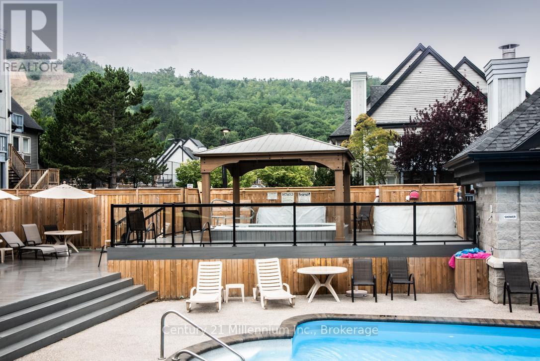 This TURN KEY fully furnished chalet loft suite currently enrolled in the Vacasa/Casago rental program to generate rental income when not in use, it's a win-win! This sunlit chalet just a minute's walk from the ski slopes & pool. Close to Georgian Bay, hiking trails and Collingwood. Cozy abode sleeps up to 6 guests and boasts an open-plan living and dining area alongside a full kitchen. Enjoy the community amenities such as the 2 hot tubs, summer heated swimming pool, tennis/pickleball courts, snow removal service right to the door, Rogers Ignite TV and internet, coin operated laundry. Included in condo fees - water, sewer, exterior building maintenance. Located close to the restaurant, pool and gateway to North lift at ski hill. Property is not part of BMVA, buyer to do due dilligence & consult with their accountant and lawyer prior to placing any offer. (id:64974)