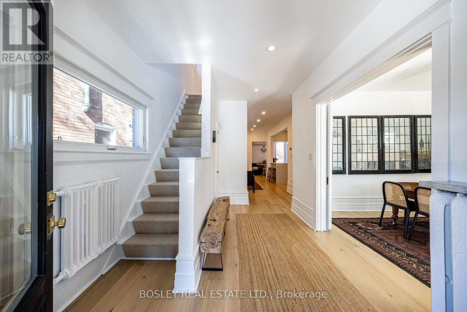 Gracious in size yet understated with a welcoming & relaxed sophistication. Spanning over 3,800 square feet, the 4+1 bedroom, 5-bath residence unfolds with quiet confidence. Principal rooms are inviting, thoughtfully arranged in a layout that is both distinctive and highly functional. A south-facing parlour bathed in natural light and an elegant dining room anchored by a stone mantel greet you upon entry. At its heart, a Scandinavian-inspired family room centers around a wood-burning stove, where clean lines and open sightlines create warmth through simplicity. The kitchen is beautifully appointed with premium appliances, a Wolf gas range, walk-in pantry, and a central island designed for connection. A custom banquette offers integrated storage and an effortless place to gather, create, or study. Heated floors and patterned concrete tile ground the rear mudroom, leading to a fully heated and air-conditioned backyard studio: soundproofed and adaptable as a creative workspace, private office, fitness studio, or media lounge. The reimagined third floor functions as a true primary retreat; a private level with walk-in closet, serene ensuite, and discreet coffee station for unhurried mornings. The spa-inspired bath features double vanities, heated floors, a deep soaking tub, and a curbless glass shower. Second-floor laundry adds daily ease, while the main floor mudroom keeps coats, boots, and backpacks beautifully contained through every season. The finished lower level with side entrance offers exceptional flexibility: recreation space, built-in bar, guest suite, gym, and a spa-inspired bath with wet-room detailing. Updated with intention, while preserving architectural character with deep baseboards and vintage doors, this is Roncesvalles living: elevated, composed, and quietly exceptional. (id:64974)