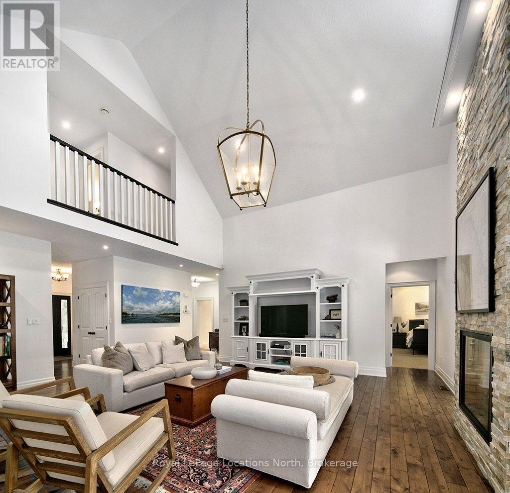 Beautiful Lora Bay home, situated along the picturesque 4th hole of the golf course, this 6-bedroom, 3.5-bath residence is surrounded by meticulously landscaped perennial gardens. Many updates throughout including freshly painted main floor and upper hall walls and trim and finished lower level.The main floor grand cathedral ceiling adds a sense of openness and sophistication, complemented by a double-sided gas fireplace that warms both the living room and a charming sunroom. Gleaming hardwood floors flow seamlessly throughout, enhancing the home's timeless appeal. The spacious primary suite offers a spa-like ensuite bath and 2 good sized walk in closets!The kitchen is a culinary enthusiast's dream, featuring a convenient walk-in pantry with updated cabinetry and electrical and wine/beer fridge, ample dining space, in-floor heating and granite countertops. A formal dining room provides a great setting for hosting gatherings with family and friends, ensuring that every occasion is memorable.Upstairs, three additional bedrooms and a well-appointed bath provide flexibility for family or guests.The basement, equipped with hydronic radiant in-floor heating and oversized windows features 2 bedrooms, rec room and 3pc bathroom.Step outside to discover your own private oasis. Dine al fresco under the freshly painted pergola (just rebuilt in Spring 2025), surrounded by the beauty of the meticulously landscaped stone patios. The thoughtful design of the outdoor space creates the perfect setting for relaxation and entertainment and the pergola offers shade during hot summer days.Located just minutes from Thornbury, Lora Bay offers a host of amenities, including a golf course, a delightful restaurant, a members-only lodge, a gym, and two beautiful beaches. Embrace the sense of community in this welcoming enclave, where every day feels like a retreat.Lora Bay monthly fee $265.67. (id:64974)