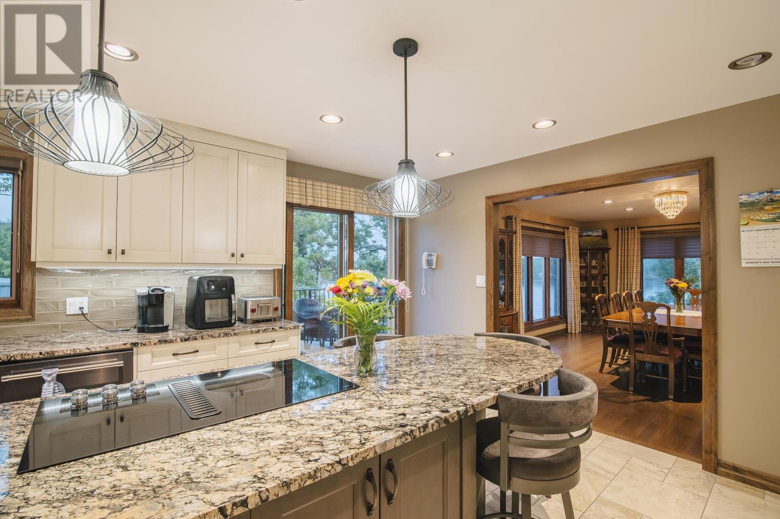 Executive Waterfront Estate on LOTW -RECENTLY REFRESHED -Rarely does a residence of this distinction grace the market in such a coveted location-where luxury meets unparalleled access to Kenora’s finest amenities and the breathtaking expanse of LOTW. The home offers a Sophisticated Design with Impeccable Craftsmanship. Spanning approx. 3,800sqft over 2 meticulously maintained Lvl, this home boasts 4+ Br, 4 Bth and a lush professionally landscaped grounds enhanced by an automated irrigation system. Every detail reflects thoughtful design and superior quality. Step through the arched entry into an oversized foyer where timeless elegance and refined finishes set the tone for the homes contemporary design. The heart of the home is the 2-tiered LR, where gleaming hardwood floors and a stately brick-faced gas FP create an inviting ambiance. The Lwr tier offers a cozy retreat for movie nights or soaking in panoramic southern views. The gourmet Ktn is a chef’s masterpiece, featuring heated tile flooring, a sprawling granite island and premium built-in appliances. Flowing seamlessly into the grand dining area, this space is designed for memorable feasts with loved ones. Tucked privately off the LR, the primary suite is a haven of tranquility. The spacious Br opens to a private waterside balcony, while the spa-inspired ensuite pampers with a jetted tub, shower and an expansive walk-in closet. The walk-out Lwr Lvl is an entertainer’s dream, featuring a vast rec rm, office, 3 additional Br, 2 full Bth and a den easily convertible to a 5th Br. The expansive 3-stall garage is ready for all your vehicles and toys. Step outside to your own slice of paradise-where a pristine sand beach is framed to the north by a Century Old Stone Wall layed by craftsman from years gone by. A solid dock stands ready for endless adventures. This is more than a home-it’s a legacy property in one of LOTW’s most enviable locations. Bonus Option: The possibility to create a self contained basem (id:64974)