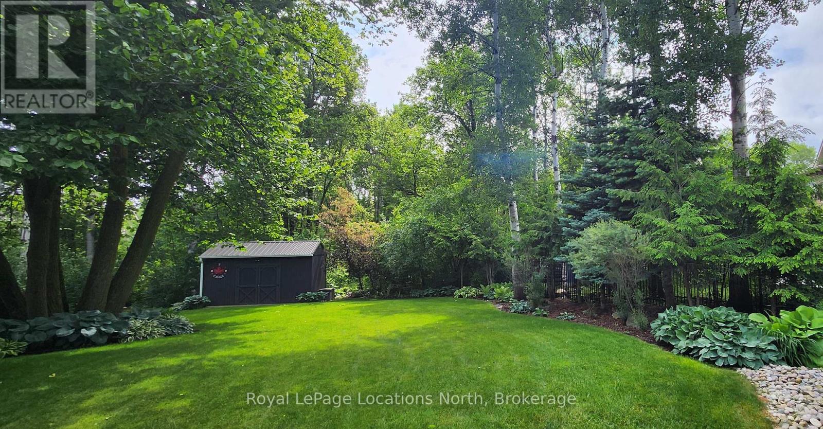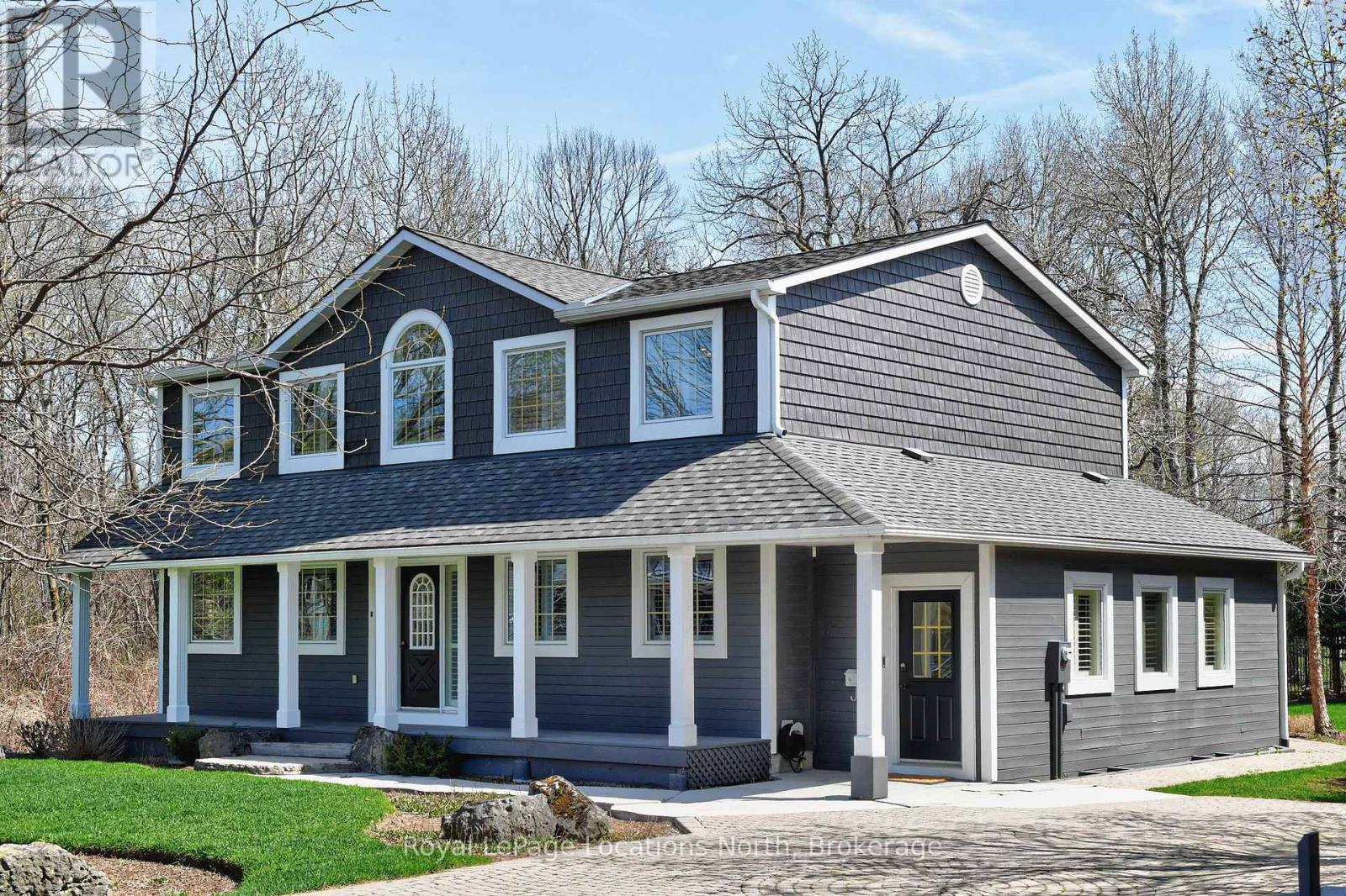 Beautiful CUSTOM BUILT home/chalet, on a cul-de-sac, steps to Blue Mountain Village & Skiing! Privacy w 3 acre protected greenspace, never have a house on your east side! 4 bedroom, 4 full bath, 3332 sqft of finished living space. A primary bedroom suite upstairs + a large main floor bedroom. Guests use main door on the covered front porch, you can enter into the side breezeway w slate tiles & large windows for lots of light, a 2nd back entrance & 2nd stairway to the lower level. Chef's dream kitchen w attractive granite counters ,lots of cupboards & counter space, SS appliances & breakfast bar. Open concept w large dining area to fit all your dining cabinets & overlooks the gorgeous backyard w walkout to the back dining patio.2nd walkout to hot tub deck w greenspace privacy, built-in gas firepit, backyard oasis w beautiful large trees. Main floor bathroom has a convenient shower for use after your hot tub & granite counters. Large living room w gas fireplace, all front rooms (main & 2nd floor) have custom shutters, w blinds on other windows. Upgraded Awning Windows (hinged at the top, creating an awning effect provides excellent ventilation & rain protection). Primary bedroom suite w green space views, 2nd cozy gas fireplace, his & hers closets, mirrored dressing area & ensuite w granite counters, heated floors & soaker tub in an attractive stacked-stone enclave. 2 more large bedrooms on this floor & main bath w gorgeous walk-in shower & granite counters. Main basement staircase has a door to provide quiet between levels, huge family room currently set up as a home office w ceramic "wood-plank look" floors, an extensive built-in wall unit,4th full bathroom w sauna, a laundry room,utility/storage room w built-in ski-tuning bench, on-demand (owned) water heater, another storage room. Enjoy the backyard oasis created by renowned Landmark Group, large drive-shed & side parking for10 cars.Note jumbo flagstones front & back! Visit REALTOR website for further informatio (id:64974)
