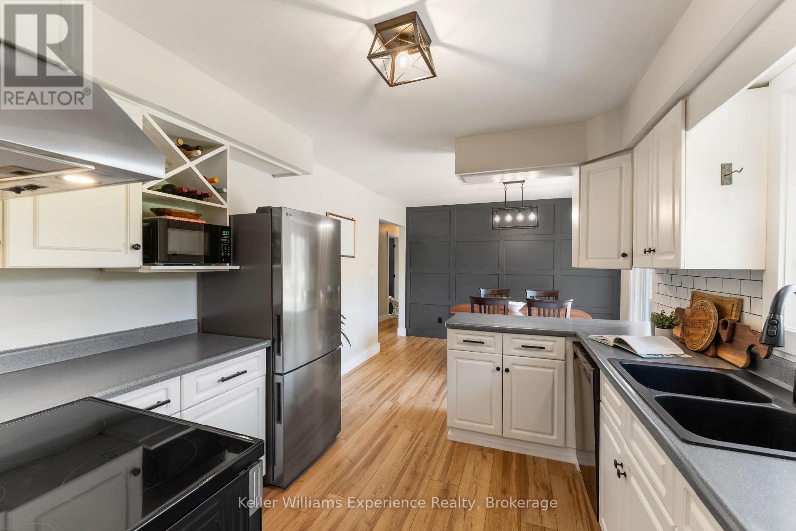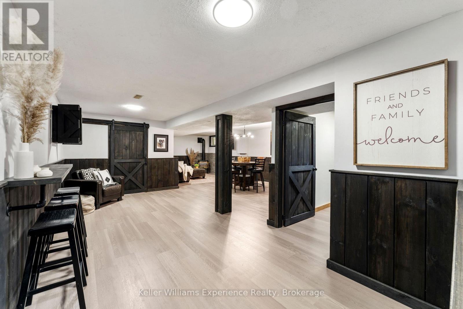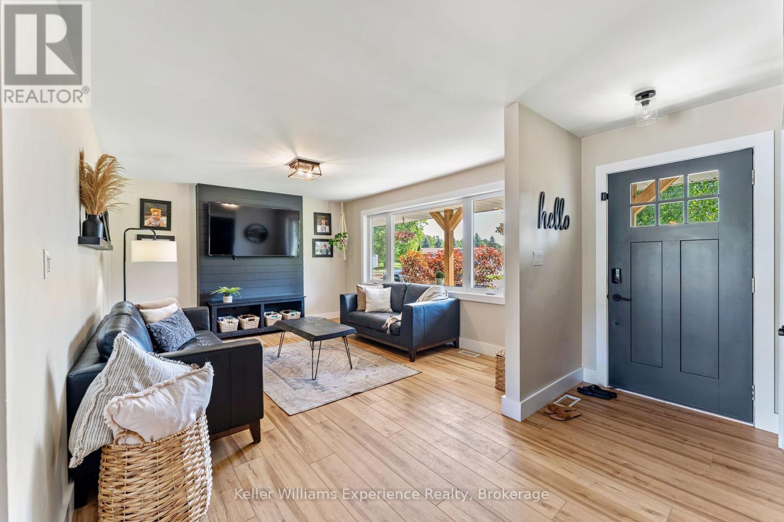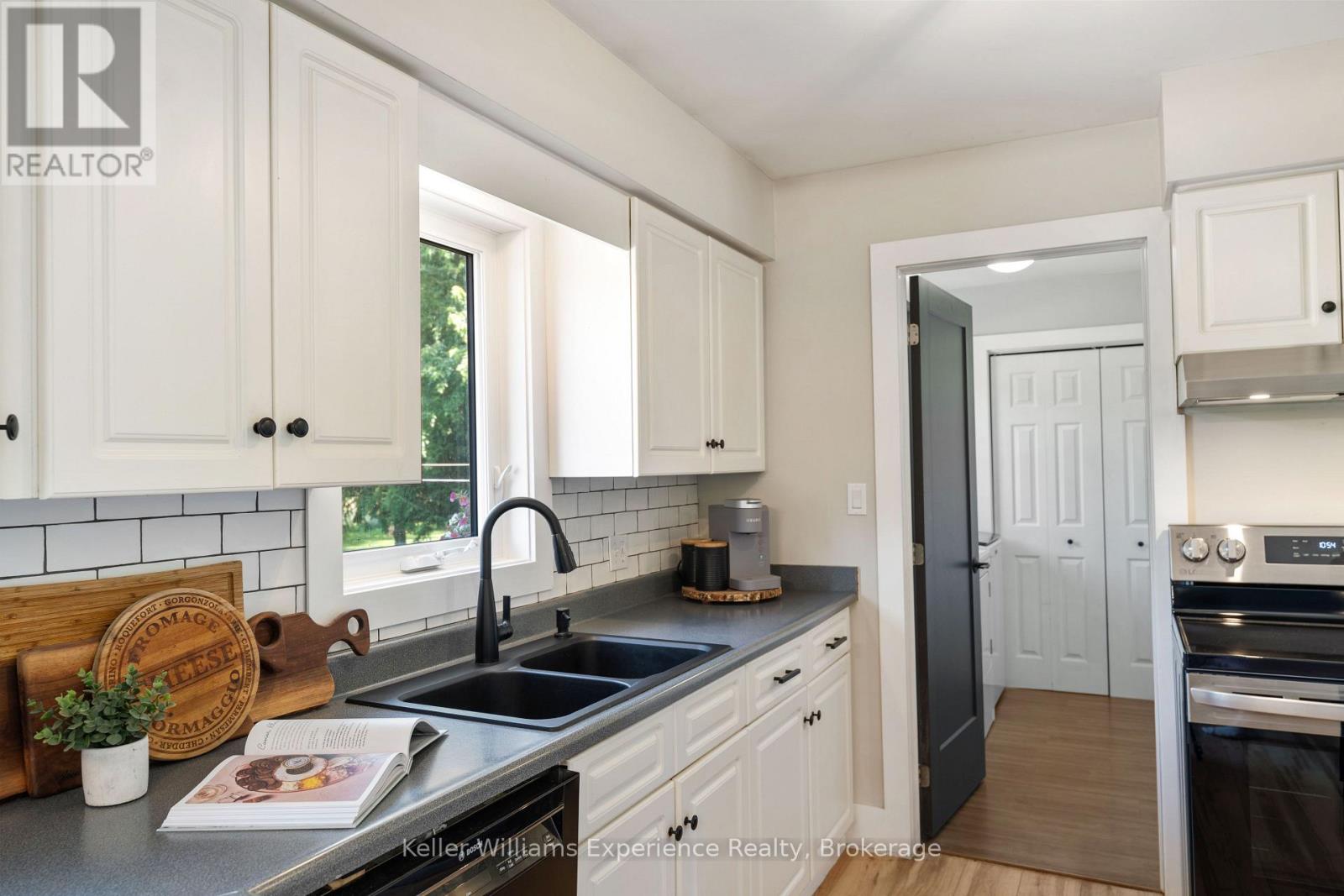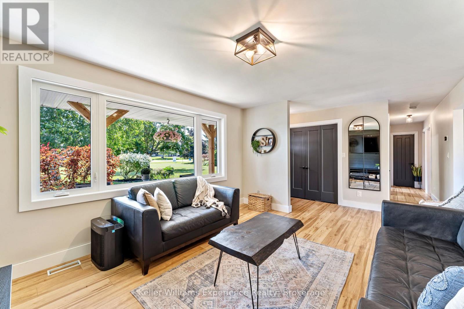 So good you wont be able to take your eyes off it. That's 110 Mary Avenue. This gorgeously updated 4-bedroom, 2-bathroom bungalow is tucked at the end of a quiet cul-de-sac in one of Georgian Bluffs' most loved neighbourhoods. Crisp white exterior, bold black accents, natural timber posts, and a welcoming covered porch. Inside, it's modern, fresh, and thoughtfully designed with true one-floor living and a finished basement for bonus space. The main floor features stunning luxury wide plank vinyl flooring (2024), black soundproof solid-core interior doors (2025), and fresh white wood trim throughout. The sunny living room is anchored by a striking black accent wall, and the dining room brings the drama with coffered black wall paneling - high style in all the right places. The kitchen is white and bright with a tile backsplash, matte black sink, brand new appliances (2025), and sliding glass doors leading to a huge 450 sq ft raised deck (2025) with no backyard neighbours. Three bedrooms on the main floor include a primary with his and her closets and a private 3-piece ensuite. Two more generous bedrooms share a 4-piece bath. You've got main floor laundry and a mudroom with inside access from the garage - everyday living made easy. Downstairs? A cozy rec room with a gas fireplace, a fourth bedroom, an insulated workshop, and updated flooring (2025) with dry-core subfloor to keep things warm and dry all year long. All the big stuff is done: Windows (2024), Front Door (2024), Garage Door (2022), Attic Insulation (2024), and Sump Pump (2023). Big private lot. Mature trees. Great neighbours. Fibre optic internet, and yes, SkipTheDishes delivers. It even comes with an invisible fence system for your pups! This is a turn-key home in a location you'll love - and it's ready for you to move right in. (id:64974)