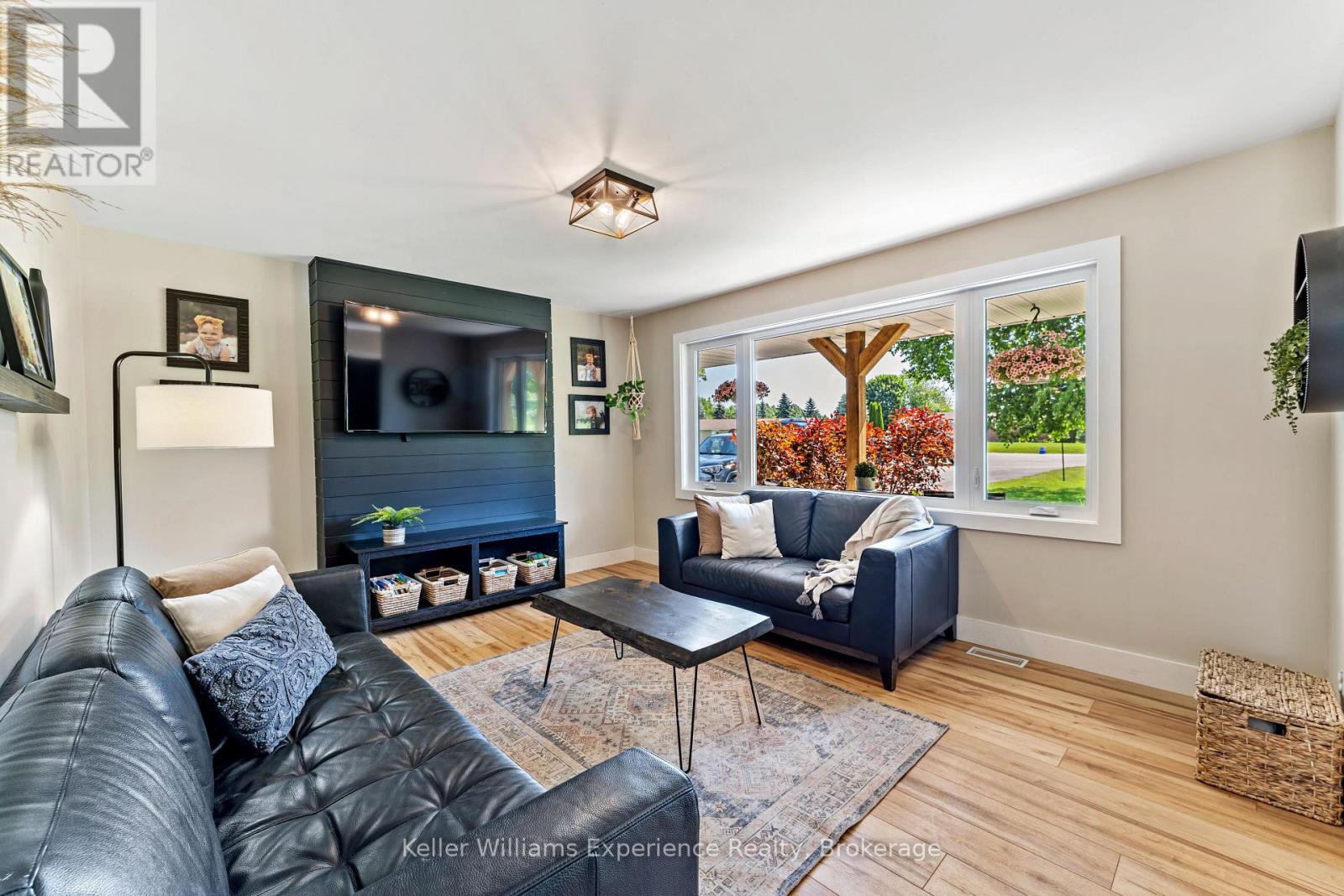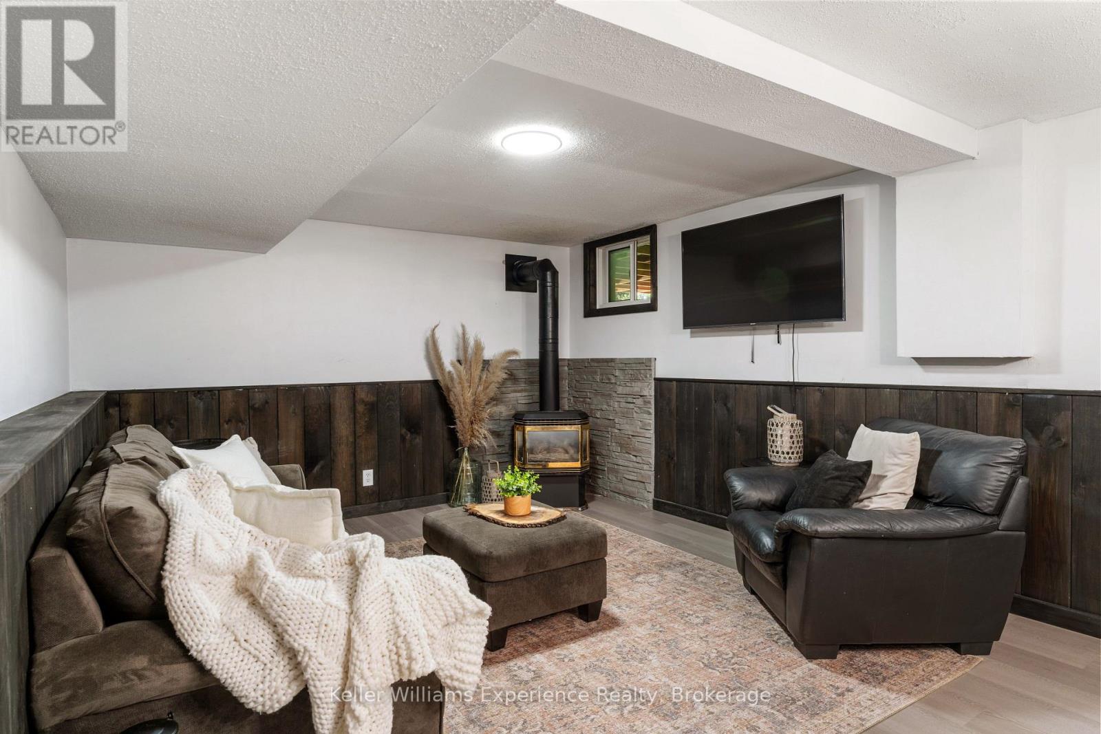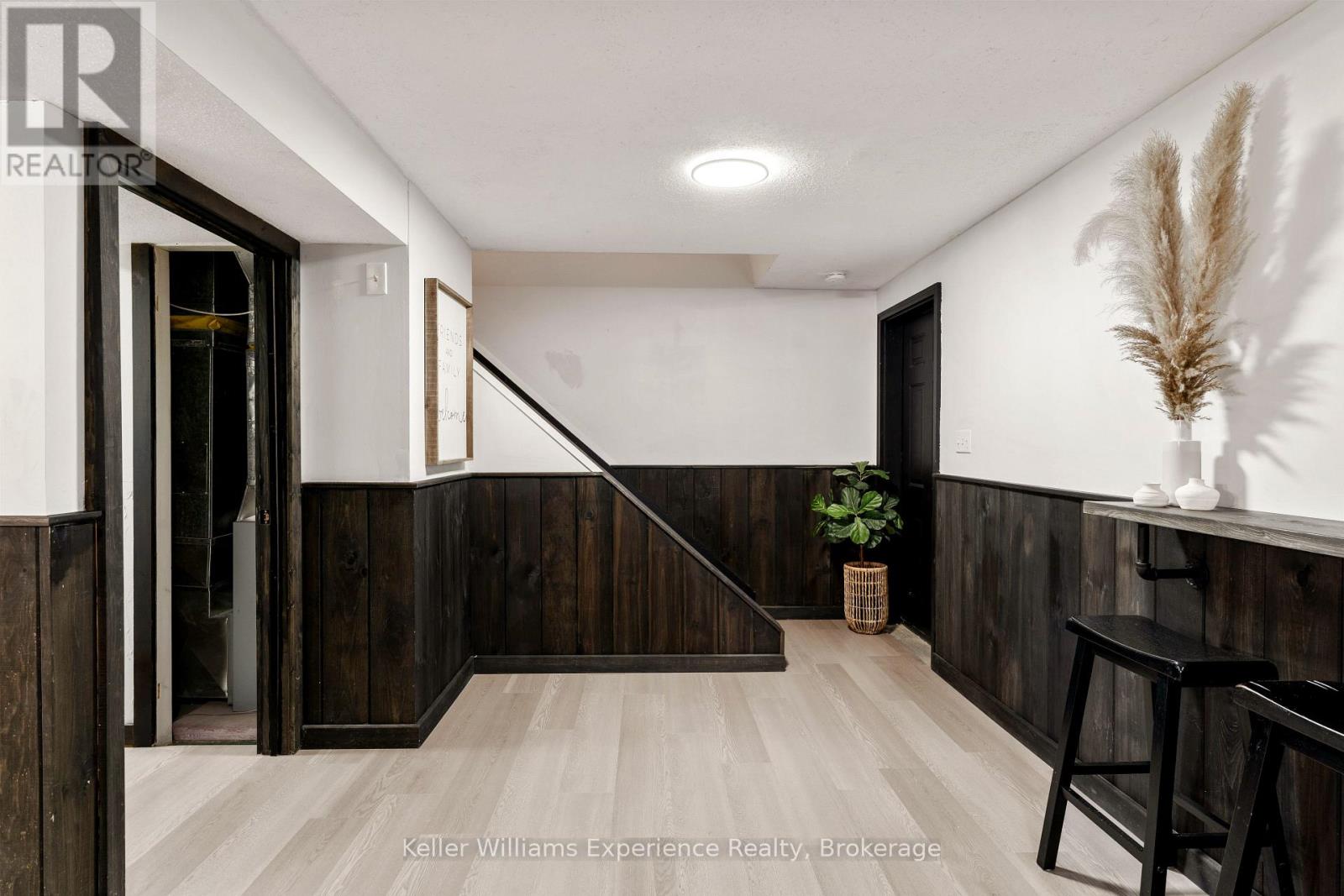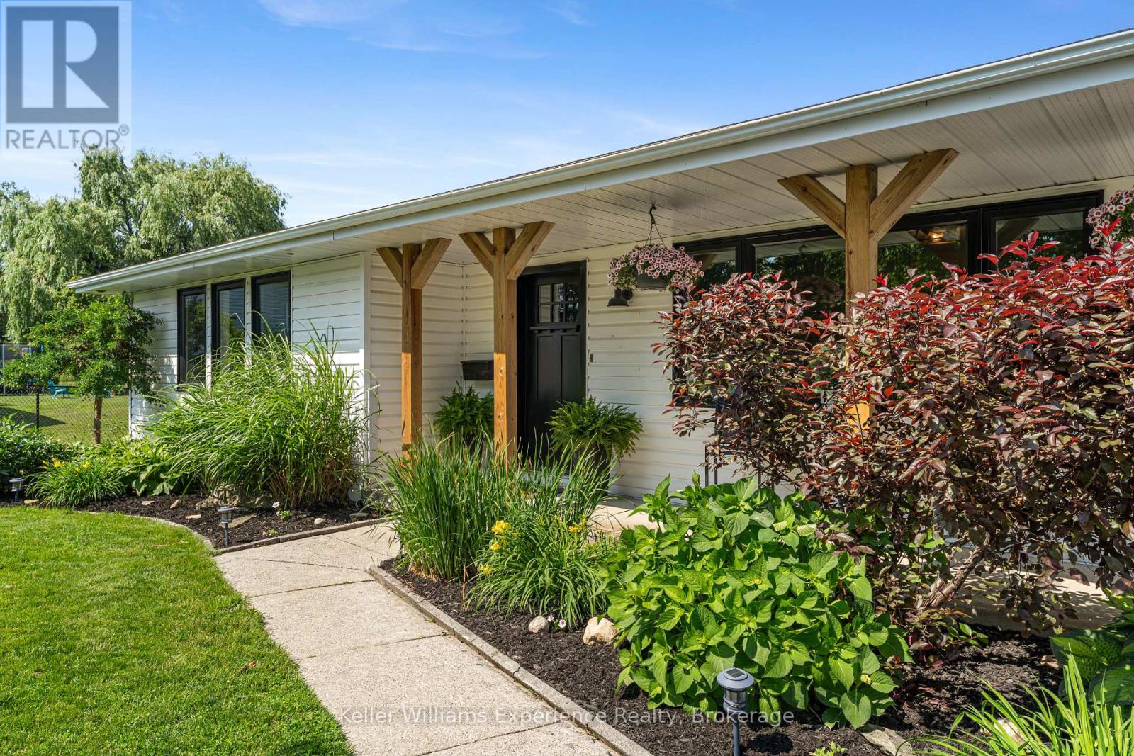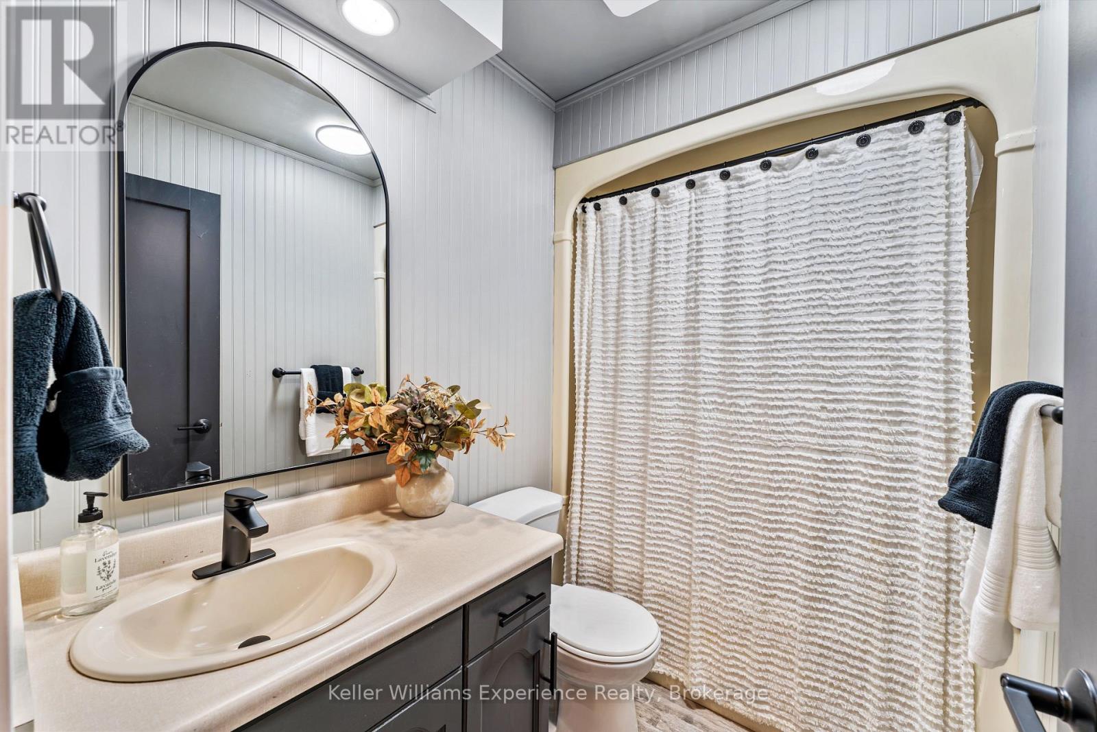 So good you wont be able to take your eyes off it. That's 110 Mary Avenue. This gorgeously updated 4-bedroom, 2-bathroom bungalow is tucked at the end of a quiet cul-de-sac in one of Georgian Bluffs' most loved neighbourhoods. Crisp white exterior, bold black accents, natural timber posts, and a welcoming covered porch. Inside, it's modern, fresh, and thoughtfully designed with true one-floor living and a finished basement for bonus space. The main floor features stunning luxury wide plank vinyl flooring (2024), black soundproof solid-core interior doors (2025), and fresh white wood trim throughout. The sunny living room is anchored by a striking black accent wall, and the dining room brings the drama with coffered black wall paneling - high style in all the right places. The kitchen is white and bright with a tile backsplash, matte black sink, brand new appliances (2025), and sliding glass doors leading to a huge 450 sq ft raised deck (2025) with no backyard neighbours. Three bedrooms on the main floor include a primary with his and her closets and a private 3-piece ensuite. Two more generous bedrooms share a 4-piece bath. You've got main floor laundry and a mudroom with inside access from the garage - everyday living made easy. Downstairs? A cozy rec room with a gas fireplace, a fourth bedroom, an insulated workshop, and updated flooring (2025) with dry-core subfloor to keep things warm and dry all year long. All the big stuff is done: Windows (2024), Front Door (2024), Garage Door (2022), Attic Insulation (2024), and Sump Pump (2023). Big private lot. Mature trees. Great neighbours. Fibre optic internet, and yes, SkipTheDishes delivers. It even comes with an invisible fence system for your pups! This is a turn-key home in a location you'll love - and it's ready for you to move right in. (id:64974)