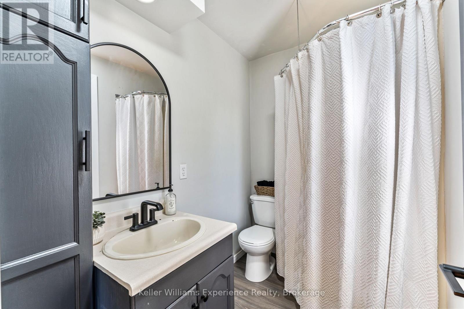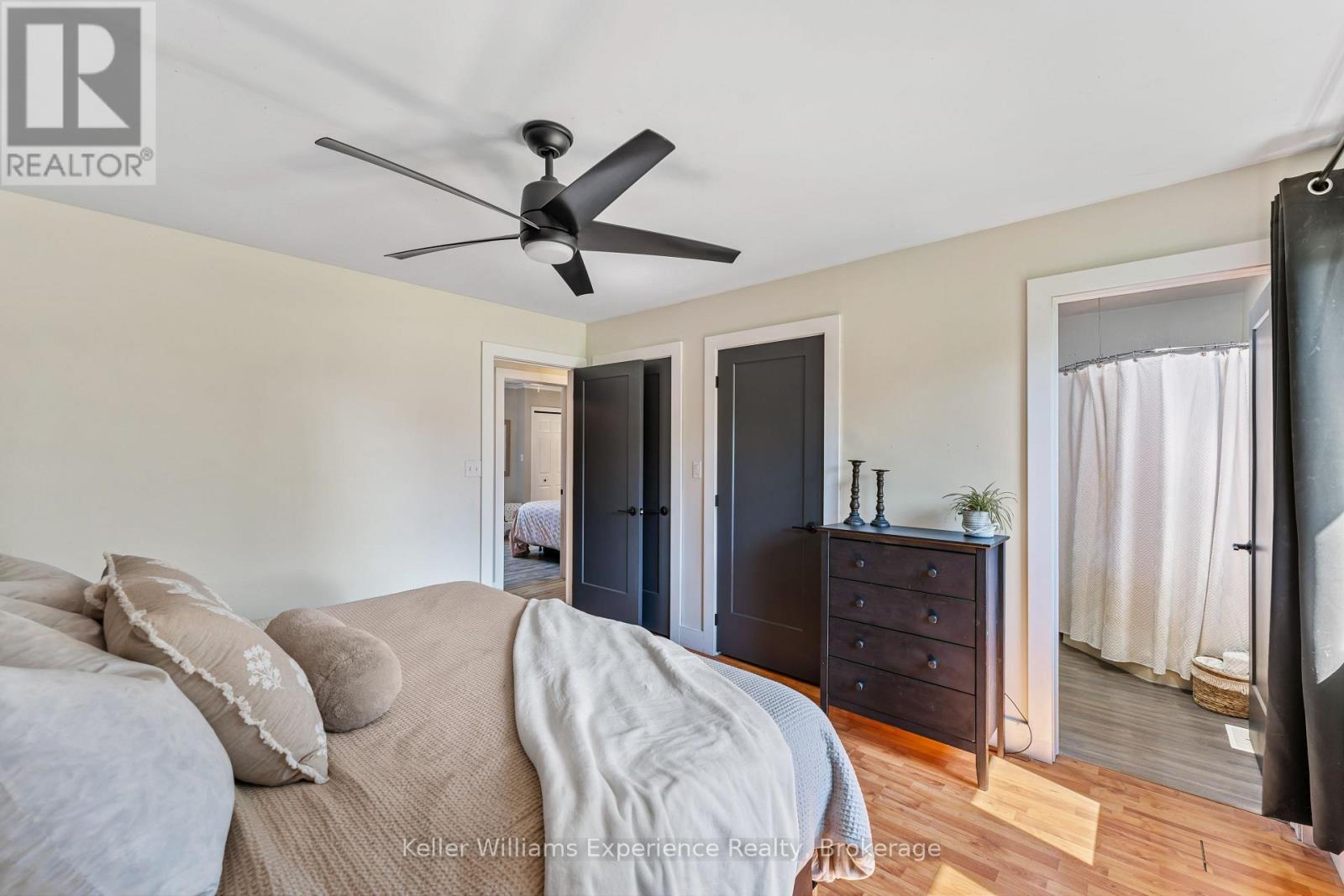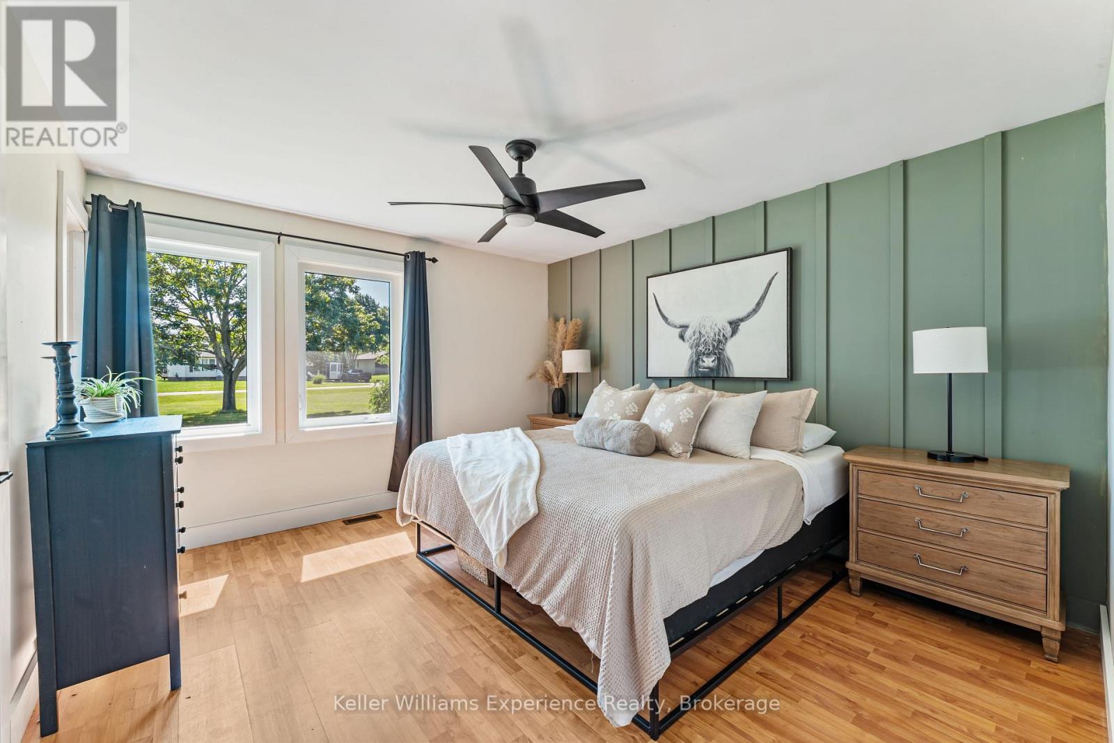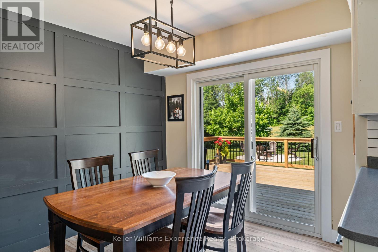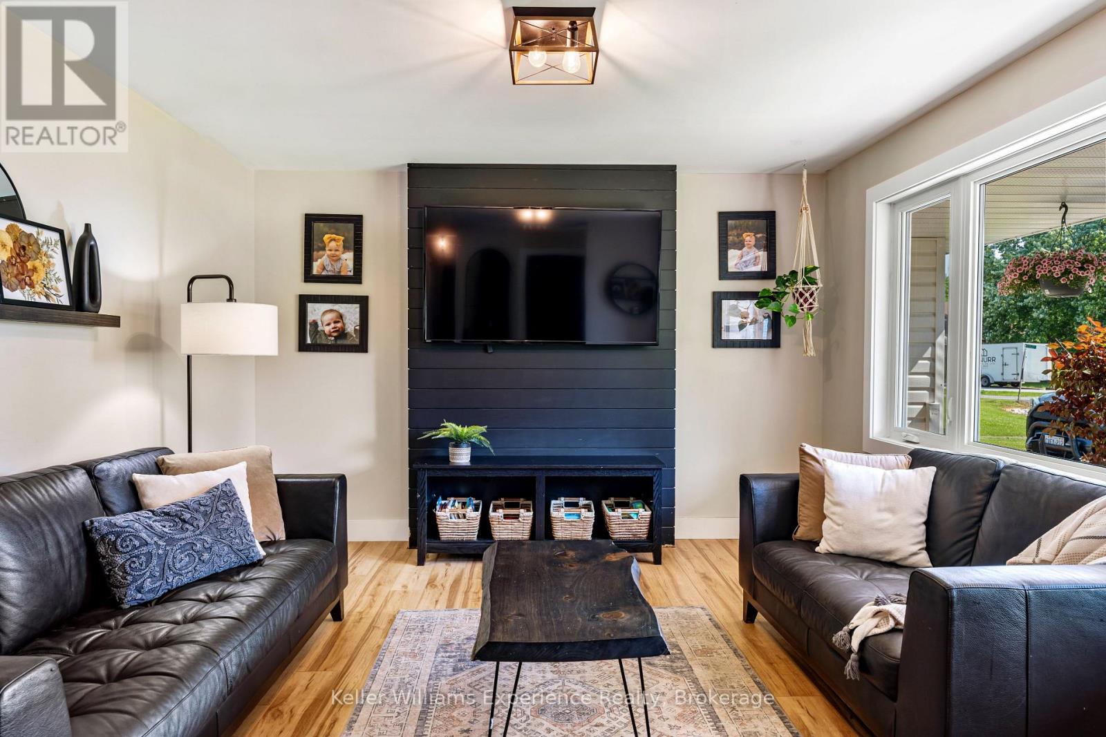 So good you wont be able to take your eyes off it. That's 110 Mary Avenue. This gorgeously updated 4-bedroom, 2-bathroom bungalow is tucked at the end of a quiet cul-de-sac in one of Georgian Bluffs' most loved neighbourhoods. Crisp white exterior, bold black accents, natural timber posts, and a welcoming covered porch. Inside, it's modern, fresh, and thoughtfully designed with true one-floor living and a finished basement for bonus space. The main floor features stunning luxury wide plank vinyl flooring (2024), black soundproof solid-core interior doors (2025), and fresh white wood trim throughout. The sunny living room is anchored by a striking black accent wall, and the dining room brings the drama with coffered black wall paneling - high style in all the right places. The kitchen is white and bright with a tile backsplash, matte black sink, brand new appliances (2025), and sliding glass doors leading to a huge 450 sq ft raised deck (2025) with no backyard neighbours. Three bedrooms on the main floor include a primary with his and her closets and a private 3-piece ensuite. Two more generous bedrooms share a 4-piece bath. You've got main floor laundry and a mudroom with inside access from the garage - everyday living made easy. Downstairs? A cozy rec room with a gas fireplace, a fourth bedroom, an insulated workshop, and updated flooring (2025) with dry-core subfloor to keep things warm and dry all year long. All the big stuff is done: Windows (2024), Front Door (2024), Garage Door (2022), Attic Insulation (2024), and Sump Pump (2023). Big private lot. Mature trees. Great neighbours. Fibre optic internet, and yes, SkipTheDishes delivers. It even comes with an invisible fence system for your pups! This is a turn-key home in a location you'll love - and it's ready for you to move right in. (id:64974)