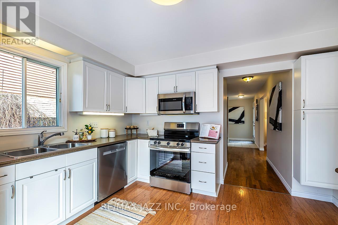Welcome to this move-in-ready home in the highly desirable Pringle Creek neighbourhood, ideal for buyers seeking space, updates, and a convenient location. This well-maintained 3-bedroom, 2-bathroom home offers a functional layout with bright principal rooms and hardwood flooring in the living and dining areas, creating a warm and inviting space for both everyday living and entertaining. The kitchen features a patio door walkout to the deck and fully fenced backyard, providing the perfect outdoor space for kids to play, pets to roam, and summer BBQs with family and friends. Additional highlights include a 1.5-car attached garage offering ample parking and storage space, and a separate side entrance for added convenience. Recent updates provide added peace of mind, including air conditioning (2015), vinyl siding (2018), upper bathroom (2021) and furnace (2022). Plus freshly painted main floor, kitchen and rec room in 2025 along with an updated stair railing, and a new front door, giving the home a bright and modern feel. Pringle Creek is a well-established, family-friendly neighbourhood known for its quiet streets, parks, and convenient amenities. The area offers excellent nearby schools, playgrounds, and walking trails, making it ideal for families and pet owners. Residents enjoy easy access to shopping, recreation, and major commuter routes, including Highway 401 and the Whitby GO Station, and minutes from Downtown Whitby. (id:64974)