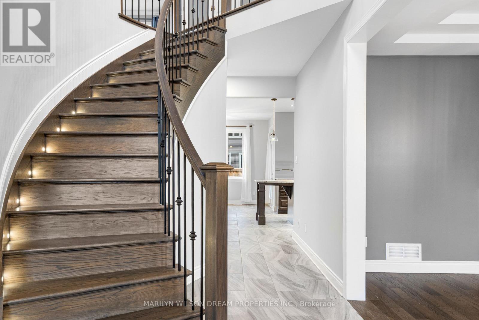 Welcome to 110 Talos Circle, an exceptional executive residence by award-winning Talos Homes offering 3,300sq.ft. of refined living space on a quiet, family-oriented street in Richmond. Designed with both elegance and practicality in mind, the main level unfolds around a dramatic illuminated staircase, rich hardwood flooring, and expansive windows that fill the home with natural light. The chef-inspired kitchen anchors the space with granite countertops, custom cabinetry, stainless steel appliances, a large centre island, and a walk-through butler's pantry connecting seamlessly to the dining room with custom millwork. The adjacent living room is warm and sophisticated, centred around a striking stone gas fireplace. Upstairs, four spacious bedrooms provide comfort for family living, including a serene primary retreat with walk-in closet and spa-inspired ensuite featuring dual vanities, glass shower, and deep soaker tub. The fully finished basement adds flexibility with a family room, full bathroom, and fifth bedroom or office. Outside, the fully fenced yard with irrigation and covered porch offers space for a future pool, while the heated triple-car garage with EV charging is a rare and coveted feature. A beautifully designed home where thoughtful architecture meets everyday family living. (id:64974)