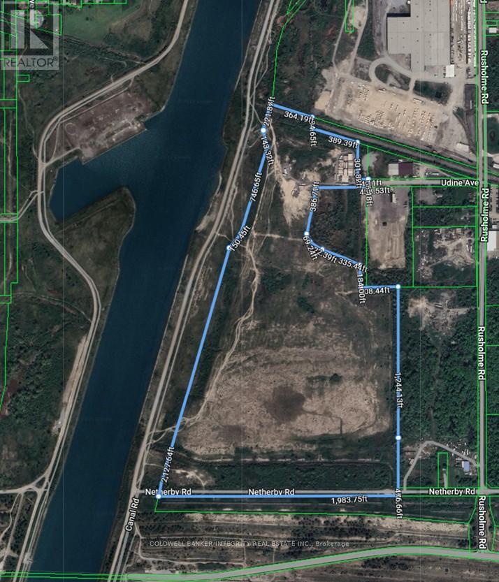 One of the last sizeable heavy industrial vacant land parcels available in the Niagara Region for sale. This 92+ acre site along the Welland Canal in the City of Welland presents an outstanding investment opportunity, particularly for manufacturers and businesses seeking to benefit from its strategic location for transportation and logistics. Located just minutes from Highway 406, this site boasts direct access to both the canal and an adjacent rail line. The property is also located in the Niagara Gateway Economic Zone and Centre Community Improvement Plan Area. New development projects may be eligible for tax reductions or grants. The General Industrial (G1) zoning permits a wide range of significant Light and Heavy Industrial uses, including Manufacturing/Warehousing & Logistics, Waste Transfer/Processing/Recycling facility, Generating plant, Technology industries and Outside storage. The site has the availability of two road access points. Udine Ave. on the northside and Netherby Rd. on the southside. The south side of the property is across from the Asahi Kasei lithium-ion battery separator plant, a significant joint venture investment supported by the Federal and Provincial Governments, to bring economic growth to Niagara Region. Municipal services are available along Rusholme Road, 280 metres from the lot line. Future possibility for the site to connect with the proposed Hydro One Welland Thorold 230-kilovolt double-circuit transmission line, providing 400 megawatts of new capacity to the area. Approximately 1 +/- acres is regulated by Niagara Peninsula Conservation Authority as wetland. A Phase I Environmental Assessment was completed in June 2022. (id:64974)