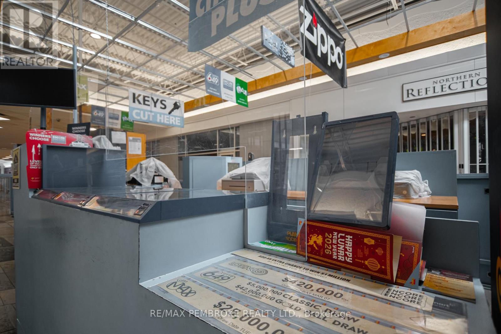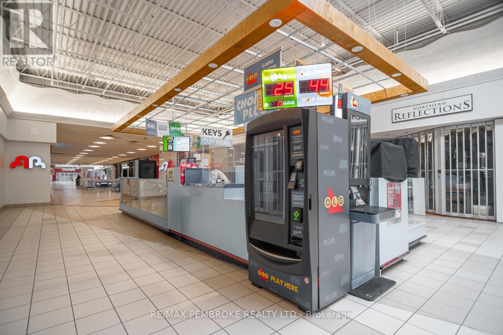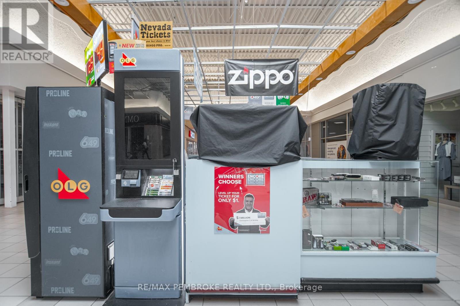Are you ready to take the reins of your own successful business? Look no further! This well-established kiosk in the east end Pembroke Mall offers an exceptional opportunity for aspiring entrepreneurs. Situated in a prime high-traffic location right next to the food court and a popular drugstore, this kiosk has built a loyal customer base and boasts a thriving revenue stream. The business has become a local favourite for lottery enthusiasts revolving around high volume lottery and Nevada ticket sales. With two cigar humidors, stocked with a wide variety of premium cigars, it is the go to place in the area for cigar aficionados. Smoking accessories, key cutting, and a variety of gadgets add to the income stream. The current owner is committed to ensuring a smooth transition and is willing to provide training for the new owner. This means you can hit the ground running without the steep learning curve. A quick closing is possible, but is subject to the buyer being approved by the Alcohol and Gaming Commission. Don't miss your chance to own this lucrative retail kiosk in a prime location. (id:64974)