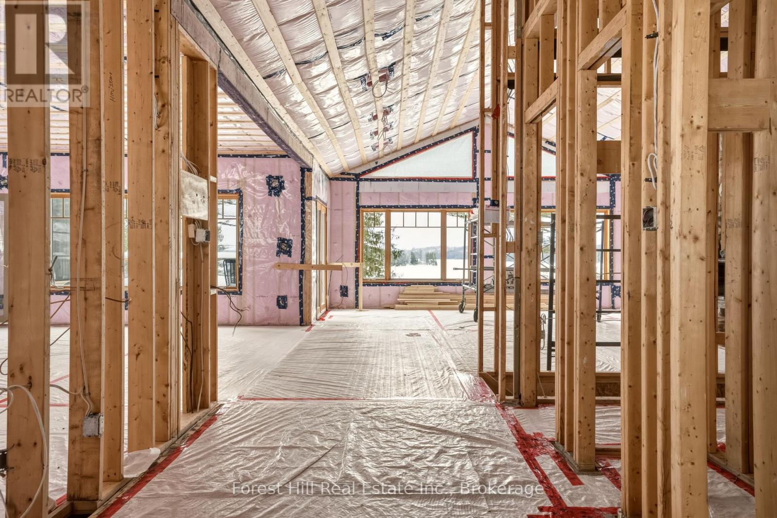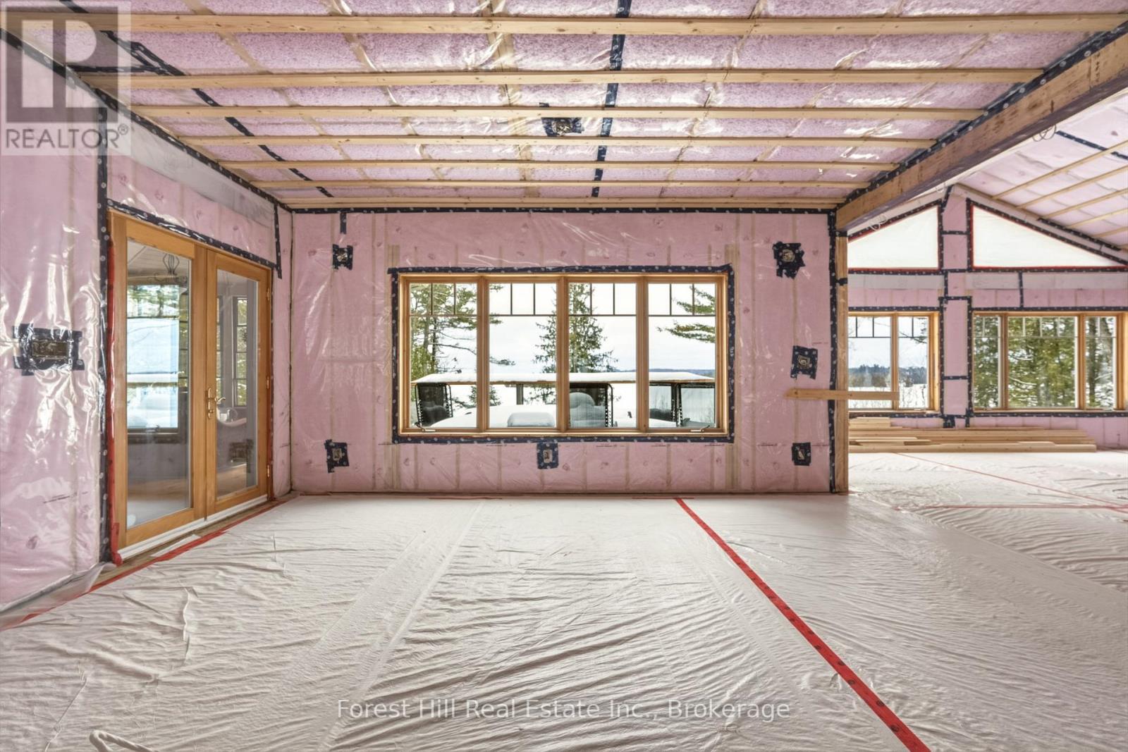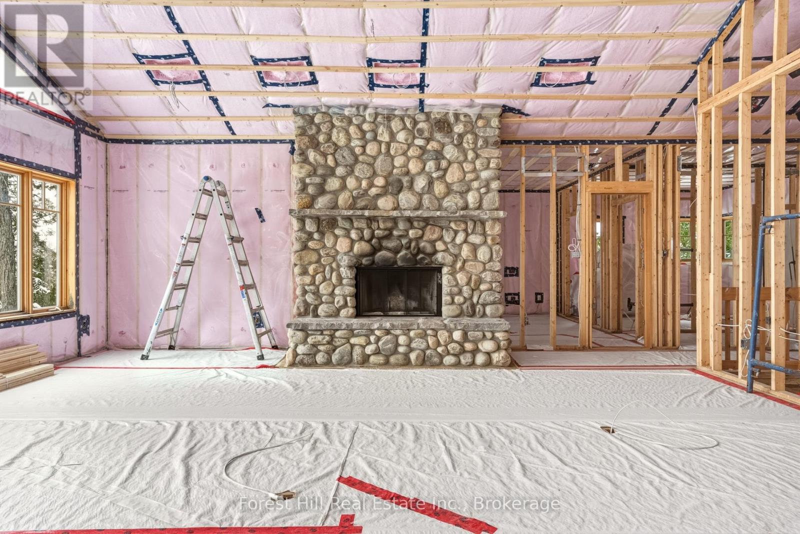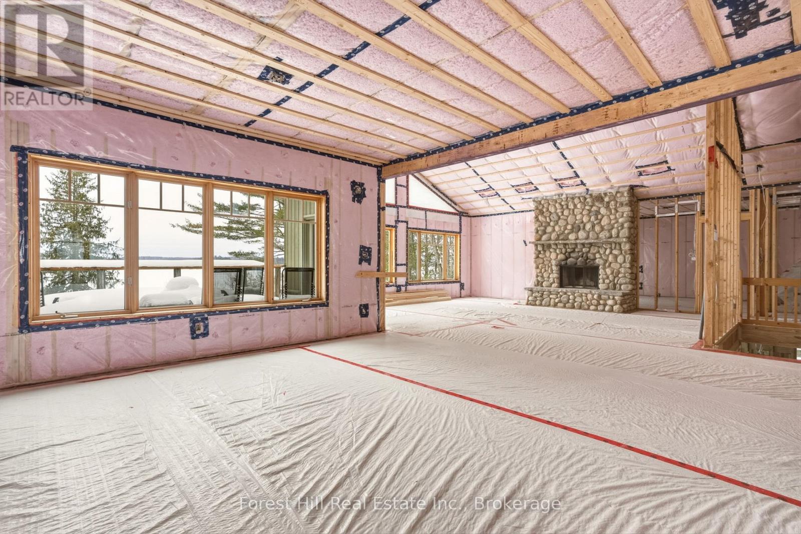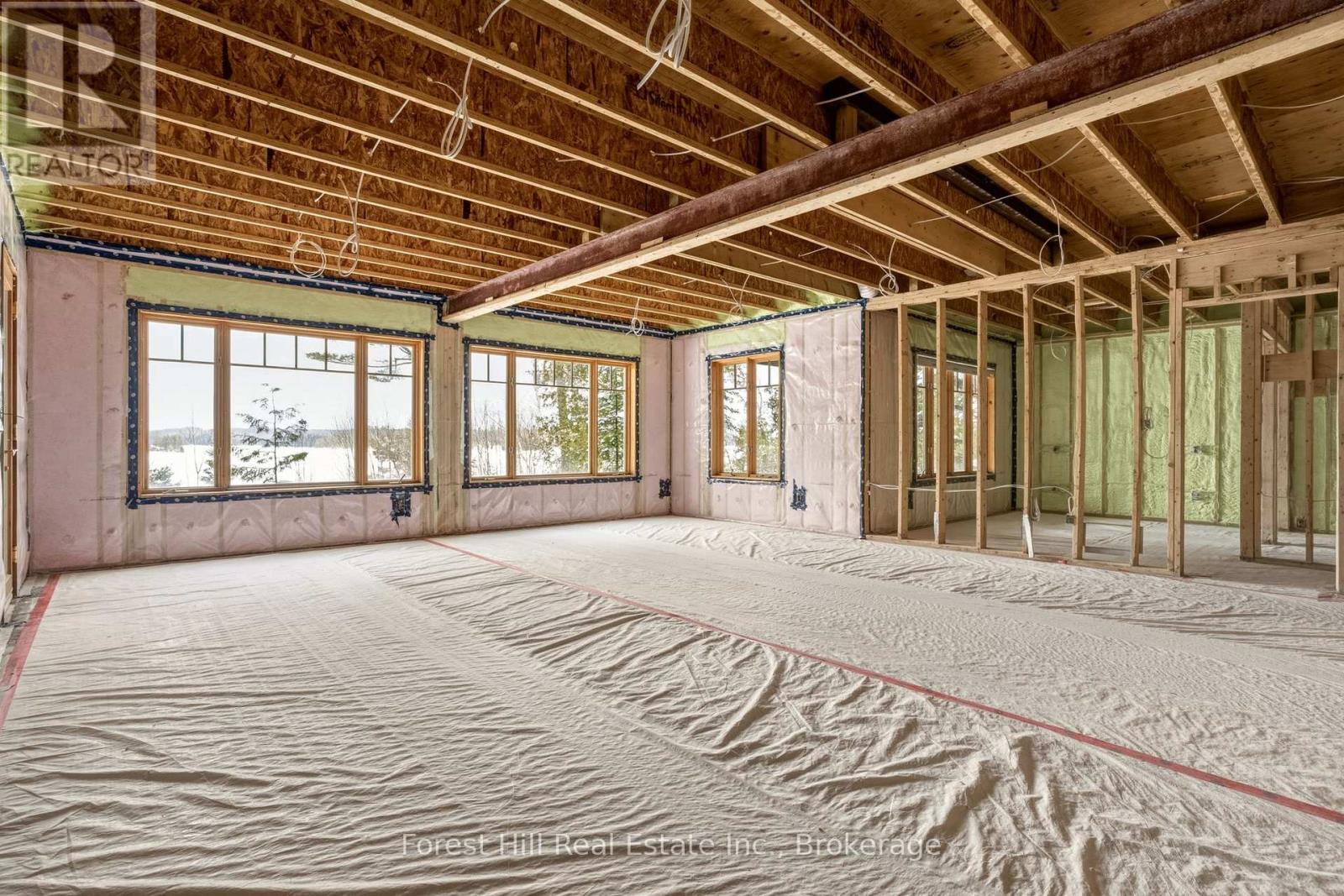 Rare opportunity in Glenmount on Lake of Bays. Set on over 2 acres with approximately 100 feet of west-facing waterfront and sweeping views toward Bigwin Island, this property offers exceptional potential in one of the lake's most established and sought-after areas.The cottage has been stripped to the studs, with framing and new insulation already complete, providing a true blank slate to bring your vision to life. With approximately 4,000 sq ft, the existing layout includes 5 bedrooms + office and 3 bathrooms, an open concept main floor anchored by a stunning stone fireplace, a main floor primary suite with ensuite, and a 3-season Muskoka room overlooking the lake. The walkout lower level adds further flexibility for additional living space.The dock is perfectly positioned to take in long lake views and sunsets, while the expansive lot offers privacy, presence, and space to create a true family compound. A separate bunkie provides additional guest accommodation.Located in the desirable Glenmount area, known for its sense of community and proximity to the Lake of Bays Sailing Club and Tennis Club, and just minutes to Dorset with easy access to Huntsville.A rare chance to secure a premier Lake of Bays location and create something truly your own. (id:64974)