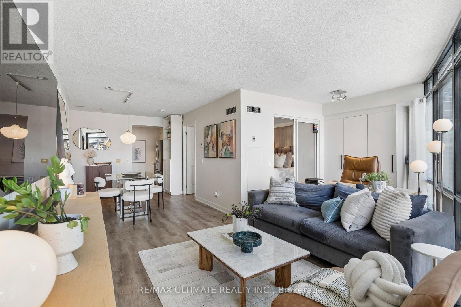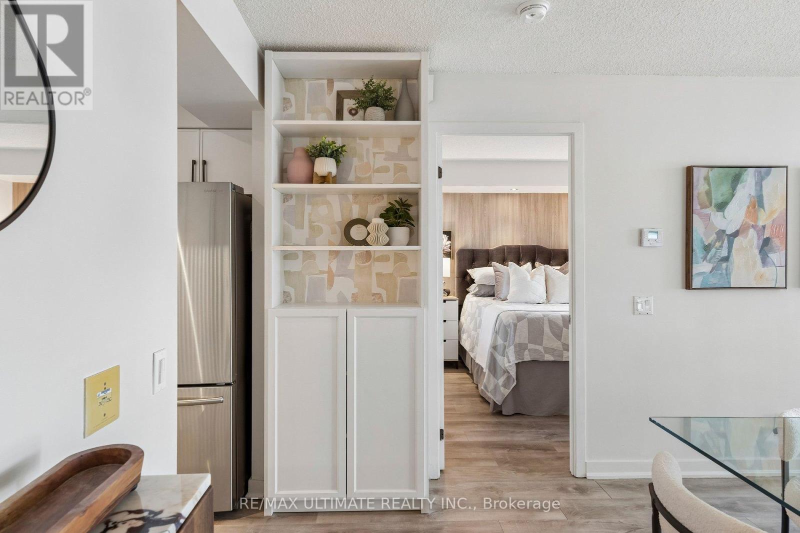 Looking to live in the heart of the city? This is IT! Bright & spacious 1+1 bedroom suite showcases a thoughtfully designed layout with a smart use of space, making everyday living both comfortable and functional. Thousands have been spent on custom upgrades for the bathroom (2020/2025), the kitchen (2022), and the flooring (2023). A polished and refined interior with tons of storage throughout and a cleverly hidden washer and dryer that keeps the space looking clean and streamlined. Natural light pours into the unit through expansive floor-to-ceiling windows, giving the entire space a bright, open feel. The main living area offers a seamless flow from the living space to the kitchen and dining area, making it perfect for entertaining or relaxing at home. The den is a versatile space that can easily function as a home office or reading nook. The primary bedroom is designed for comfort and privacy while still maintaining the airy, light-filled atmosphere. The building offers an impressive list of amenities updated earlier this year that are designed to enhance your lifestyle, including an indoor pool, fitness centre, spa, theatre room, party room, sports court for basketball and volleyball, and visitor parking. Located just steps to the Rogers Centre, CN Tower, waterfront, transit, restaurants, cafes, nightlife, and shopping, this location puts the very best of downtown Toronto right at your doorstep. This is a fantastic opportunity to own a highly upgraded condo in the heart of the Entertainment District, perfect for professionals, investors, or anyone looking to experience the convenience and energy of downtown living! (id:64974)