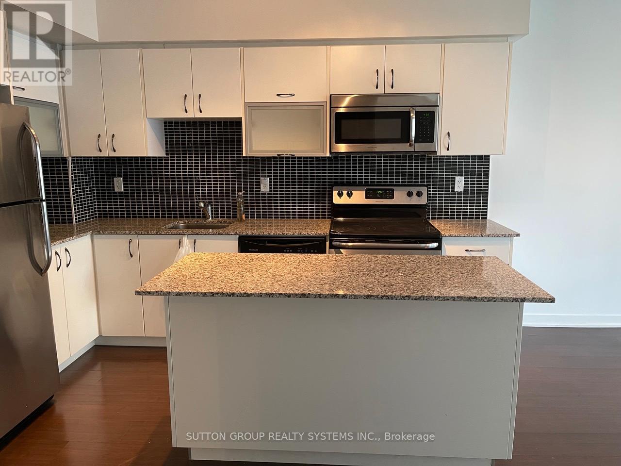 Bright and spacious 1 bedroom in the heart of Liberty Village with optimal layout, premium finishes and plenty of natural light. Kitchen features distinctive breakfast bar/island, granite counters, SS appliances and track lighting. Great location just minutes from restaurants, bars, shops, parks and transits. Well-maintained building offers 24-hrs concierge, gym, indoor pool, rooftop terrace and visitor parking. (id:64974)