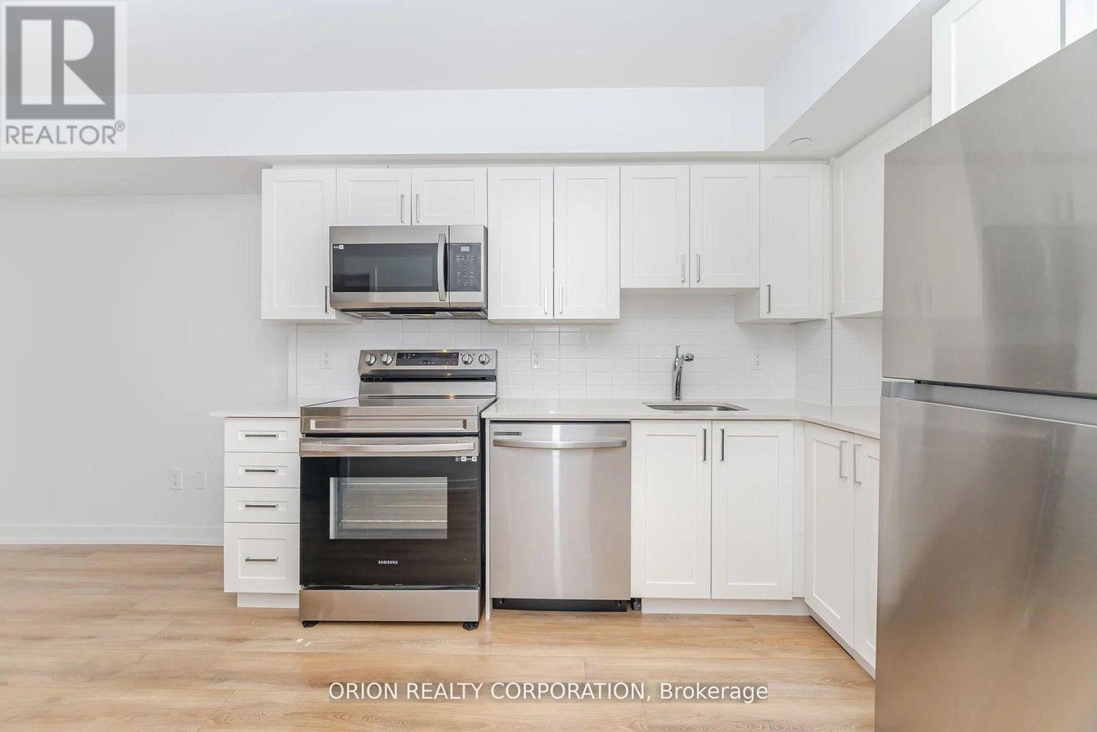 Fantastic Location! Spacious 1 Bedroom + Large Den + 2 Full Bathrooms (695 SqFt).This bright and airy unit features a versatile den that can easily be used as a second bedroom or home office, along with 2 full bathrooms for added convenience. Enjoy stylish upgrades throughout, including a sleek white kitchen and modern light oak flooring that adds warmth and elegance. Includes 1 parking space. Perfectly situated just minutes from the beautiful Frenchman's Bay waterfront, scenic trails, and vibrant Downtown Pickering. Walking distance to the GO Station, and close to Durham Live Casino, Pickering Town Centre, grocery stores, restaurants, and Highway 401.Located in a well-maintained, contemporary building with excellent amenities, a must-see opportunity in a highly desirable area (id:64974)