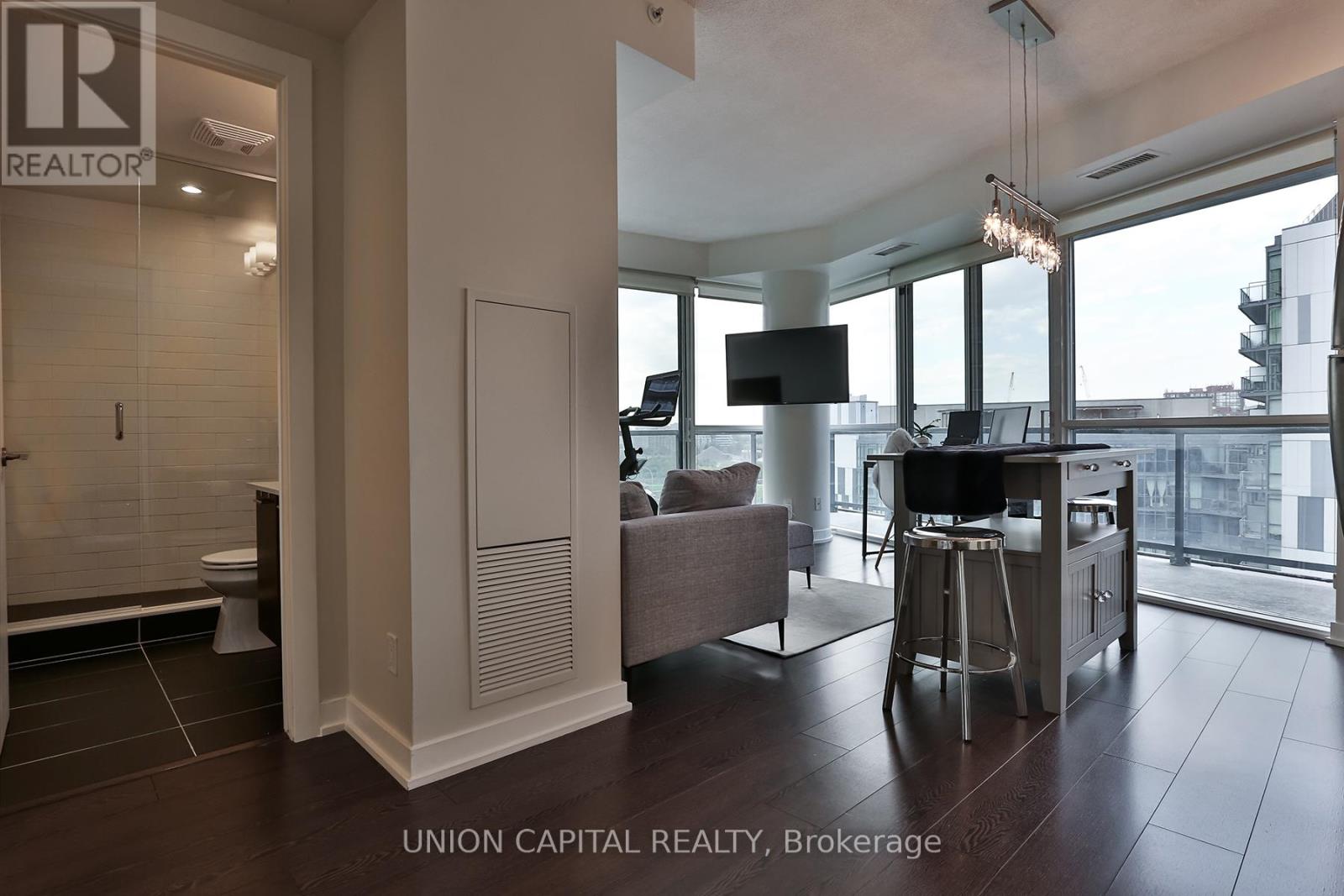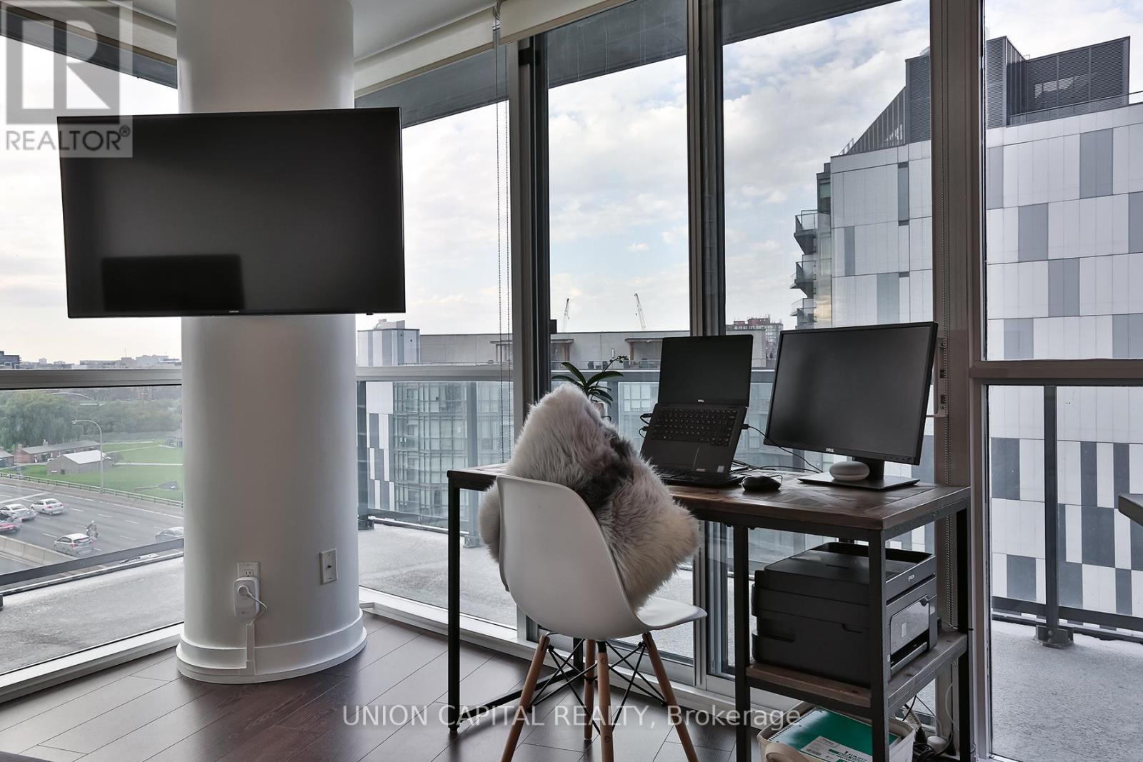 Welcome to this sun-filled corner suite offering 575 sq. ft. of open-concept living. Floor-to-ceiling windows and soaring 9-ft ceilings flood the space with natural light, creating a bright and airy feel throughout. Step out onto the expansive wrap-around balcony-perfect for morning coffee or evening relaxation. This suite includes one parking space and is ideally located for those who love downtown living with a touch of nature. Enjoy immediate access to Coronation Park, the nearby dog park, and scenic waterfront trails. Just steps to Billy Bishop Airport, STACKT Market, and the Loblaws flagship store, everything you need is truly at your doorstep. A perfect blend of urban convenience and outdoor lifestyle-this is downtown living at its be stand a wonderful place to call home. (id:64974)