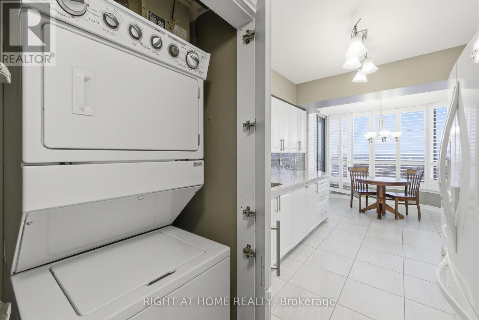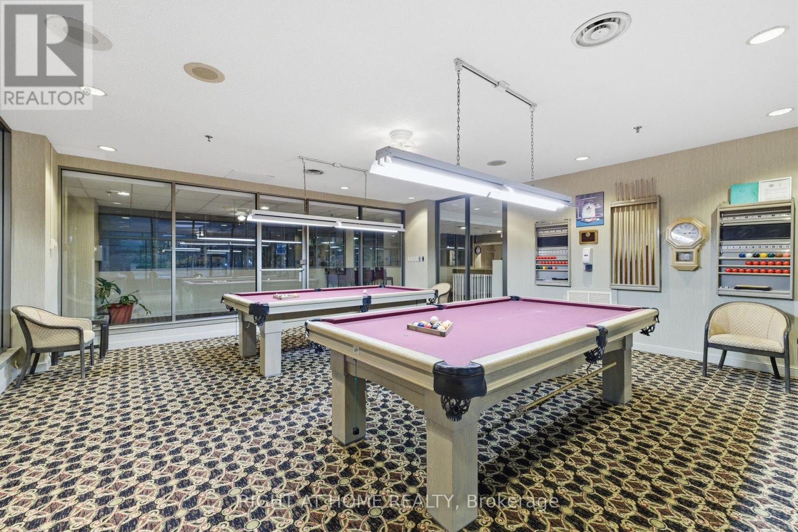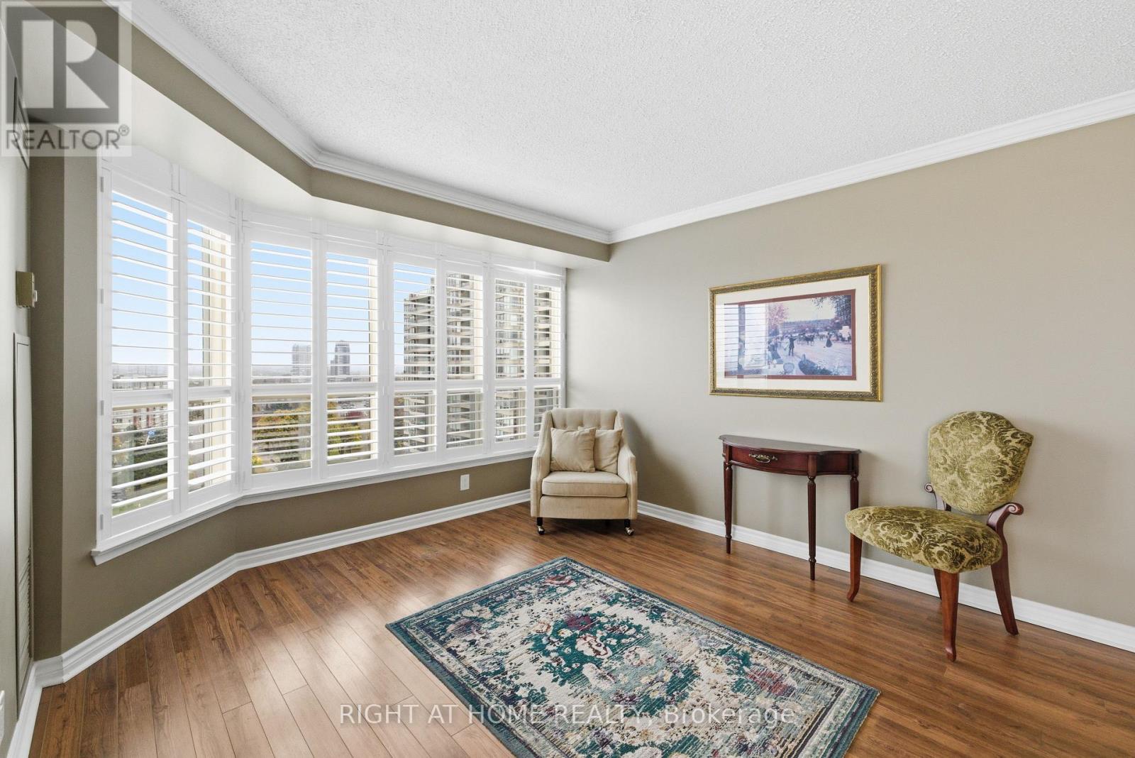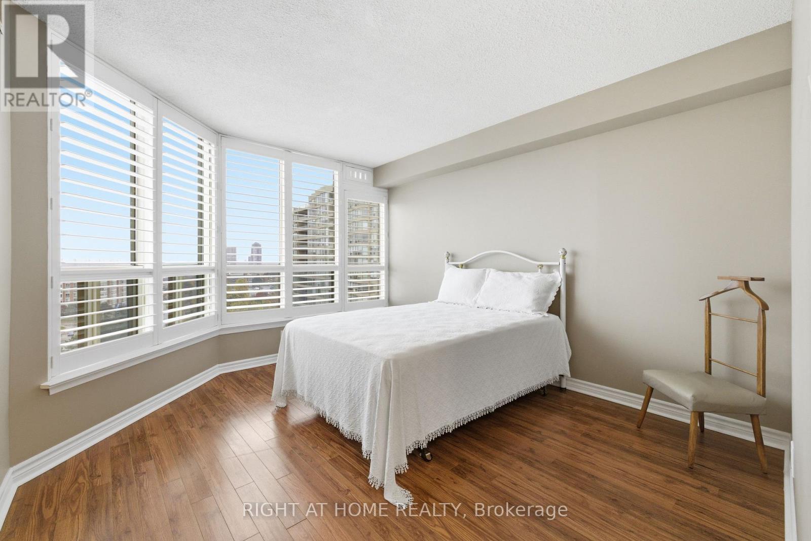 Step into the sought-after Cartier Model, an immaculate corner residence in Tridel's Discovery Place, showcasing nearly 1,500 sq. ft. of bright and well-designed living space. Sunlight pours in through the southeast-facing windows, highlighting the airy layout and offering seamless access to a private balcony-perfect for morning coffee or relaxing evenings. The suite features a spacious formal dining area within the living room, beautifully enhanced by crown moulding throughout, adding an elegant, refined touch to the main living space. The modern kitchen is ideal for everyday living, featuring an eat-in area and generous cabinetry for effortless organization. The entire suite is enhanced by California shutters, lending a bright, clean, uniform, and welcoming look. Both bathrooms are impressively sized and styled with contemporary finishes. For added convenience, the home includes oversized in-suite storage, an additional locker, and underground parking.Residents benefit from the exceptional lifestyle offered by this secure, resort-inspired community, complete with indoor and outdoor pools, hot tub, fully equipped fitness centre, tennis and squash courts, party rooms, guest suites, 24-hour security, and plenty of visitor parking. With all utilities included in the maintenance fees-water, heat, hydro, cable TV, and high-speed internet-daily living is simple and stress-free.Situated steps from Pickering Town Centre, the library, civic centre, parks, recreation facilities, and the GO Station, and minutes from Highway 401, this suite delivers the perfect blend of location, comfort, and convenience (id:64974)