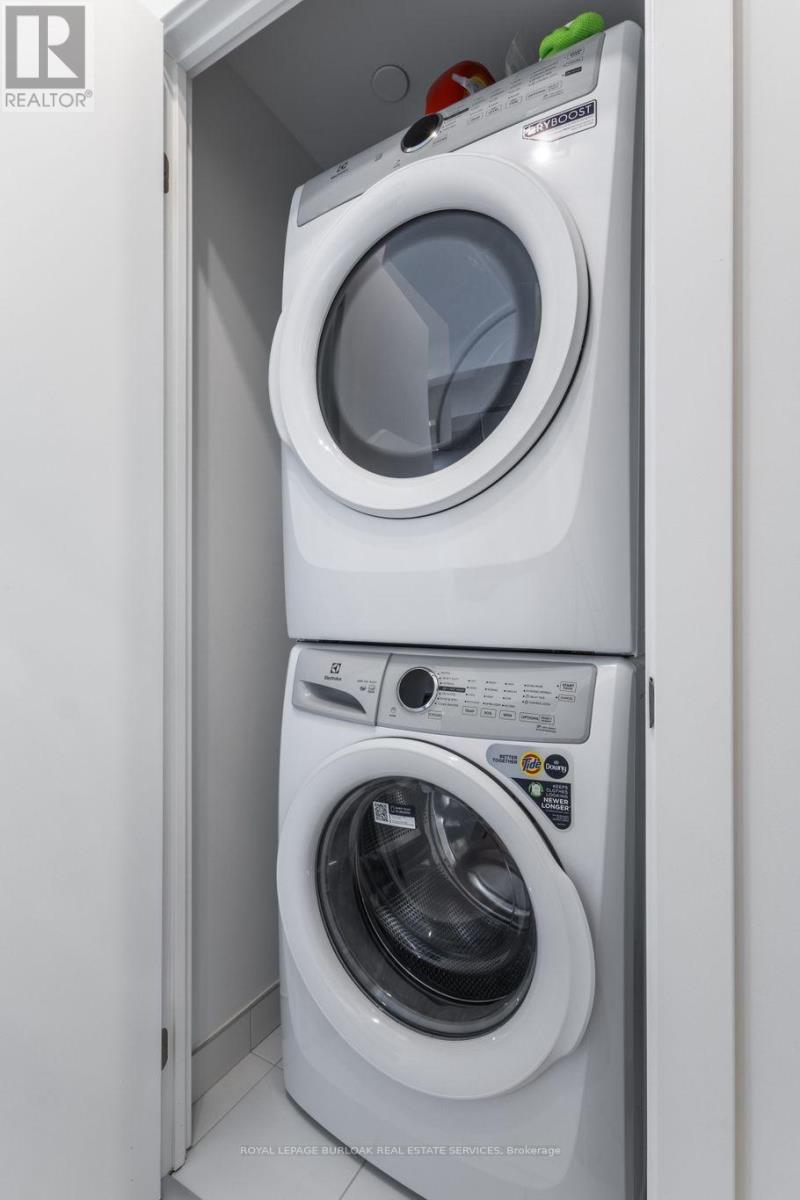 Brand new, never lived-in downtown condo on the 11th floor. Fully furnished and ready to move in, just bring your suitcases. Features east and south/lake views. Primary bedroom is fitted with king size bed, 3 piece bath with glass door shower and extra storage cabinetry. Den is furnished with a convertible couch/double bed. Main bath with extra storage cabinetry. Island in kitchen seats 4 people, all new stainless appliances; fridge, stove, microwave and built-in dishwasher. In suite washer and dryer. Features; concierge, fully fitted gym with yoga workout space, stunning party room, package/delivery facility, smart technology throughout this absolutely stunning new prime walk to everything downtown/lake building! One underground parking space. (id:64974)