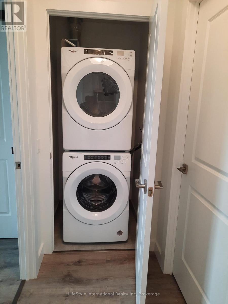 This one-bedroom, one-bathroom condominium offers an exceptional opportunity to experience modern urban living in the heart of downtown Galt, ideally located within the vibrant Gas Light District and just steps from an array of dining, shopping, and entertainment options. The suite features a thoughtfully designed open-concept layout with 9-foot ceilings, elegant quartz countertops, and high-quality finishes throughout, complemented by a contemporary kitchen with stainless steel appliances and the convenience of in-suite laundry. A private balcony extends the living space, providing a peaceful outdoor retreat. Residents also enjoy access to premium building amenities, including a secure monitored entrance, a welcoming lobby, a fully equipped yoga and fitness studio, and a comfortable resident lounge-making this an outstanding opportunity for sophisticated, low-maintenance living in one of Galt's most desirable communities. (id:64974)