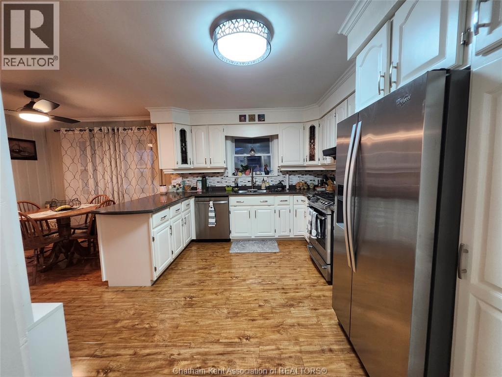 Located in the town of Dutton, just off the 401, this 3+1 Bed, 2 Bath house has the perfect balance of convenience but has the country feel. Walking distance to the Public school, park, splash pad, pool, specialty shops, McDonalds, Dollarama, Foodland and much more! Nestled on .6 of an acre, this beautiful home is about 2300 sq feet of space and has plenty of storage. Outside you will find 2 sheds, lots of parking, cozy covered front porch and large back deck with a great view of the farmers field. On the main floor, you will find a large living area, 3 good sized bedrooms, updated bathroom, large dining room, mudroom, new eat in kitchen with Corian counters, new appliances, new windows and plenty of storage. You will also find access to the 2 car garage. Downstairs features a large Rec-room, 3Pc bath, large bedroom, laundry and storage for days. (id:64974)