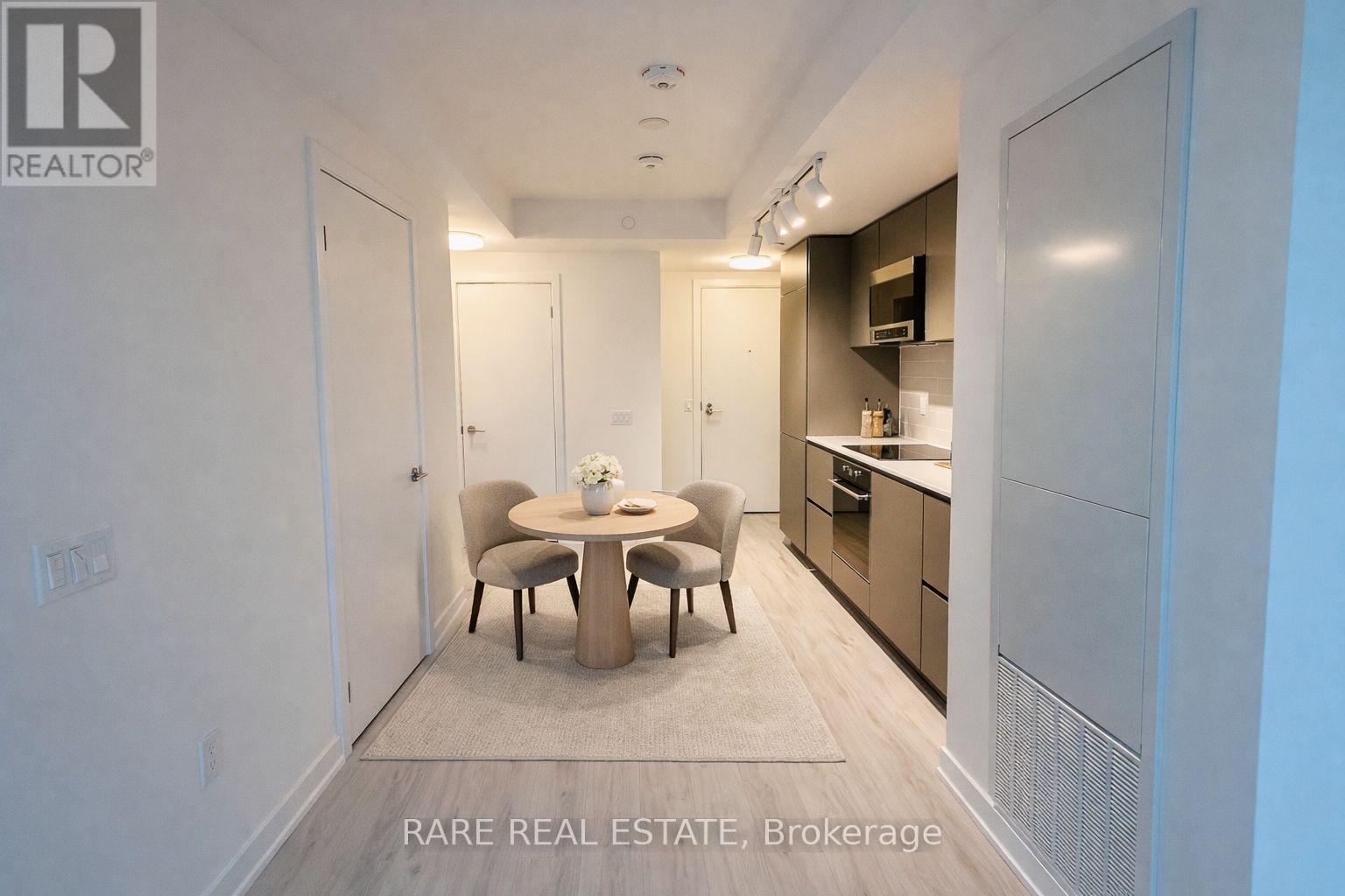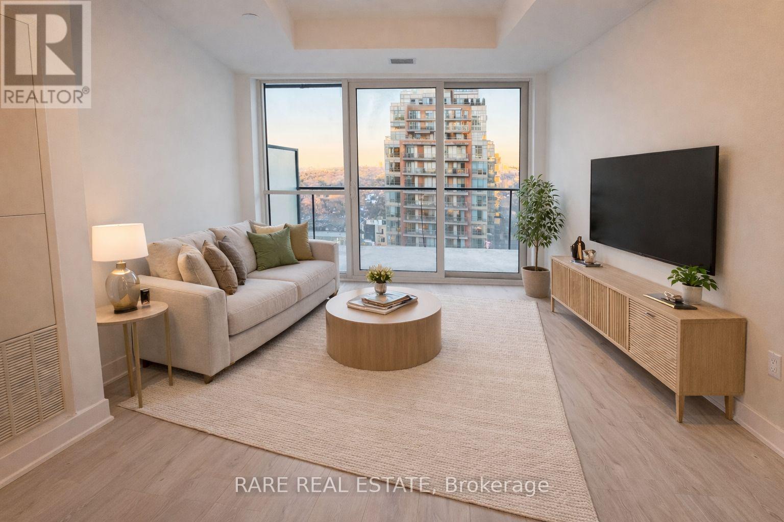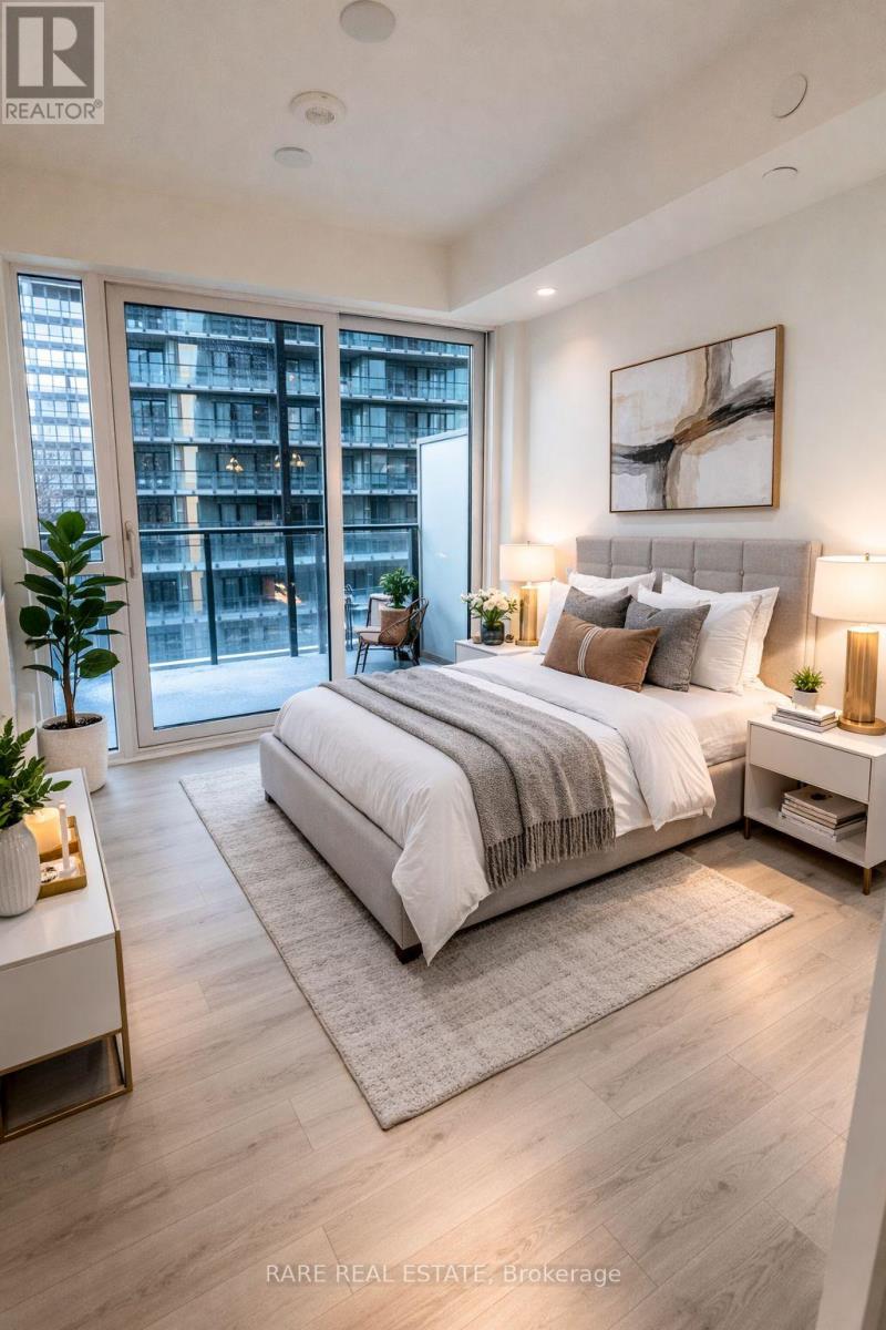 Welcome to Untitled Condos, a distinctive residence designed in collaboration with Pharrell Williams. Inspired by Japanese Zen principles, this thoughtfully designed suite blends timeless architecture with calming natural elements. Featuring a bright and functional split-bedroom layout, the unit offers floor-to-ceiling windows and two private balconies that enhance natural light and outdoor living.The open-concept living and dining area flows seamlessly into a contemporary kitchen with integrated appliances and modern finishes. The spacious primary bedroom includes a private ensuite and its own balcony. Residents enjoy access to exceptional amenities including an indoor/outdoor pool, jacuzzi, sauna, fitness centre, yoga studio, and basketball court.Ideally located steps to the Toronto Subway Line 1, the Eglinton Crosstown LRT, top-rated schools, restaurants, cafés, shops, and parks. Parking is $300/month extra. (id:64974)