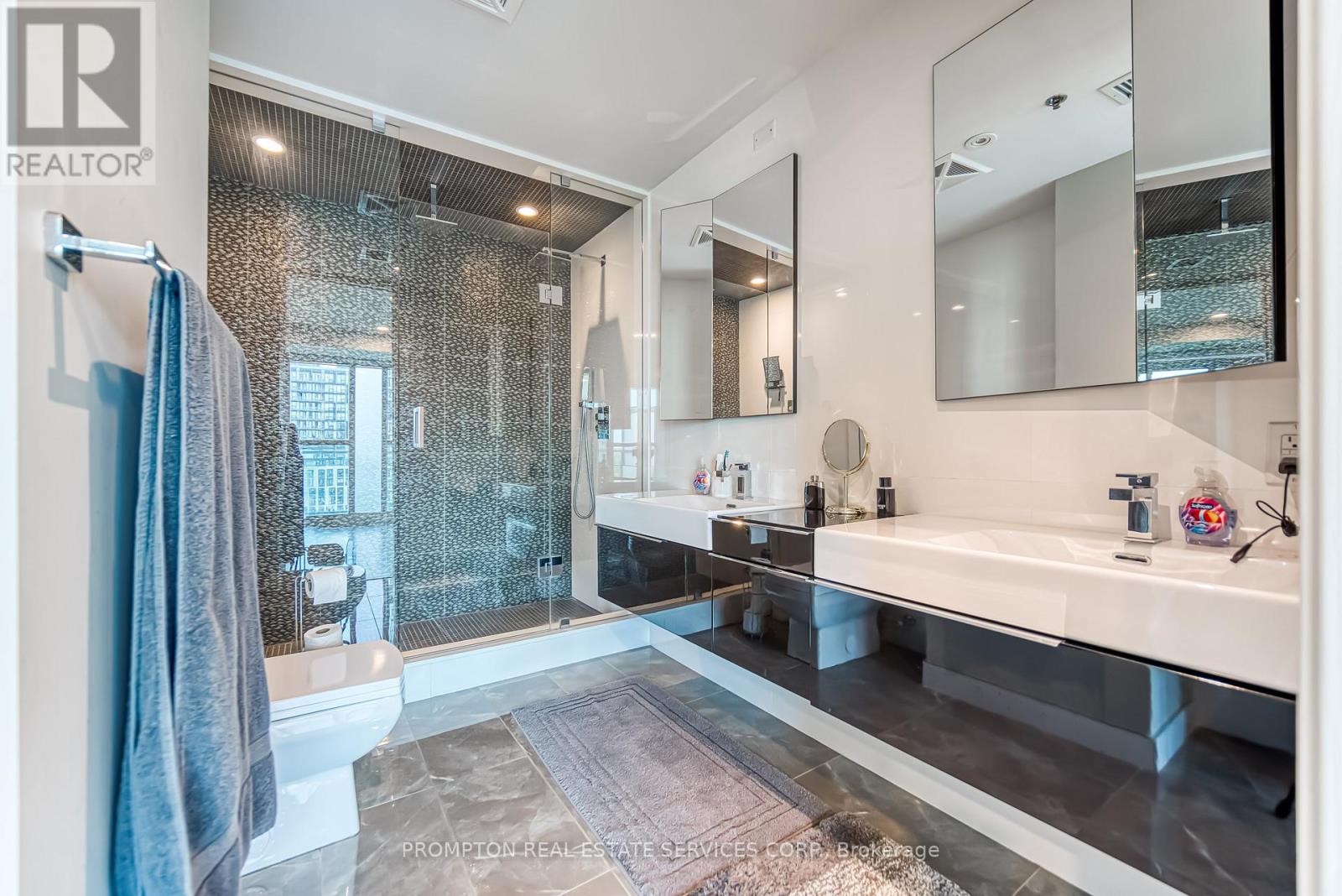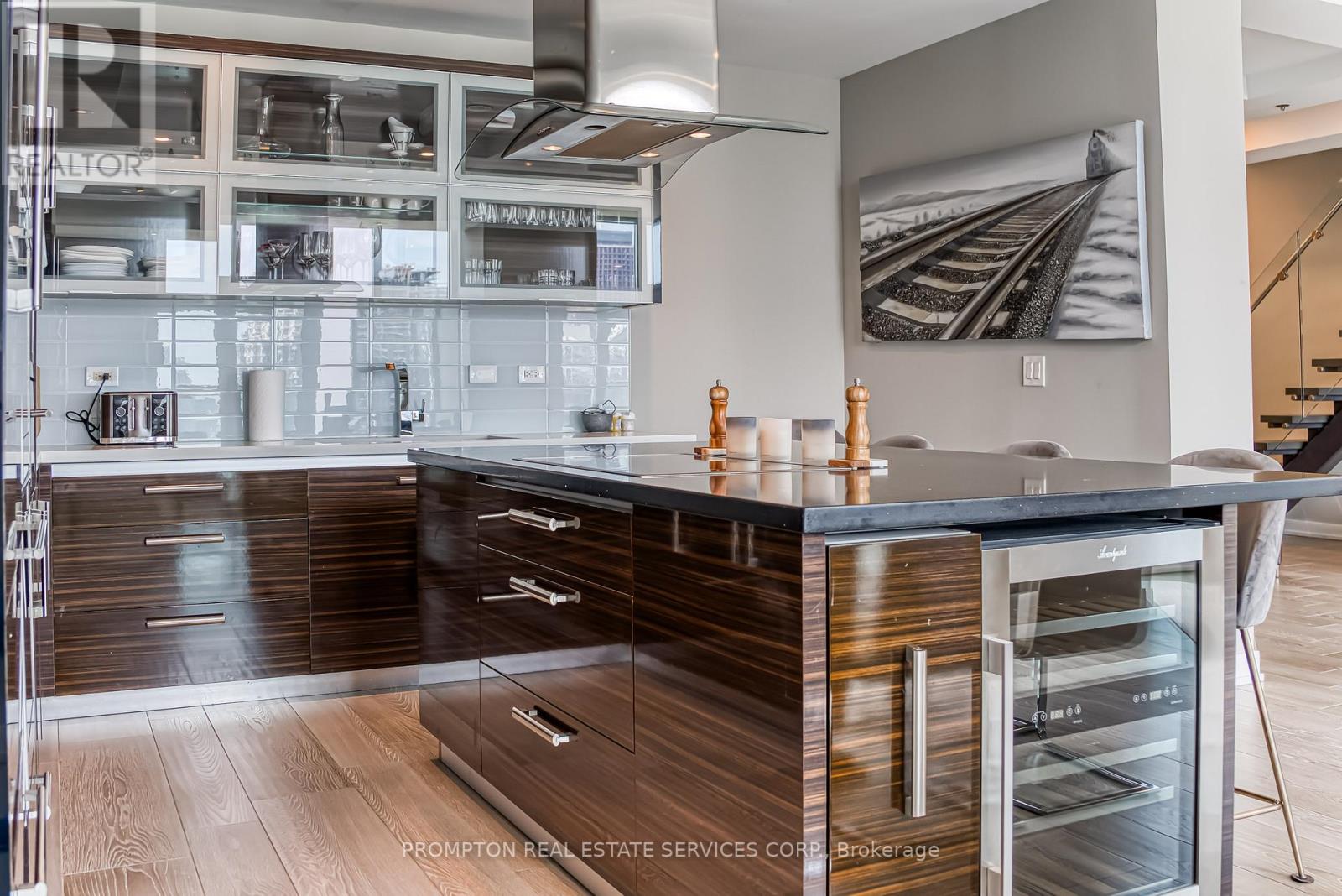 Absolutely Stunning Custom 2-Storey Penthouse in the Heart of Downtown Toronto! This sun-filled 3.bedroom, 4-bathroom residence offers luxury living just steps from the Eaton Centre, top restaurants, theatres, shopping, and the subway. Soaring 10-ft ceilings, floor-to ceiling windows, and 8-ft solid doors throughout. Modern floating staircase with glass railing, sleek custom lighting, and two spa-inspired ensuites. The Italian-designed kitchen features granite countertops, a large island, and solid cabinetry. (id:64974)