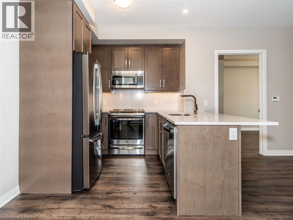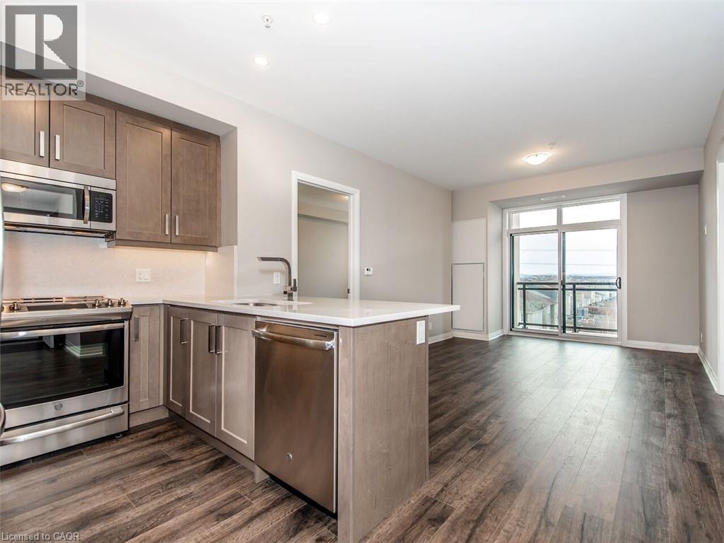Discover this stunning, upgraded “Harrison” model in the highly sought-after Hawthorne South Village Residences by Mattamy. This bright and open 2-bedroom, 2-bath condo offers modern style, quality finishes, and serene Northwest views of the Escarpment and pond. Featuring 9-ft ceilings, pot lights, laminate flooring, and large windows that flood the space with natural light. The contemporary kitchen shines with stainless steel appliances, quartz countertops and backsplash, under-cabinet lighting, and a convenient breakfast bar. The spacious primary bedroom includes a walk-in closet and a beautifully upgraded 3-pc ensuite with glass walk-in shower. A generous second bedroom with double closet offers excellent versatility. Enjoy your morning coffee or evening unwind on the private balcony, accessed through elegant French doors. Additional perks include in-suite laundry, 1 underground parking space (P1-#20), 1 locker (P1-#291), and high-speed internet included. Conveniently located in close proximity to top-rated schools, shopping, Milton District Hospital and historic Downtown Milton ~ don't miss your chance to get into home ownership or expand your real estate portfolio! (id:64974)