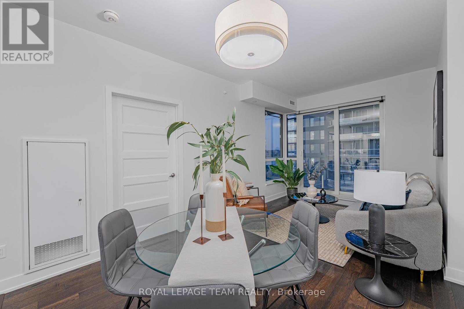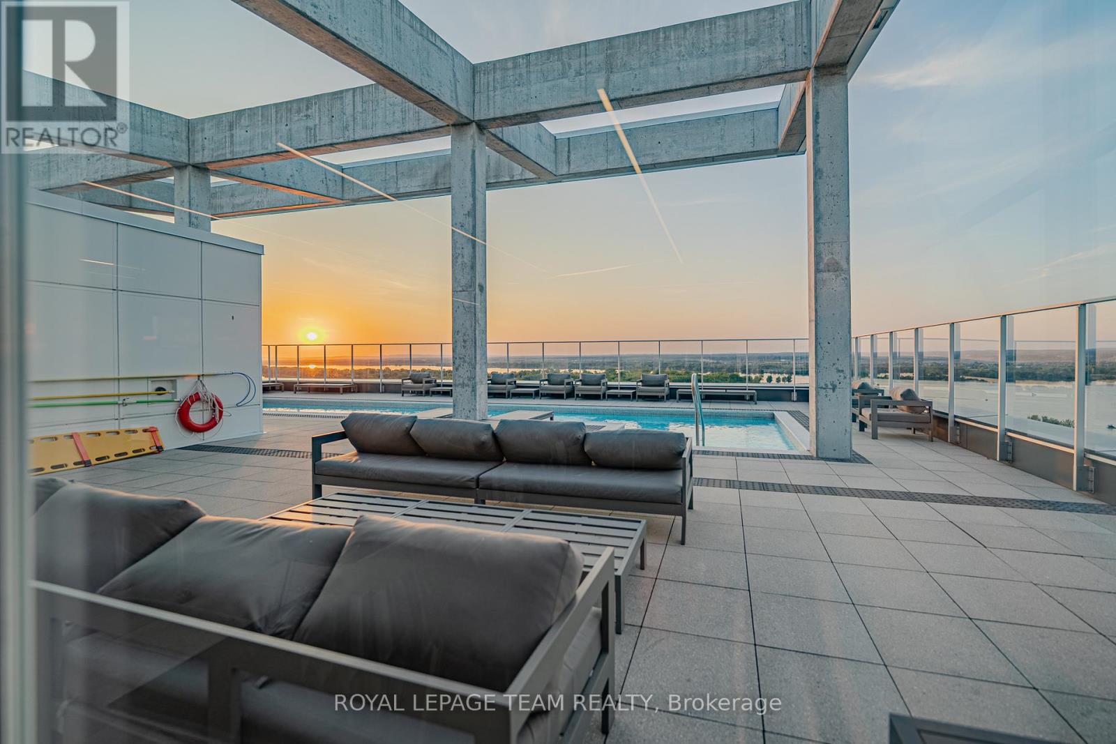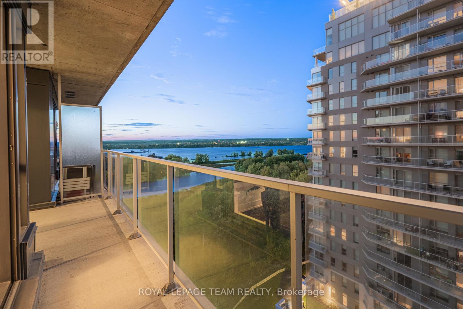 Experience elevated living at Petrie's Landing, steps from scenic Petrie Island Beach and the Ottawa River. Perched on the 11th floor, this 693 sq. ft. condo combines modern comfort with resort-style amenities. Featuring 1 bedroom plus an oversized den that easily serves as a second bedroom, this home is perfect for professionals, couples, or anyone seeking a stylish and flexible space. The open-concept layout is bright and inviting, with hardwood floors, oversized windows, and a sleek kitchen featuring quartz countertops, stainless steel appliances, and smart cabinetry. Both the living room and primary bedroom open to large private balconies, ideal for morning coffee, evening drinks, or simply soaking in the panoramic East-facing views of the Ottawa River. The spa-inspired 4-piece bathroom includes a deep soaker tub and a separate walk-in shower, while in-suite laundry, central air conditioning, and efficient gas heating add everyday convenience. Free access to a long list of amenities: a fully equipped gym, rooftop outdoor pool with BBQ area, elegant party and meeting rooms, plus one underground parking space and a storage locker. Located in a quiet, adult-oriented and smoke-free building, this prestigious address offers easy access to parks, golf courses, trails, and the marina, where nature meets modern urban living. Immediate occupancy available. Locker P2 left Storage Room B-126 and Garage Parking P1-Left side A-65. (id:64974)