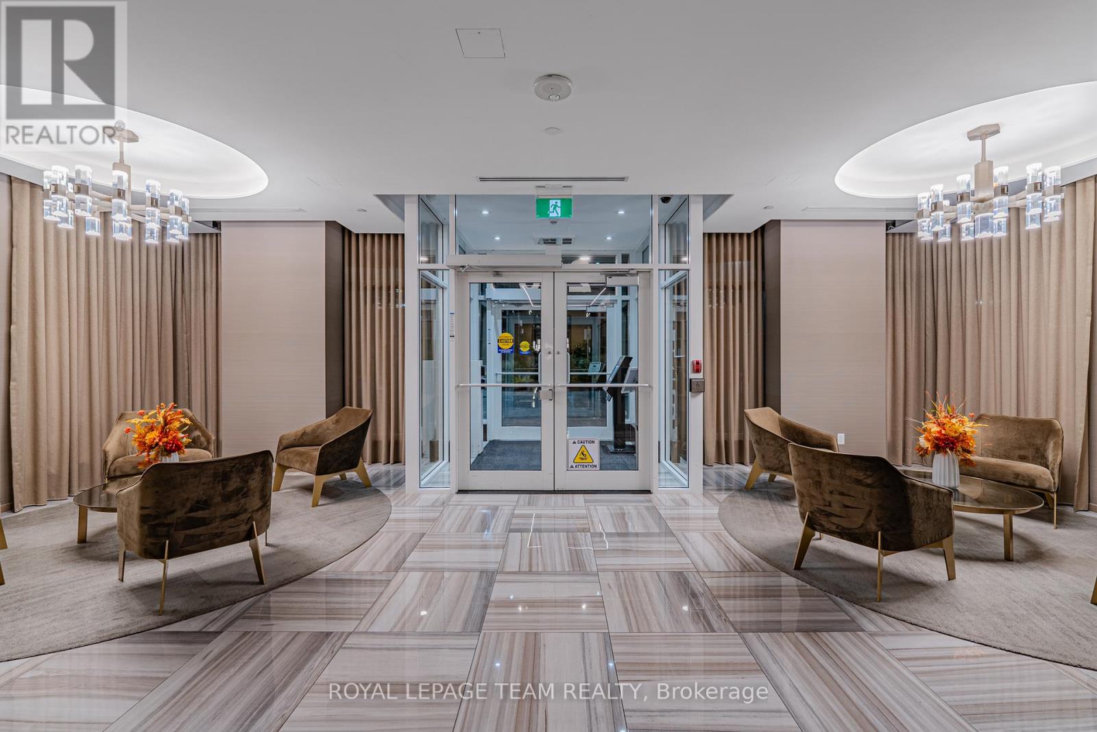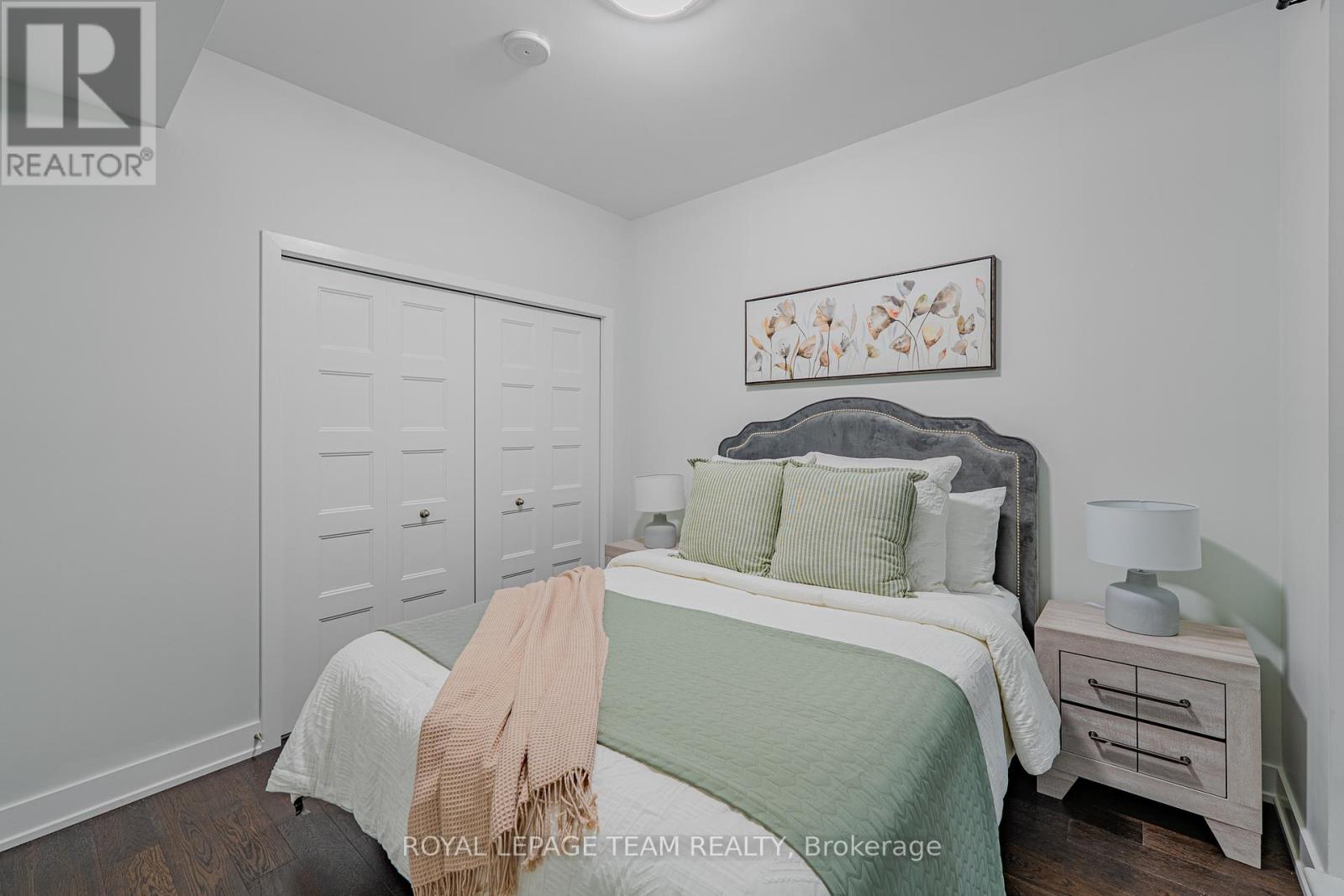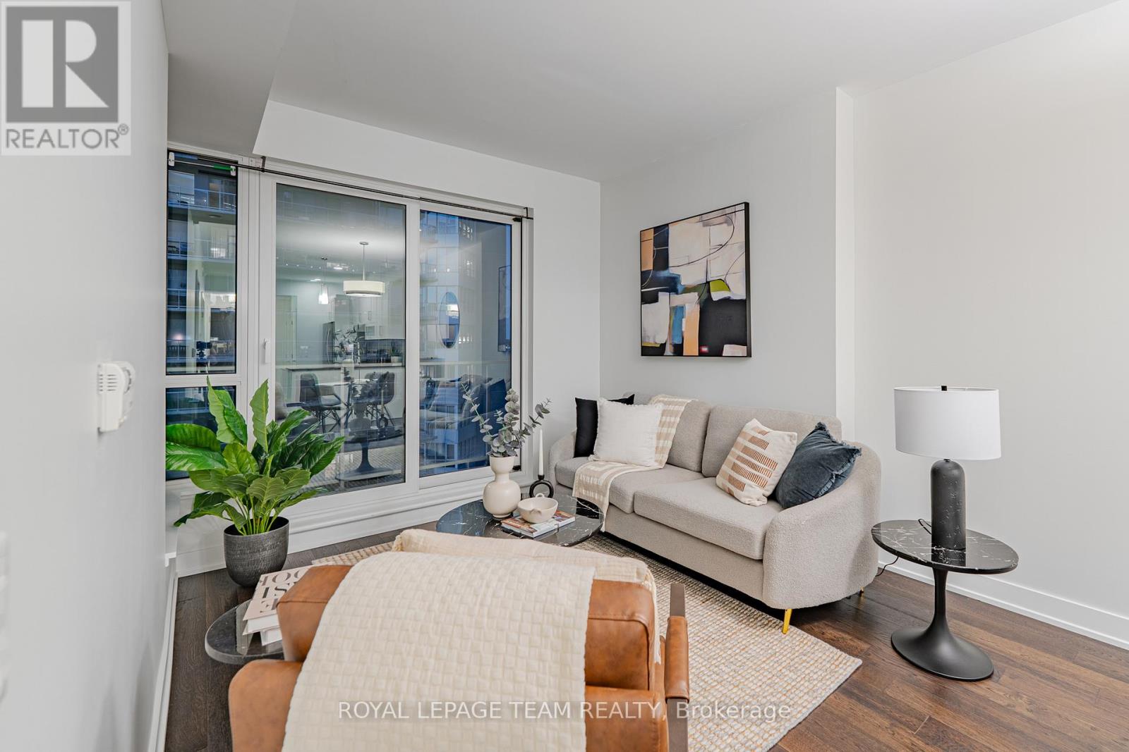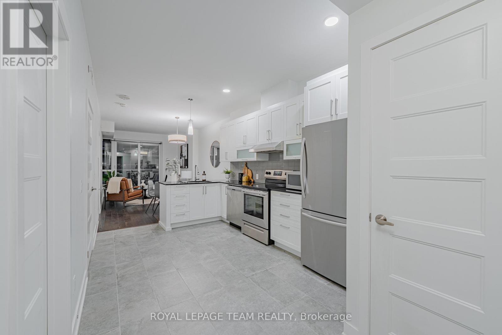 Experience elevated living at Petrie's Landing, steps from scenic Petrie Island Beach and the Ottawa River. Perched on the 11th floor, this 693 sq. ft. condo combines modern comfort with resort-style amenities. Featuring 1 bedroom plus an oversized den that easily serves as a second bedroom, this home is perfect for professionals, couples, or anyone seeking a stylish and flexible space. The open-concept layout is bright and inviting, with hardwood floors, oversized windows, and a sleek kitchen featuring quartz countertops, stainless steel appliances, and smart cabinetry. Both the living room and primary bedroom open to large private balconies, ideal for morning coffee, evening drinks, or simply soaking in the panoramic East-facing views of the Ottawa River. The spa-inspired 4-piece bathroom includes a deep soaker tub and a separate walk-in shower, while in-suite laundry, central air conditioning, and efficient gas heating add everyday convenience. Free access to a long list of amenities: a fully equipped gym, rooftop outdoor pool with BBQ area, elegant party and meeting rooms, plus one underground parking space and a storage locker. Located in a quiet, adult-oriented and smoke-free building, this prestigious address offers easy access to parks, golf courses, trails, and the marina, where nature meets modern urban living. Immediate occupancy available. Locker P2 left Storage Room B-126 and Garage Parking P1-Left side A-65. (id:64974)