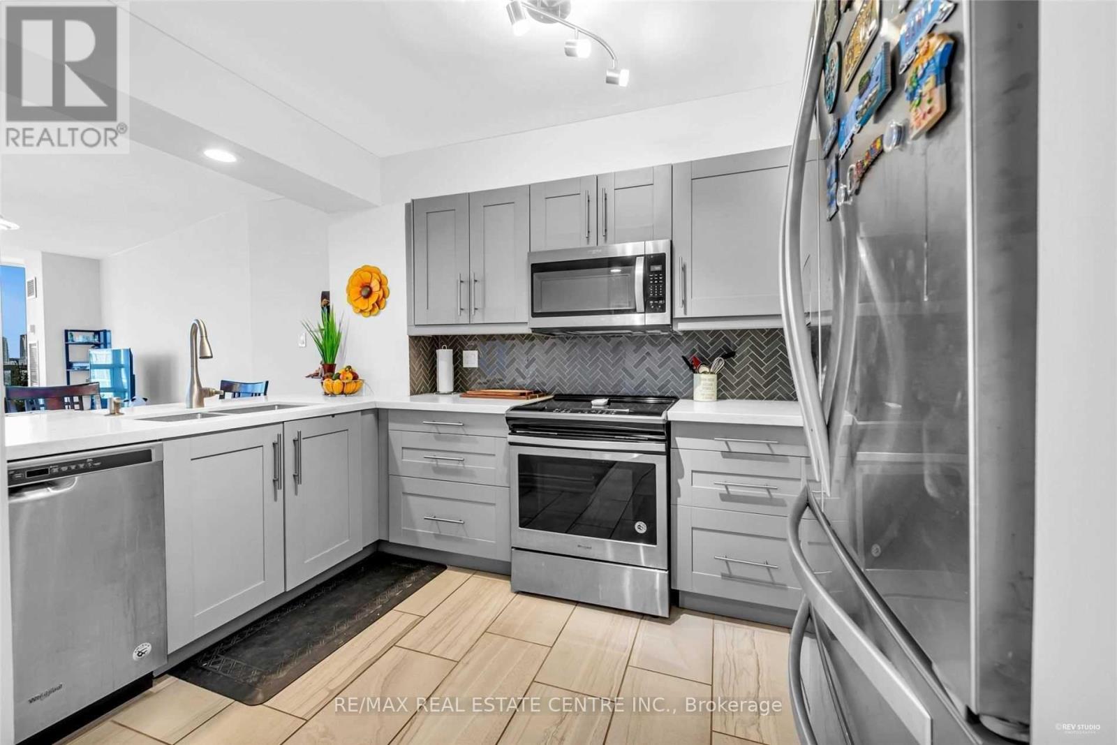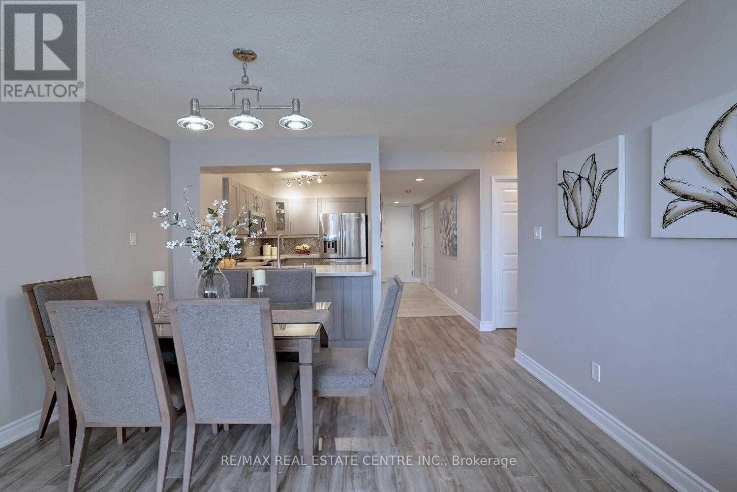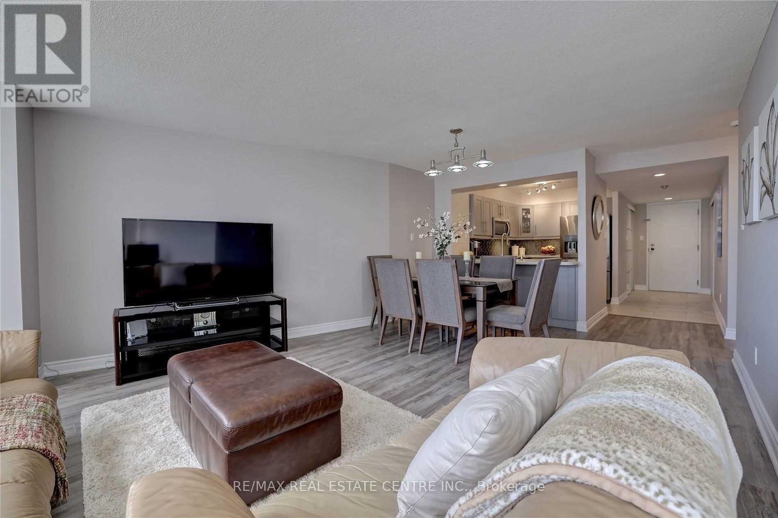 Spectacular professionally renovated corner suite at The Esprit - an immaculate, move-in ready 2 bedroom, 2 bath showstopper with one parking (extended portion may fit a bike) and private locker. Bright, open-concept living with dramatic floor-to-ceiling windows and coveted southeast exposure floods the space with natural light and showcases stunning city views. Designer finishes throughout: sleek quartz countertops, stainless steel appliances, built-in microwave, breakfast bar, and freshly painted interiors- all electrical light fixtures and window coverings included. Prime Hurontario location with effortless access to GTA highways (403,410,401,407,427)- perfect for commuters. LRT coming very soon. Luxury building amenities elevate daily living. All the work is done, just unpack and enjoy upscale condo living! (id:64974)