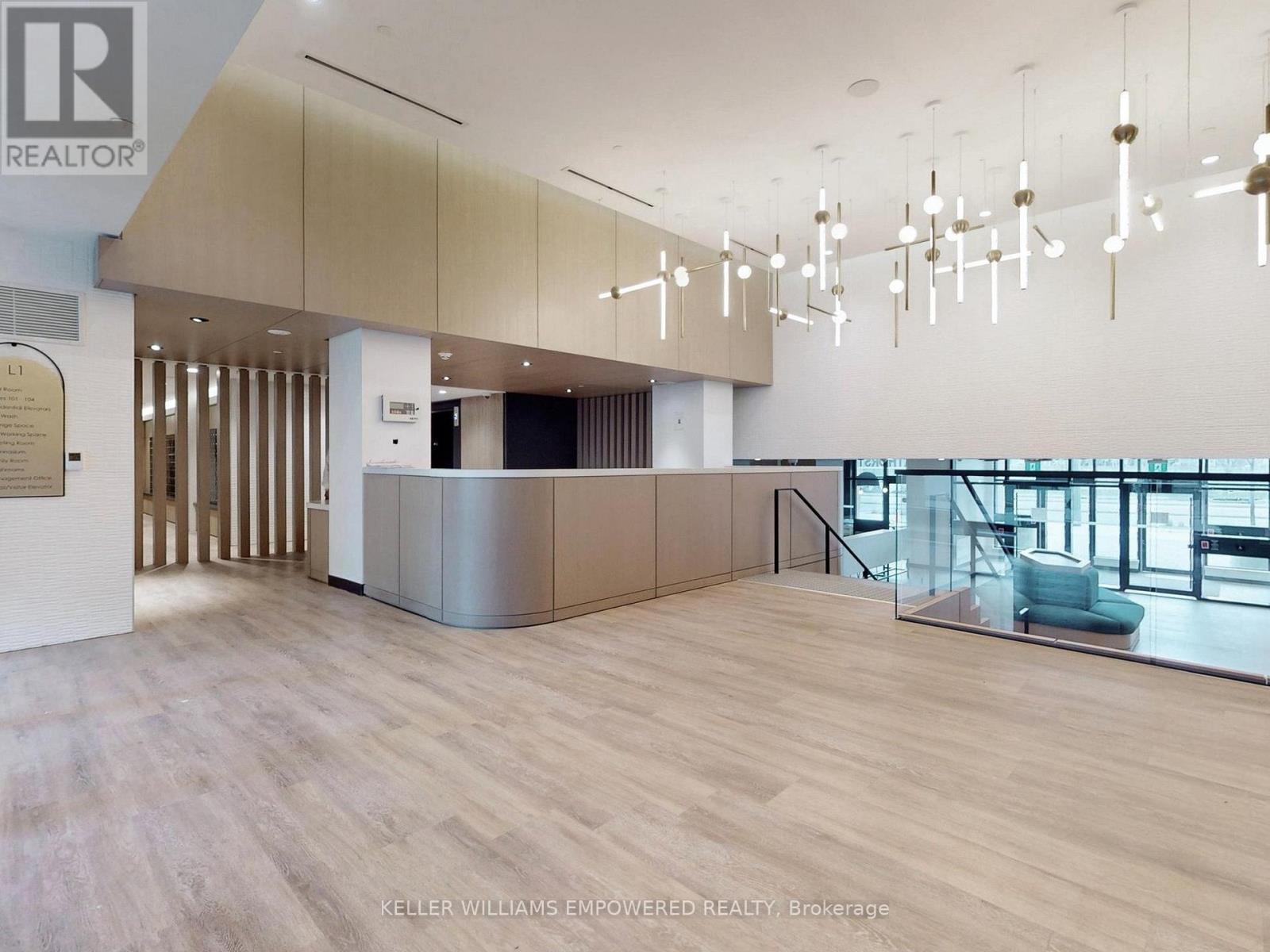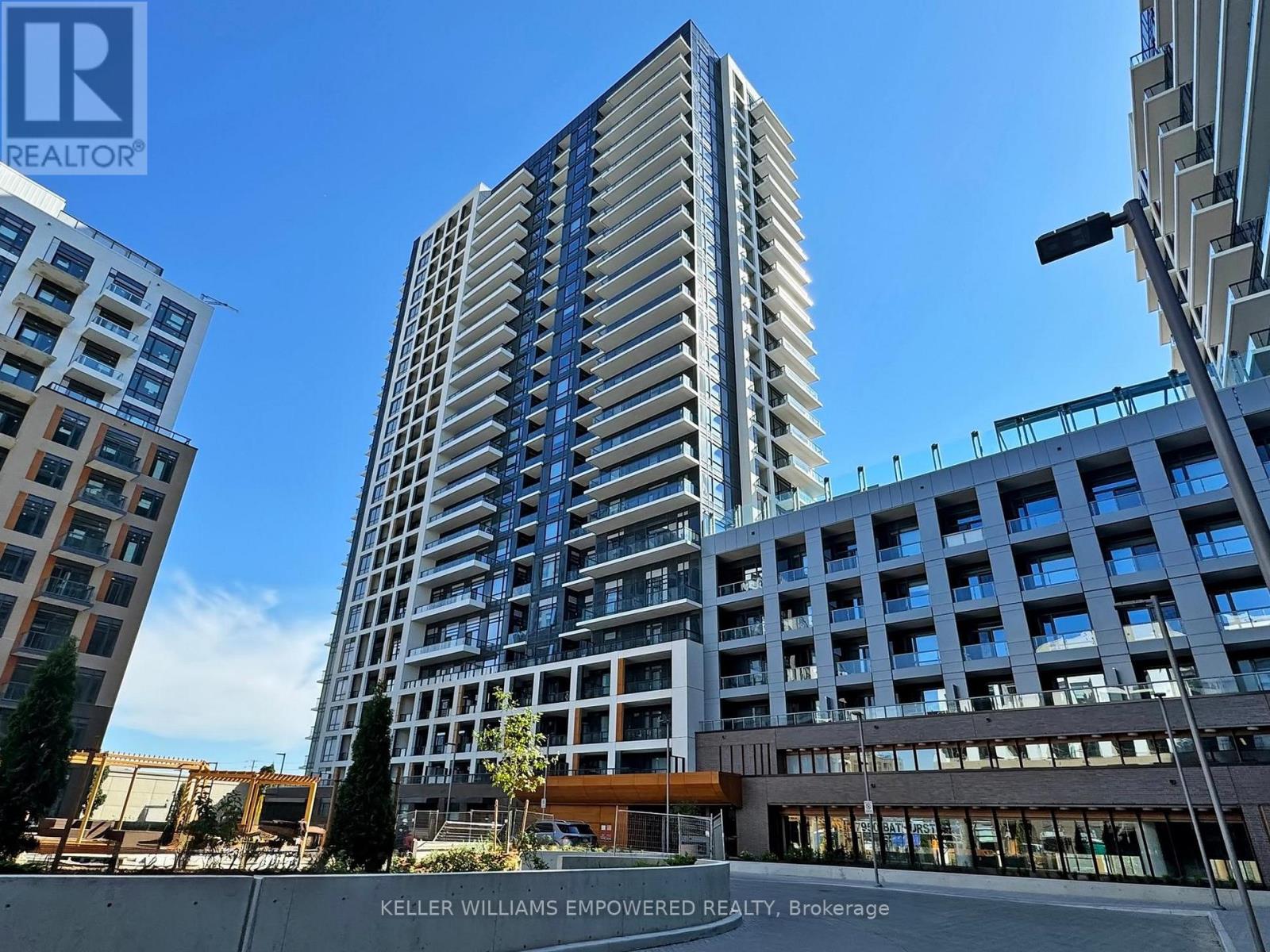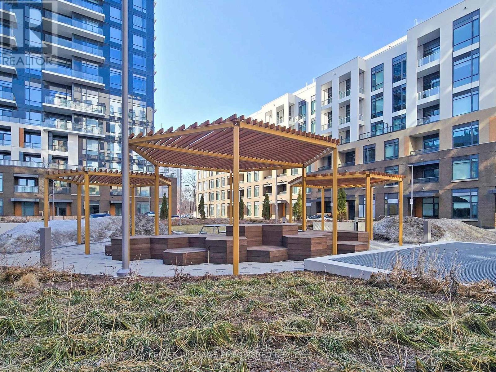 Surrounded by the quaint comforts of South Thornhill, this property combines stylish design, functional living, and access to an outstanding community. Residents will enjoy everyday conveniences with shops, cafés, restaurants, schools, lush parks, local transit, commuter highway networks such as Highway 407 and Highway 7, and The Promenade Mall all just moments away. Inside, the suite offers a bright and functional 1-bedroom plus den layout. The open-concept kitchen is finished with quartz countertops, premium appliances, ceramic tile backsplash, soft-close cabinetry, and a central island with dining space. The kitchen flows into the living area, where floor-to-ceiling east-facing windows bring in natural light and provide a walk-out to the private balcony. The primary bedroom features a large window wall and a walk-in closet with built-in organizers and lighting. The 4-piece bathroom is beautifully appointed with porcelain tile flooring, an integrated vanity sink with storage, frameless mirror with sconce lighting, and a deep soaker tub with full tile surround. A semi-open den offers flexibility as a home office or reading nook, while in-suite laundry with stacked washer and dryer ensures day-to-day convenience. Residents of this community have access to an exceptional collection of amenities including a fitness centre with yoga studio, multi-sport gymnasium with basketball court, co-working and meeting rooms, family and party spaces, and a seventh-floor terrace with BBQs, lounge areas, and a play zone for children. Outdoor living is enhanced by a landscaped community courtyard, fully fenced dog run, pet wash station, and 24/7 concierge. This property also includes one owned parking space and one locker for added convenience. (id:64974)