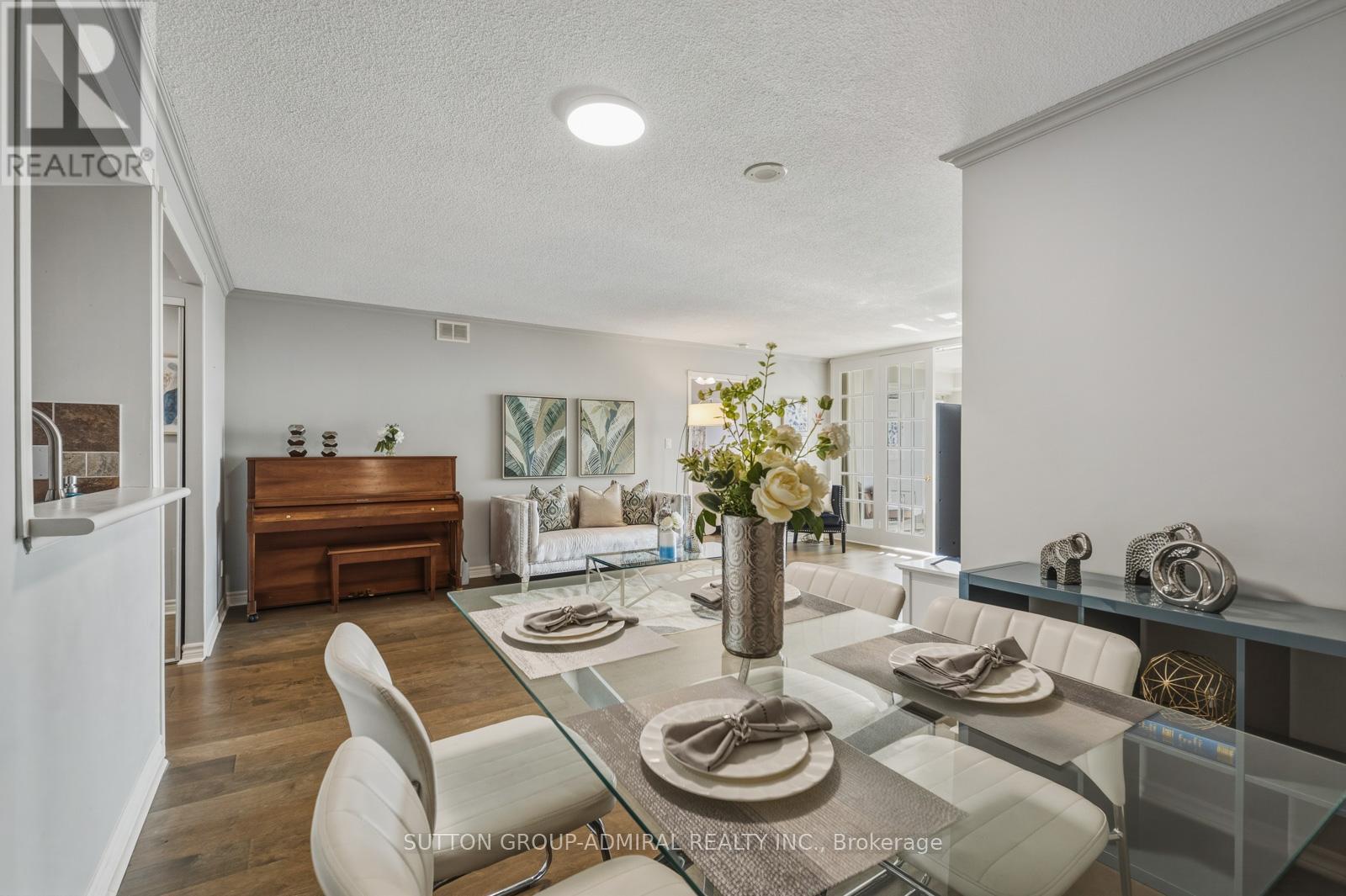 Welcome to this spacious and well-maintained 2+1 bedroom condo in the desirable Plaza Del Sol community, offering approximately 1,111 sq. ft. of bright, carpet-free living with a functional open-concept layout, large living and dining areas, and a versatile solarium with walk-out to a private balcony showcasing clear west-facing views . The unit features a modern kitchen with stainless steel appliances, a generously sized primary bedroom with walk-in closet and ensuite bathroom, and the added flexibility of a den or solarium ideal for a home office. Recent upgrades include panel hardwood flooring, updated vanities in both bathrooms and new toilets, enhancing both style and comfort. Residents enjoy a full suite of amenities including an indoor pool, gym, sauna, rooftop lounge, party room, and gatehouse security, all within a well-managed building. Ideally located along the vibrant Bathurst & Steeles corridor, you're minutes to everyday conveniences, shopping hubs like RioCan Marketplace, Promenade Shopping Centre, and Centerpoint Mall, as well as parks such as G. Ross Lord Park, Lakehurst Park, and Conley Park. Families will appreciate proximity to schools including Louis-Honore Frechette Public School, St. Elizabeth Catholic High School, Brownridge Public School, and Hodan Nalayeh Secondary School, along with community resources like Bathurst Clark Resource Library. Commuters will benefit from seamless access to multiple transit options including TTC and YRT, making this an ideal home for comfortable, connected living. (id:64974)