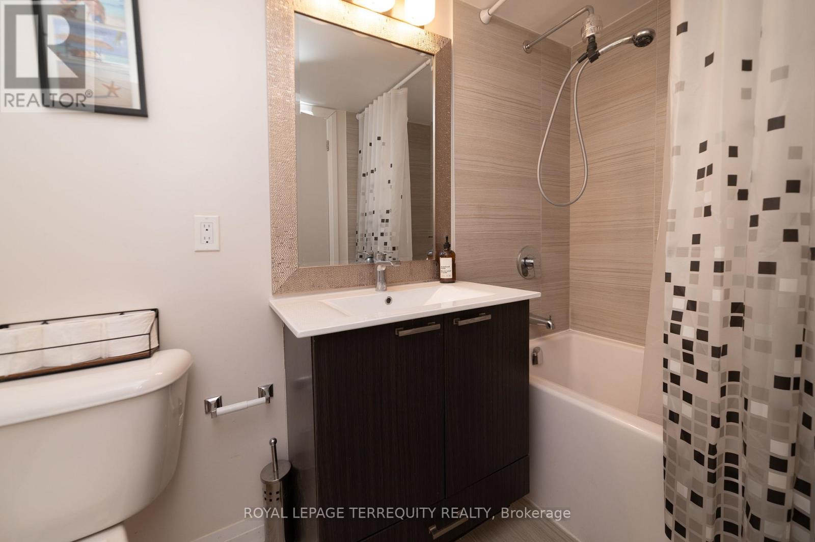 This is one of those units you walk into and immediately love. Bright, clean, and thoughtfully laid out, this 1 bed + den with 2 full baths offers the kind of flexibility buyers are looking for; whether you're a first-time buyer planning ahead, a family needing extra space, or a downsizer who doesn't want to compromise. The den easily functions as a home office, nursery, or guest area, making the space truly multi-purpose. Floor-to-ceiling windows flood the unit with natural light. You'll love the access to your private balcony from both the living room and the primary bedroom. Enjoy south-facing views of the Toronto skyline, perfect for morning coffee or winding down at the end of the day. The primary suite features its own ensuite bath for added comfort and privacy. Pride of ownership is evident throughout, making this a move-in ready opportunity. Complete with 1 parking space and 1 locker for added convenience. Ideally located in Scarborough, just steps to shopping, dining, transit, and everyday essentials, with quick access to the 401 and DVP for an easy commute. It's a space that simply makes sense the moment you step inside. Don't miss your chance to make this your home! (id:64974)