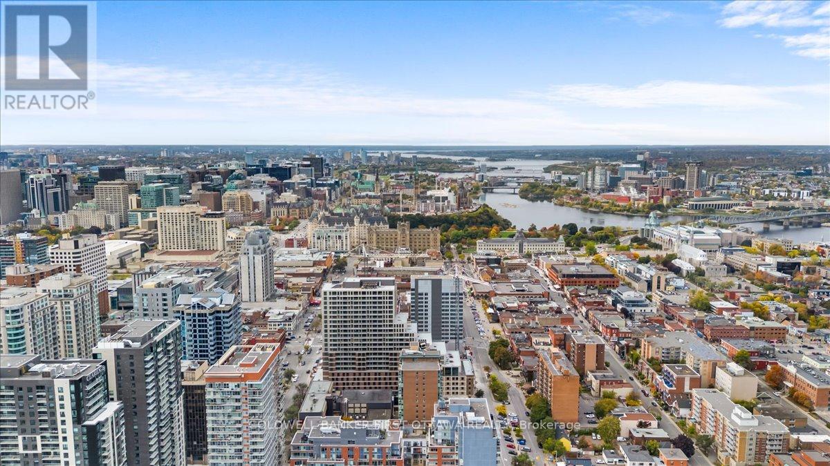 Experience urban living at its finest in this stunning corner unit, ideally situated in the heart of Ottawas vibrant ByWard Market. Enjoytheconvenience of being steps away from an array of amenities including grocery stores, boutiques, renowned restaurants, the University ofOttawa,the new LRT station, Parliament Hill, and the scenic Rideau Canal.This bright, sun-filled condo offers a stylish open-concept livingspaceperfectfor both everyday living and entertaining guests. Host your next Canada Day celebration from your private balcony and take in thespectacularfireworks display right from home. Residents enjoy access to exceptional building amenities, including a fully equipped fitnesscentre and anelegant party room. A dedicated storage unit is also included for added convenience. (id:64974)