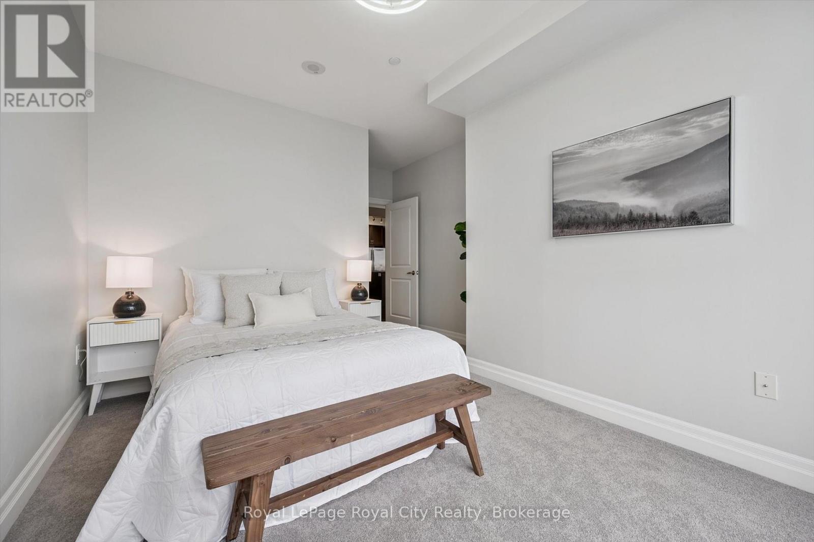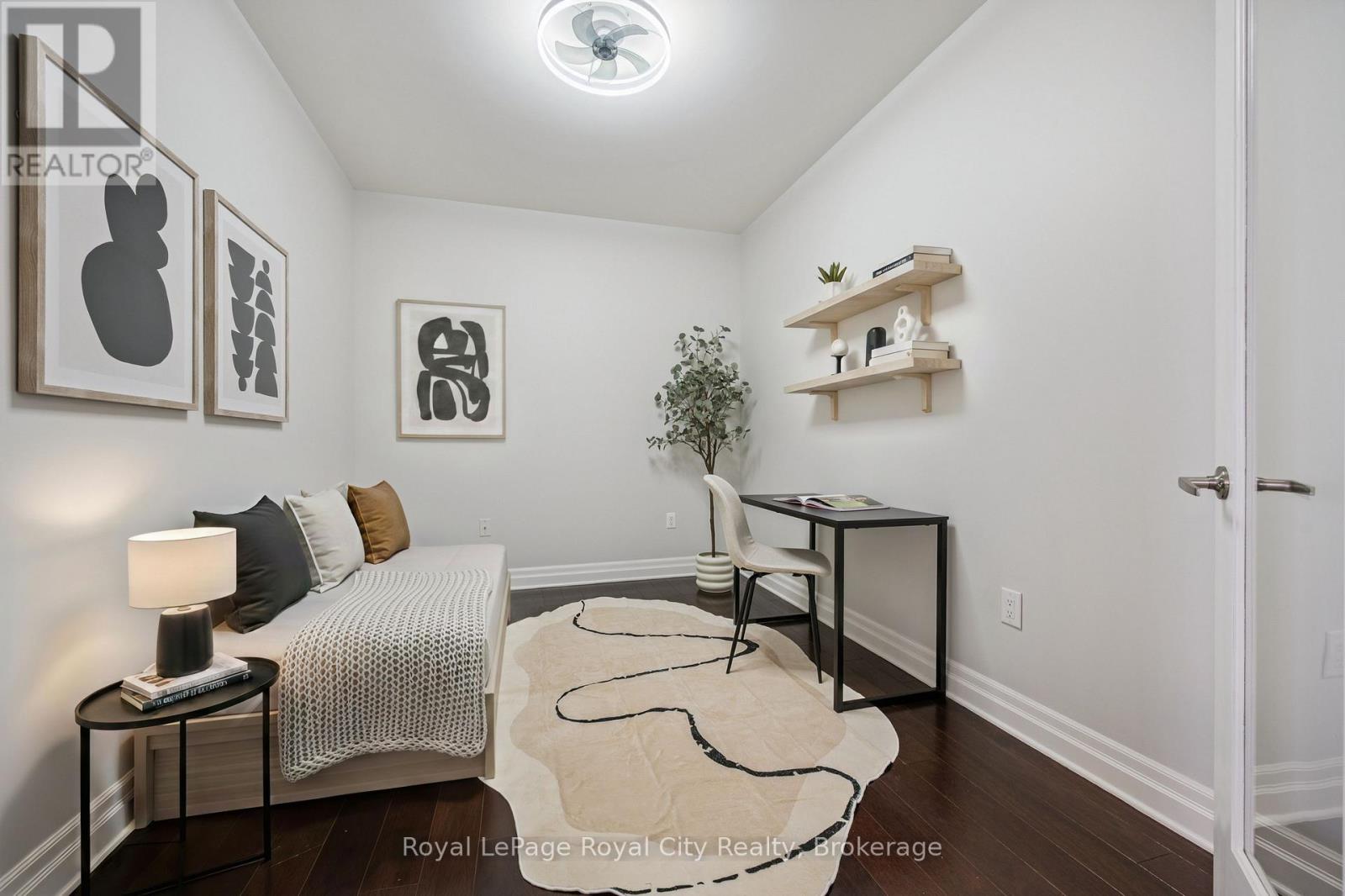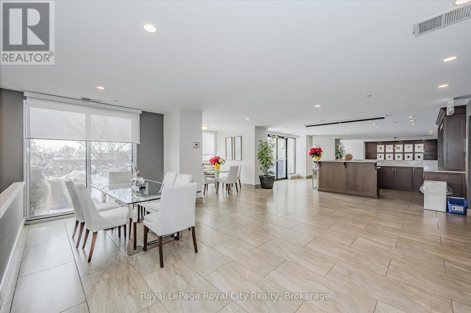 Welcome to Suite 1108 at The Riverhouse, one of Guelph's most sought-after condominium residences known for its quiet atmosphere, upscale feel, and exceptional management. Perfectly positioned in the heart of downtown, you're just steps from the GO Station, Sleeman Centre, River Run Centre, scenic walking trails, and Guelph's best restaurants, cafés, and shops - offering a truly walkable lifestyle. This spacious 1 bedroom plus den suite offers a highly functional and versatile layout. The large den with French doors is ideal as a second bedroom or work-from-home office. Rich hardwood flooring, granite countertops, modern lighting, and a cozy fireplace create a sophisticated living environment. The open-concept kitchen is designed for everyday living and entertaining, featuring full-size stainless steel appliances, ample cabinetry, and a peninsula with bar seating that flows into the generous living and dining area. Sliding doors lead to an oversized private balcony-perfect for enjoying sunset views over downtown. The bright primary bedroom boasts an oversized walk-in closet, with a spacious 4-piece bathroom offering abundant counter space (or easily convert to a dual vanity!). A welcoming foyer with double coat closet and a dedicated laundry/storage room with added cabinetry enhances everyday functionality. Residents enjoy exceptional amenities, including an incredible rooftop terrace with BBQs, elegant party room and lounge with kitchen, media room, library, fitness centre, and well-appointed guest suite. Recent updates include fresh paint, new bedroom carpeting, added laundry room cabinetry, modern lighting, new kitchen faucet, and new toilet. This unit also includes a well-located, owned parking space! Ideally suited for commuting professionals, modern couples, or downsizers seeking refined, low-maintenance living in an unbeatable location. *Most utilities are conveniently covered in the condo fees, and storage lockers are available to rent for $35 per month. (id:64974)