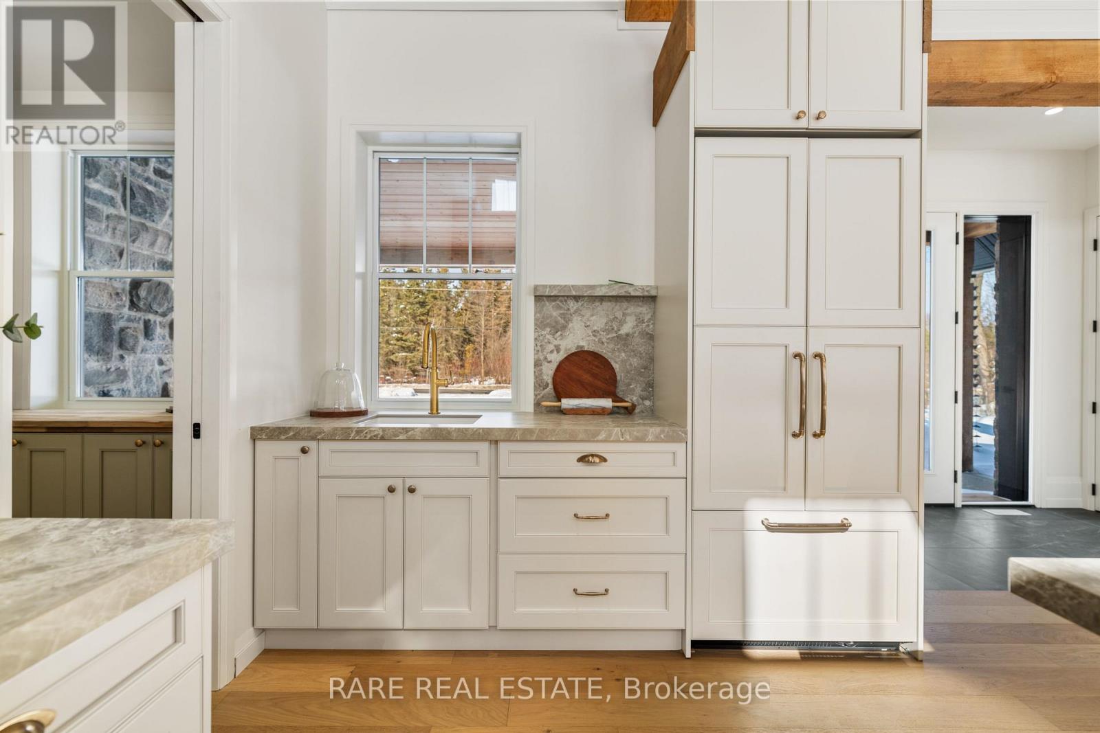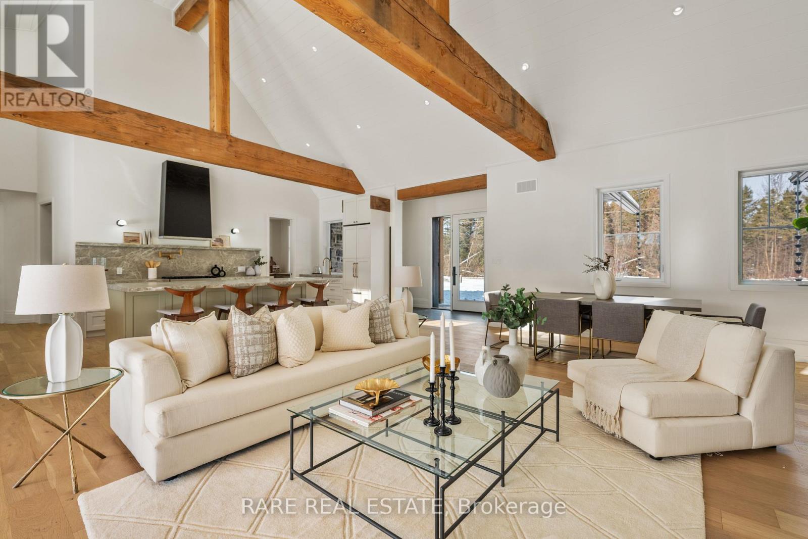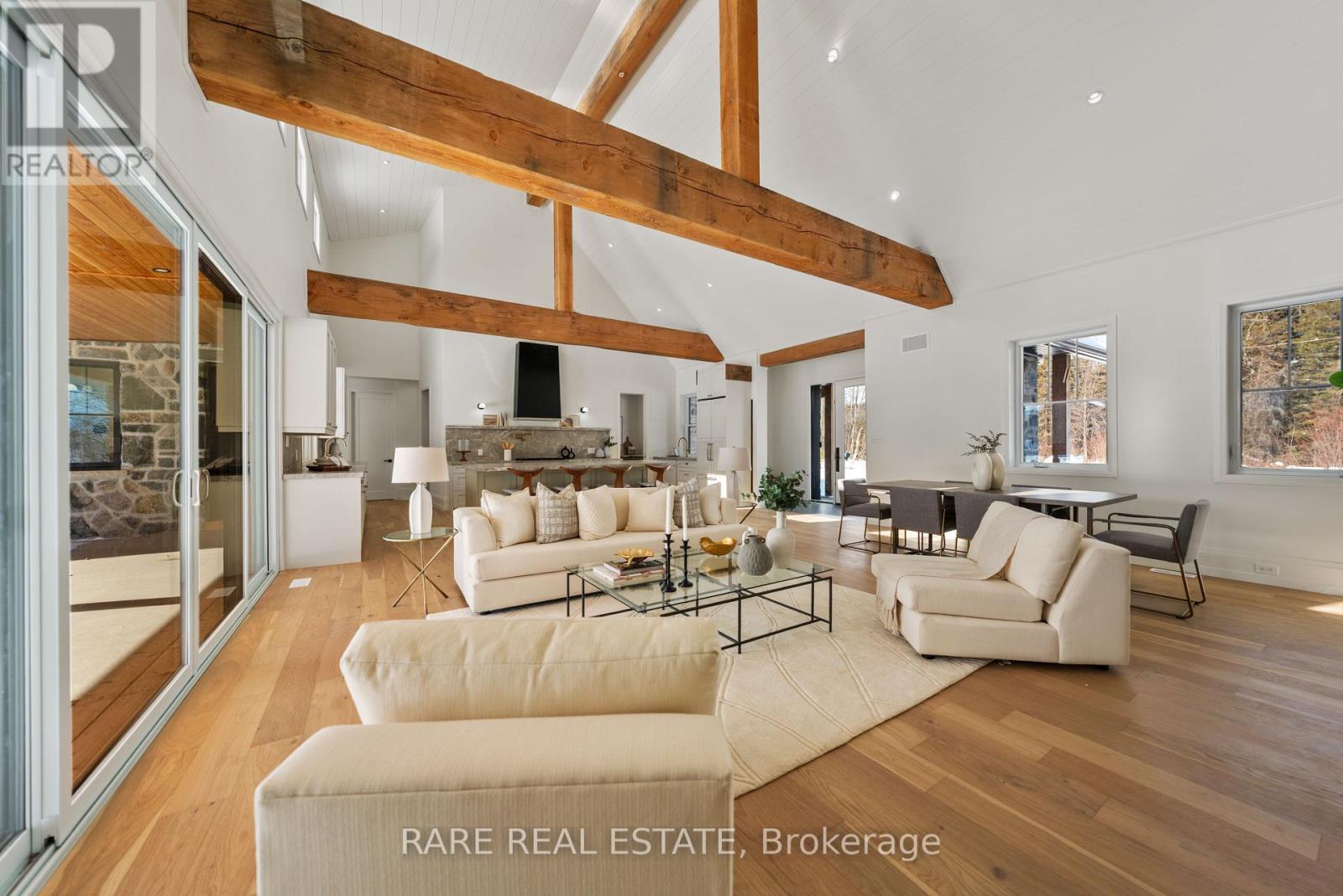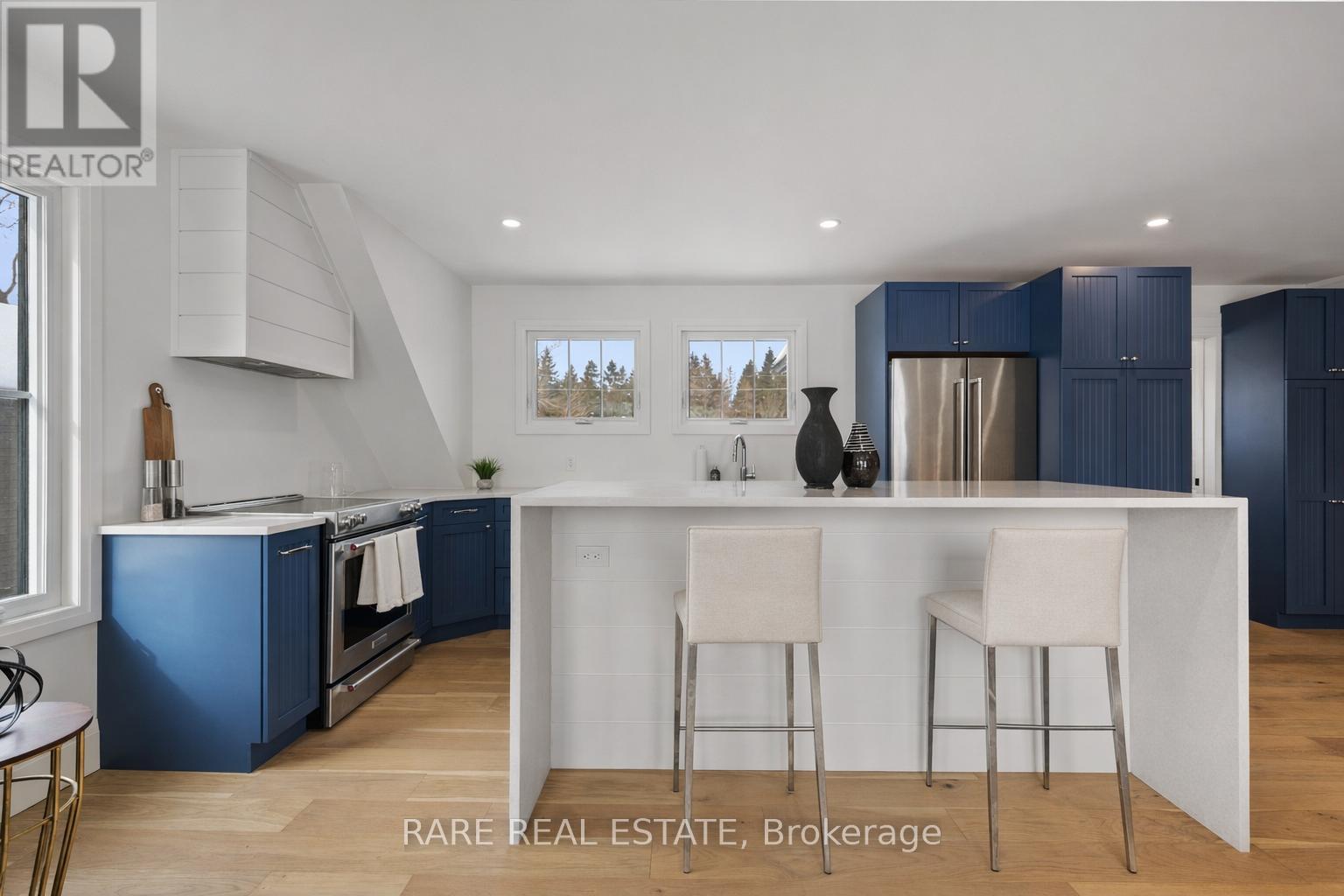 A rare offering for those who appreciate quality and thoughtful design. This custom-built estate combines solid ICF construction and spray foam insulation with carefully selected finishes throughout. Inside, 18-foot vaulted ceilings and expansive windows create a bright, open atmosphere. Engineered Oak Woolf flooring, architectural fir beams, and custom millwork add warmth and character. The kitchen is both beautiful and functional, featuring premium appliances, a walk-in pantry, and a serving window to the backyard, while a 16-foot sliding door extends the living space outdoors to a snow melt patio. The primary suite is a true retreat leading to a spa-inspired ensuite with radiant in-floor heating. A fully self-contained legal second dwelling includes its own kitchen, laundry, separate utilities, and a dedicated 100-amp panel, offering excellent flexibility for extended family or additional income. Currently operating as a successful Airbnb, it generates approximately $250 per night. Guests are drawn to the unbeatable lifestyle- lake swimming in the summer and ice fishing in the winter. The property also includes a coach house with the potential of creating even more possibilities for additional living space, a studio, or guest accommodations. This home is equipped with a Waterloo Biofilter septic system, thoughtfully engineered to support the potential addition of a pool while offering both efficiency and flexibility for your long term plans. With lake views from the Juliet balcony, and just a short walk to the water, this energy efficient home offers comfort, versatility, and an exceptional lifestyle. (id:64974)