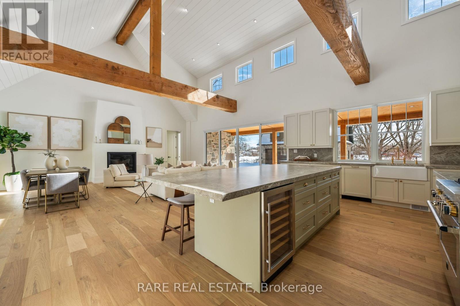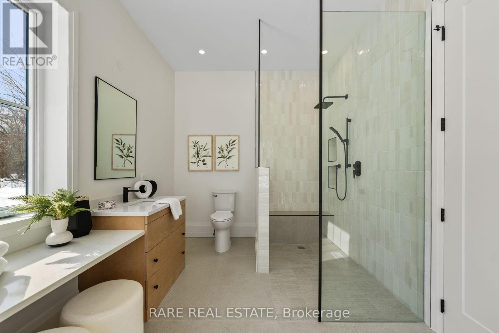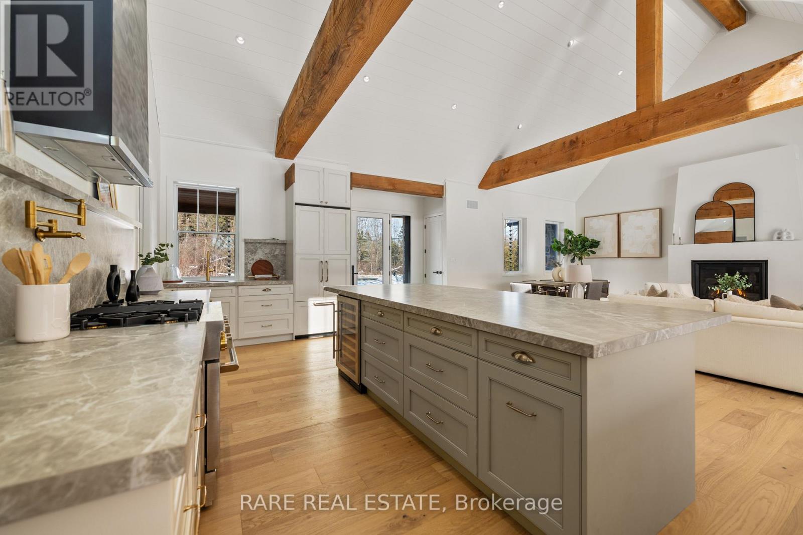 A rare offering for those who appreciate quality and thoughtful design. This custom-built estate combines solid ICF construction and spray foam insulation with carefully selected finishes throughout. Inside, 18-foot vaulted ceilings and expansive windows create a bright, open atmosphere. Engineered Oak Woolf flooring, architectural fir beams, and custom millwork add warmth and character. The kitchen is both beautiful and functional, featuring premium appliances, a walk-in pantry, and a serving window to the backyard, while a 16-foot sliding door extends the living space outdoors to a snow melt patio. The primary suite is a true retreat leading to a spa-inspired ensuite with radiant in-floor heating. A fully self-contained legal second dwelling includes its own kitchen, laundry, separate utilities, and a dedicated 100-amp panel, offering excellent flexibility for extended family or additional income. Currently operating as a successful Airbnb, it generates approximately $250 per night. Guests are drawn to the unbeatable lifestyle- lake swimming in the summer and ice fishing in the winter. The property also includes a coach house with the potential of creating even more possibilities for additional living space, a studio, or guest accommodations. This home is equipped with a Waterloo Biofilter septic system, thoughtfully engineered to support the potential addition of a pool while offering both efficiency and flexibility for your long term plans. With lake views from the Juliet balcony, and just a short walk to the water, this energy efficient home offers comfort, versatility, and an exceptional lifestyle. (id:64974)