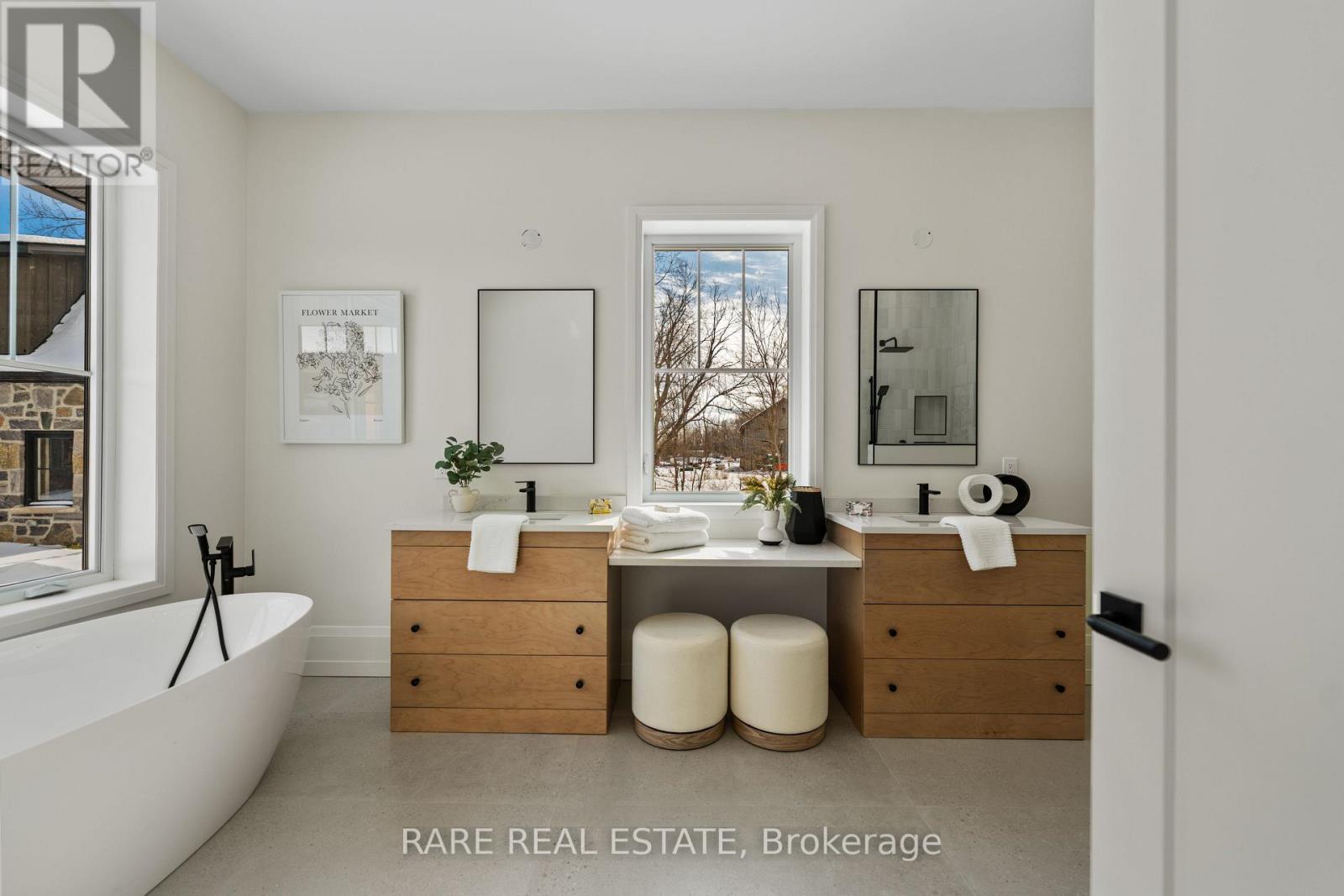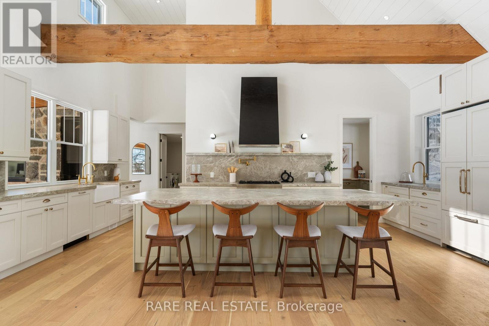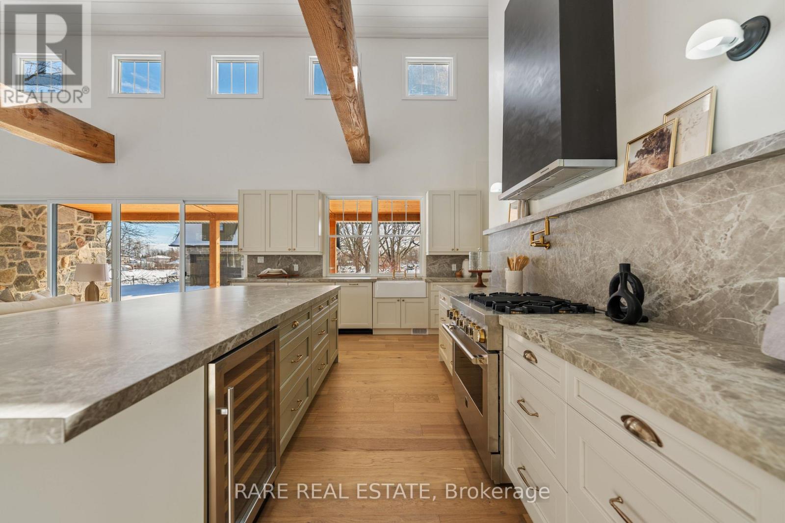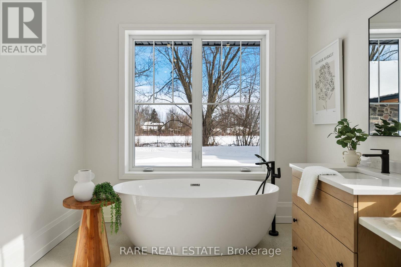 A rare offering for those who appreciate quality and thoughtful design. This custom-built estate combines solid ICF construction and spray foam insulation with carefully selected finishes throughout. Inside, 18-foot vaulted ceilings and expansive windows create a bright, open atmosphere. Engineered Oak Woolf flooring, architectural fir beams, and custom millwork add warmth and character. The kitchen is both beautiful and functional, featuring premium appliances, a walk-in pantry, and a serving window to the backyard, while a 16-foot sliding door extends the living space outdoors to a snow melt patio. The primary suite is a true retreat leading to a spa-inspired ensuite with radiant in-floor heating. A fully self-contained legal second dwelling includes its own kitchen, laundry, separate utilities, and a dedicated 100-amp panel, offering excellent flexibility for extended family or additional income. Currently operating as a successful Airbnb, it generates approximately $250 per night. Guests are drawn to the unbeatable lifestyle- lake swimming in the summer and ice fishing in the winter. The property also includes a coach house with the potential of creating even more possibilities for additional living space, a studio, or guest accommodations. This home is equipped with a Waterloo Biofilter septic system, thoughtfully engineered to support the potential addition of a pool while offering both efficiency and flexibility for your long term plans. With lake views from the Juliet balcony, and just a short walk to the water, this energy efficient home offers comfort, versatility, and an exceptional lifestyle. (id:64974)