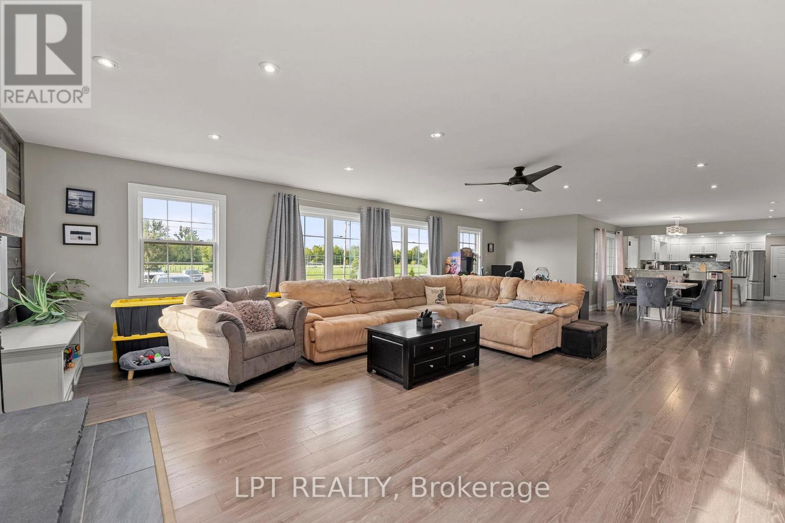 Escape The Ordinary With This 5-Acre Property Offering Endless Possibilities! Whether You Need Room For A Business Yard, Extra Storage, Or Dream Of A Future Hobby Farm, This One Has It All. A 30' X 30' Insulated Garage, Multiple Outbuildings, And A Driveway That Fits 10+ Vehicles Make It A Standout. Enjoy Summer Days On The Expansive Deck Overlooking The Above-Ground Pool And Evenings Surrounded By Peace And Privacy. Inside, The 2,473 Sq. Ft. Bungalow Features A Functional Mudroom With Built-Ins, A Renovated Kitchen, And A Bright Open-Concept Living And Dining Room With Fireplace. The Primary Suite Boasts A Walk-Out To The Deck, Large Walk-In Closet, And 4-Piece Ensuite, With Two More Bedrooms, Two Full Baths, And An Office/Flex Space Completing The Main Floor. The Separate Finished Walk-Up Basement With Its Own Entrance Adds Another 1,218 Sq. Ft. Of Flexible Living Space, Including 3 Bedrooms, A Family Room, Dining Area, And Plenty Of Storage - An Ideal Setup For Visiting Extended Family Or Future Multi-Generational Living (Not Currently A Legal Apartment). All This, Directly Across From West Park And Just Down The Road From Lake Simcoe, Makes This A True Country Escape With Room To Live, Work, And Grow! (id:64974)