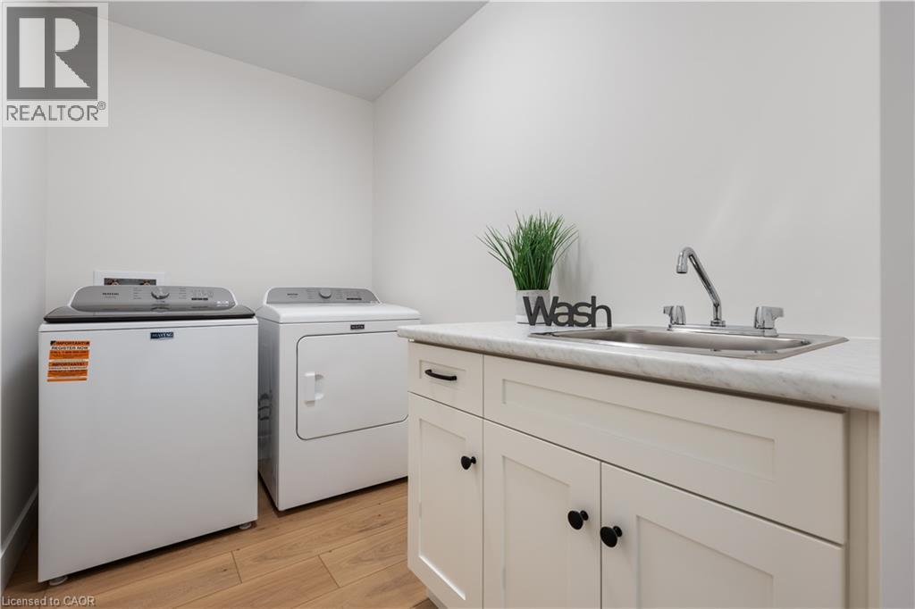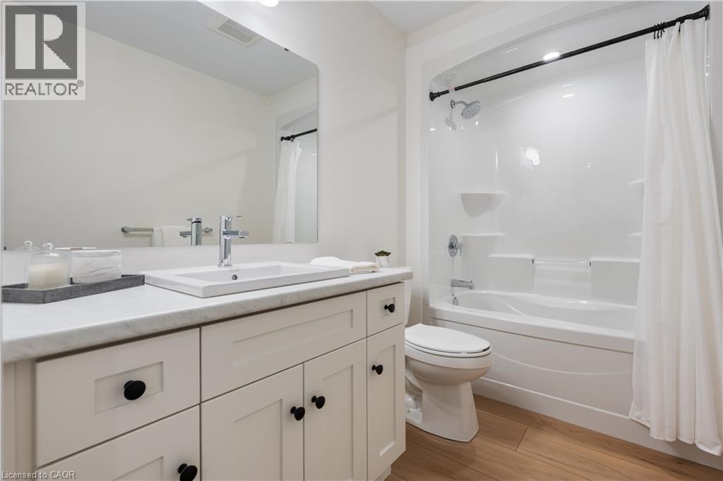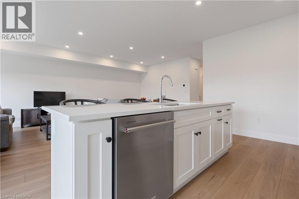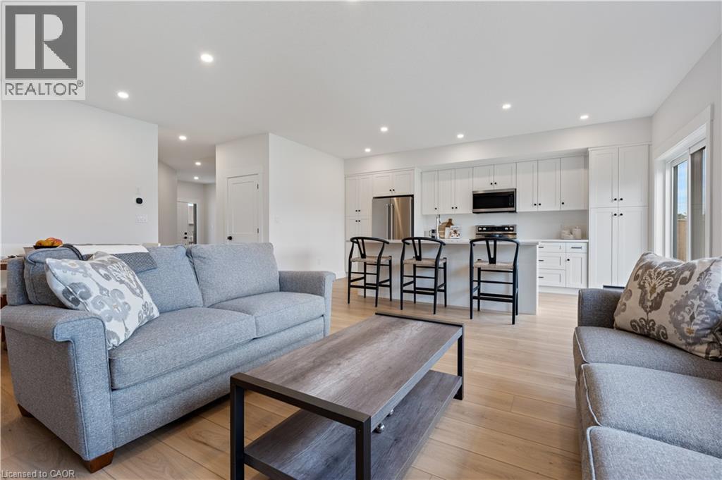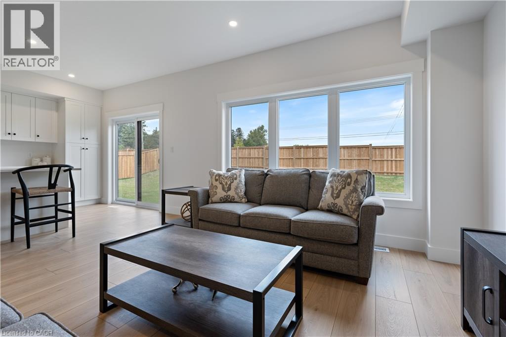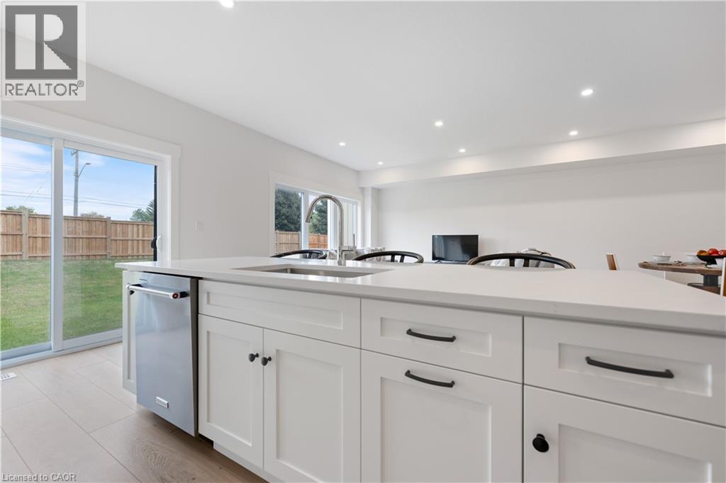 Get ready to fall in love with The AMBROSE-LEFT, a stunning new semi-detached 2-storey home with an attached double-car garage in the beautiful Villages of Waterford! Offering 1,799 sq ft of modern living space, this home is perfect for families seeking comfort & style. The home welcomes you with a covered front porch leading to a spacious foyer that opens to an open concept kitchen, dining nook & great room. The kitchen features custom cabinetry with pot & pan drawers, pull-out garbage & recycle bins, soft-close drawers & doors, quartz countertops, a breakfast bar island & a pantry. Luxury vinyl plank flooring is featured throughout the main floor, upper-level bathrooms & the upstairs laundry room, which comes complete with a sink. The second floor features 3 spacious bedrooms, including the large primary bedroom with a 4-piece ensuite (tub/shower combo) & a walk-in closet. With 9 ft ceilings on the main floor & 8 ft ceilings in the basement, the home is airy & open, providing plenty of space for your family to enjoy. The attached double-car garage comes with an 8 ft high door, & there’s room for 2 more cars on the driveway. The partially developed basement features large windows, a bathroom rough-in, & offers plenty of potential for customization. The home includes front & rear landscaping, rear fenced yard, central air conditioning, tankless hot water & rough-ins for central vacuum. Thoughtful details such as contemporary lighting, pot lights and a brick, stone & vinyl exterior add to the home's charm & durability. Enjoy the peace of mind that comes with new construction & the New Home Warranty. Additional perks include fibre optic internet, a programmable thermostat & no rental equipment. The home is conveniently located near schools, the library, shopping & grocery stores, making it ideal for families and investors. Licensed Salesperson in the Province of Ontario has an interest in Vendor Corp. (id:64974)