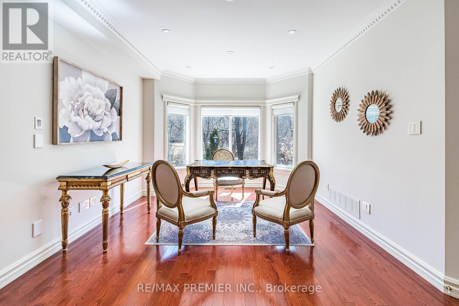 Nestled on a picturesque RAVINE lot in the exclusive Islington Woods Community, this European-inspired home sits on a quiet family-friendly court surrounded by Boyd Park's nature trails along the Humber River, and the Burton Trail. True craftsmanship tells this story. Walk through an oversized solid wood front entrance with motion sensored lighting and porcelain flooring. The open concept main level is anchored by a dramatic family room with soaring cathedral ceilings, crown moulding, cherry hardwood flooring, and best of all - breathtaking views. Great utilization of space and storage, enjoy built-in closet shelving. Solid wood doors with Italian mortise hardware throughout. Main-floor den offers the potential for a home office or fourth bedroom with a bathroom rough-in. The formal dining/living room features a large bay window, hand-painted plaster crown moulding and is open to a custom servery and coffee nook. The kitchen is equipped with stainless steel appliances, granite countertops, solid wood cabinetry, and a walkout to a newly constructed heated concrete patio with outdoor kitchen - granite counter, roughed-in BBQ, and under-mount stainless steel sink. A custom wrought iron floating staircase leads to the second level, where you will find the primary bedroom showcasing dual closets, motorized blinds, and a luxurious six-piece ensuite with ravine views. The third bedroom features an elegant Juliet balcony overlooking the great room which is adorned by lots of natural light. The garage is fully finished with porcelain tile flooring, spray foam insulation, upgraded openers, and a mezzanine for storage. Impeccably manicured, professionally groomed landscaping front to back accented by a tumbled stone driveway and walkway. Walking distance to Al Palladini Community Centre, bus routes to St. Michael's College, Villanova, and De La Salle - plus nearby shops, transit. Freshly painted, move-in ready! (id:64974)