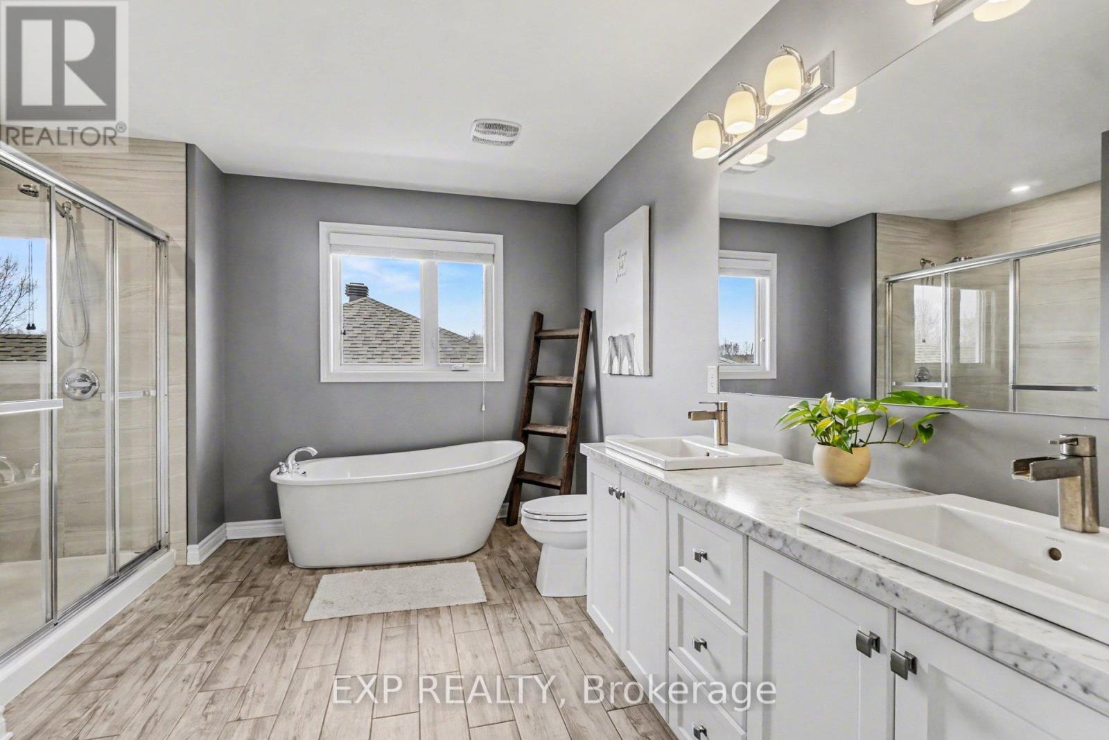 Welcome to this turnkey two-storey single-family home offering approximately 1,940 sq ft of above-grade living space in the growing, family-friendly community of Limoges Thoughtfully designed with a functional layout and modern finishes, this home offers bright, open-concept living that balances comfort and style. The main level features a spacious, living room and a well-appointed kitchen with stainless steel appliances, quartz countertops, backsplash, and a central island with breakfast bar seating. The kitchen flows seamlessly into the dining area, making it ideal for both everyday living and entertaining. Upgraded hardwood flooring runs throughout the main living spaces, with ceramic tile in key areas for easy maintenance. Upstairs, the primary bedroom offers a relaxing retreat complete with a walk-in closet and a cheater ensuite featuring a freestanding tub, glass walk-in shower, and double vanity. Two additional bedrooms and the convenience of second-floor laundry complete this level.The partially finished basement provides excellent potential for additional living space, ready for your personal touch.Step outside to a fully fenced south-facing backyard designed for enjoyment, featuring an above-ground pool, deck, gazebo, and plenty of green space-perfect for kids, pets, and summer entertaining. Ideally located near parks, schools, and outdoor destinations such as Larose Forest and Calypso Waterpark, with an easy commute to Ottawa, this home offers the perfect blend of peaceful living and city accessibility. (id:64974)