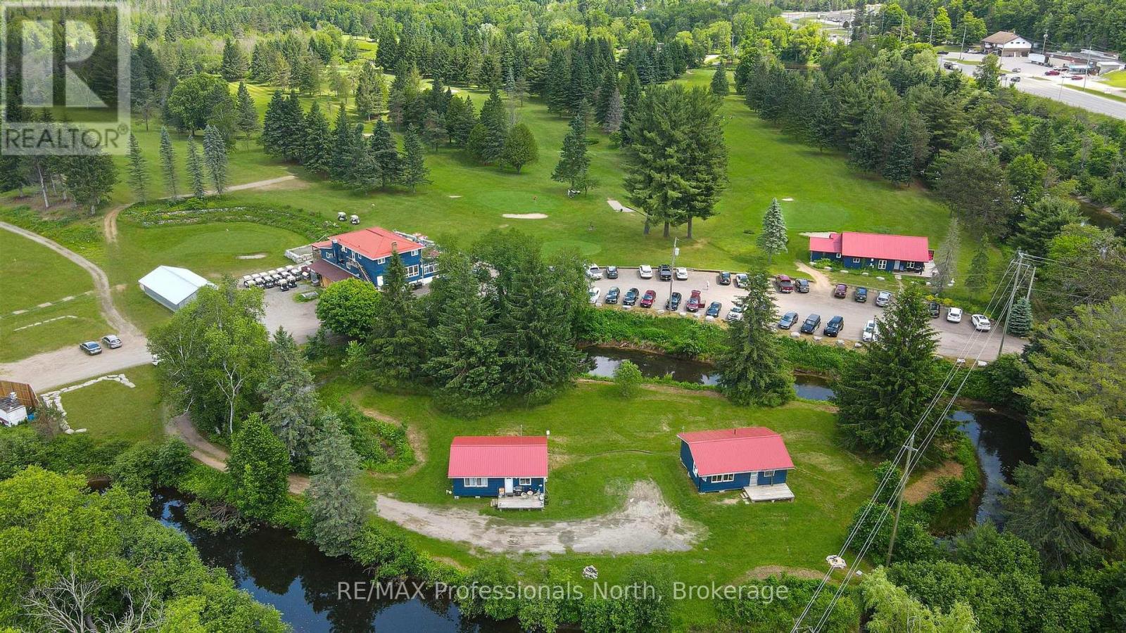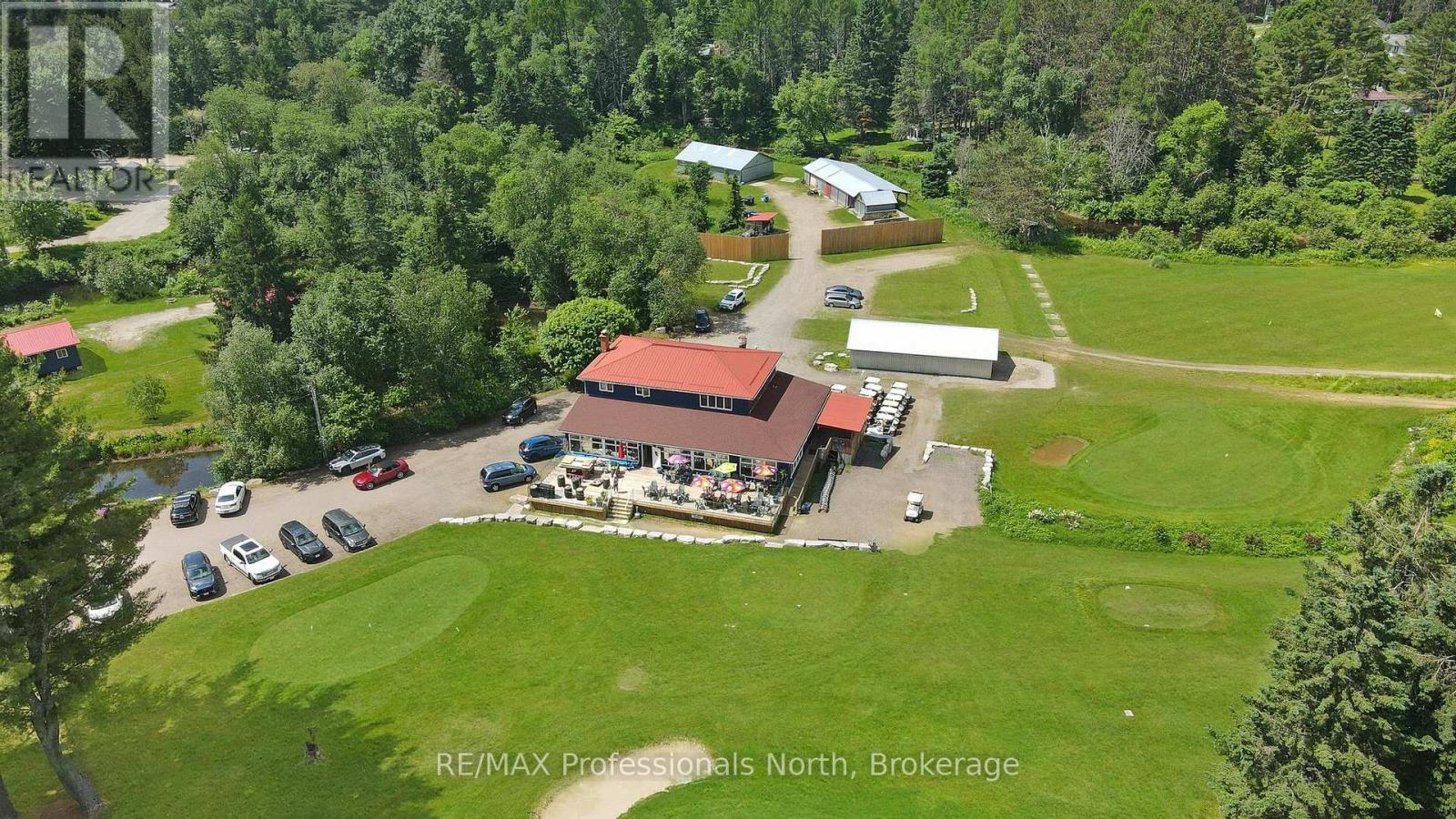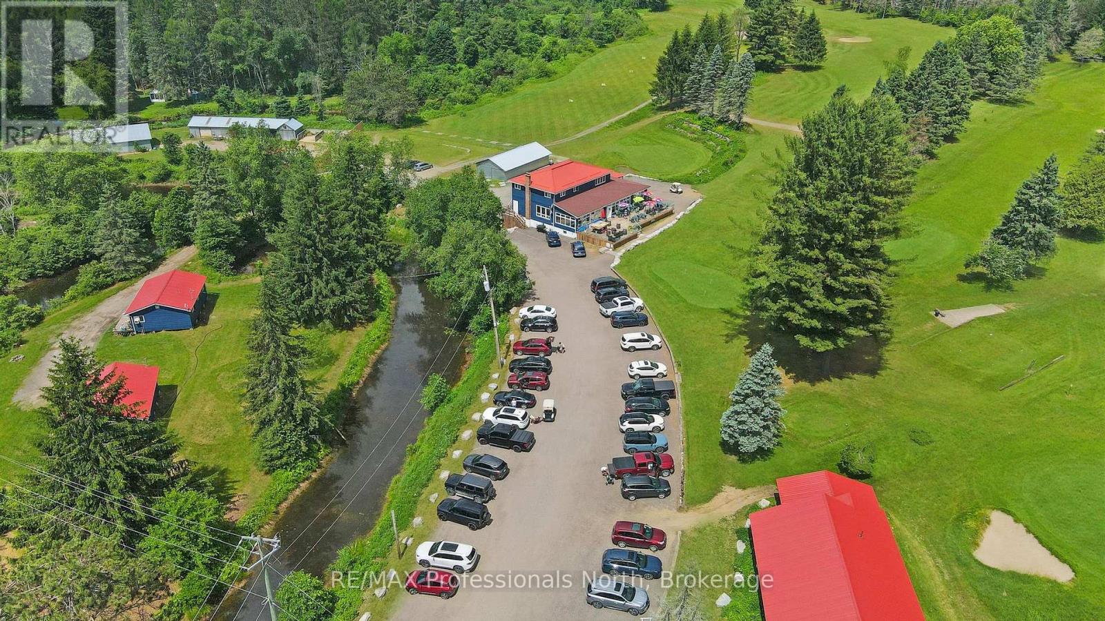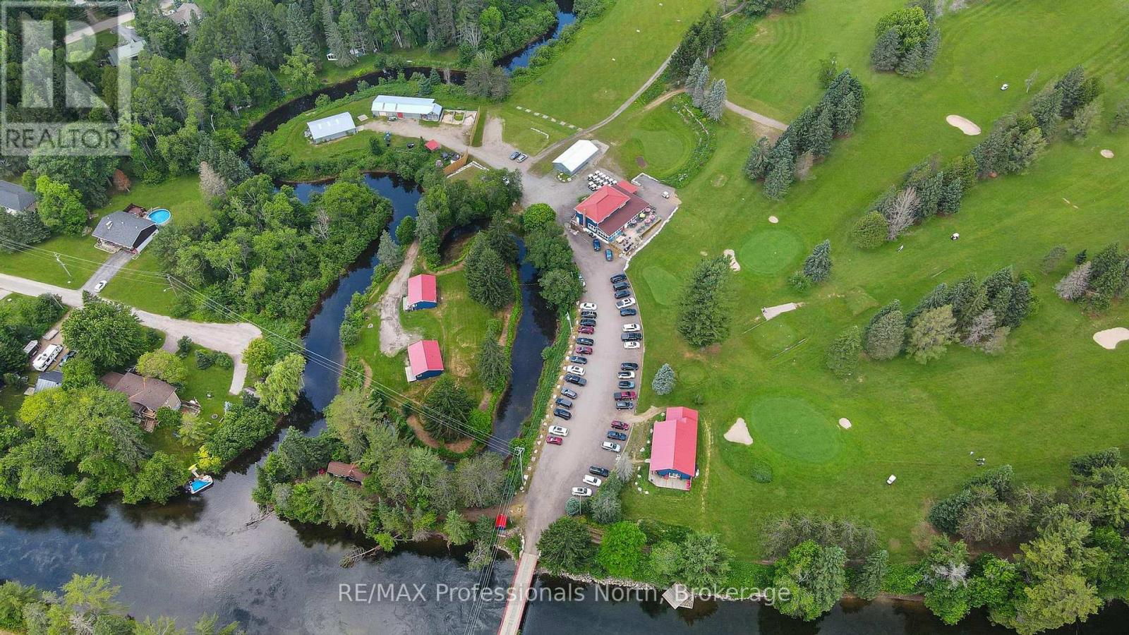 A unique offering. The Gull River Golf Club has been a staple in the community of Minden for a very long time. The beautifully scenic course winds around the Gull River with over 2,200 feet of shoreline and is a favourite among Locals and Visitors alike. Offering 9 exceptional holes of golf, Par 35, and includes a Pro Shop, putting green, chipping area and driving range. Mulligan's Restaurant and Patio (leased) is licensed for 150 people. Also included? A 3 bdrm. apartment above the restaurant, a 6 bedroom, 3 bath house, two 2-bedroom cottages and a 1-bedroom cottage - all provide additional revenues to the property. The 3 cottages have a great view of Beaver Creek. The Course hosts many tournaments and special events throughout the season. Outbuildings include a Garage, a Mechanical Repair Building and additional Storage Shed and the Main Building offers 2 attached garages behind. This is your opportunity to own a local treasure nestled in the heart of Minden and the Haliburton Highlands. (id:64974)