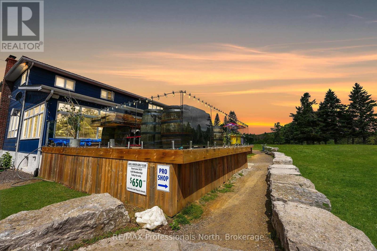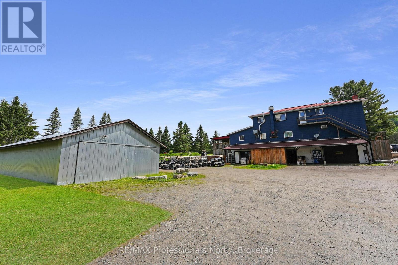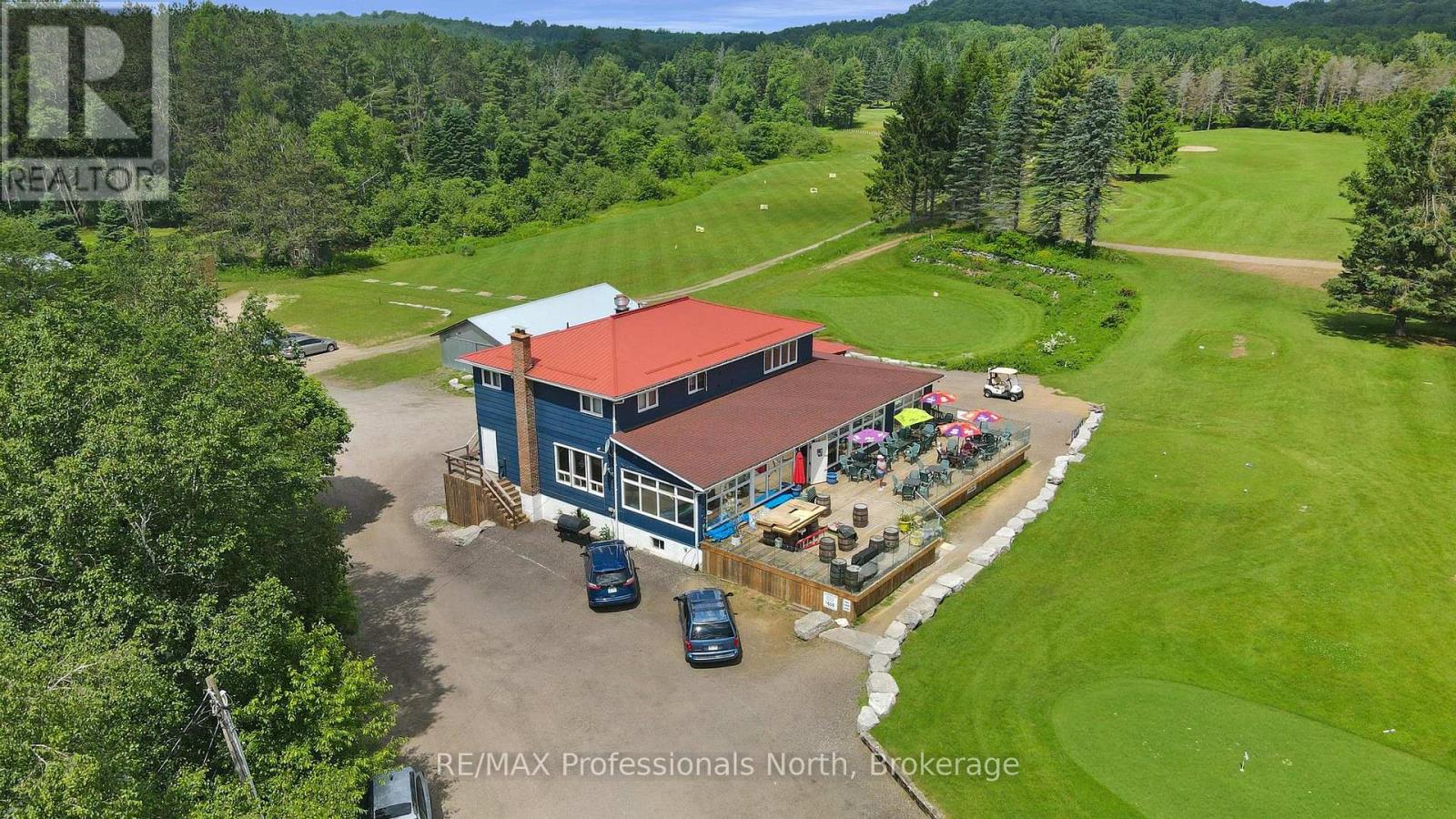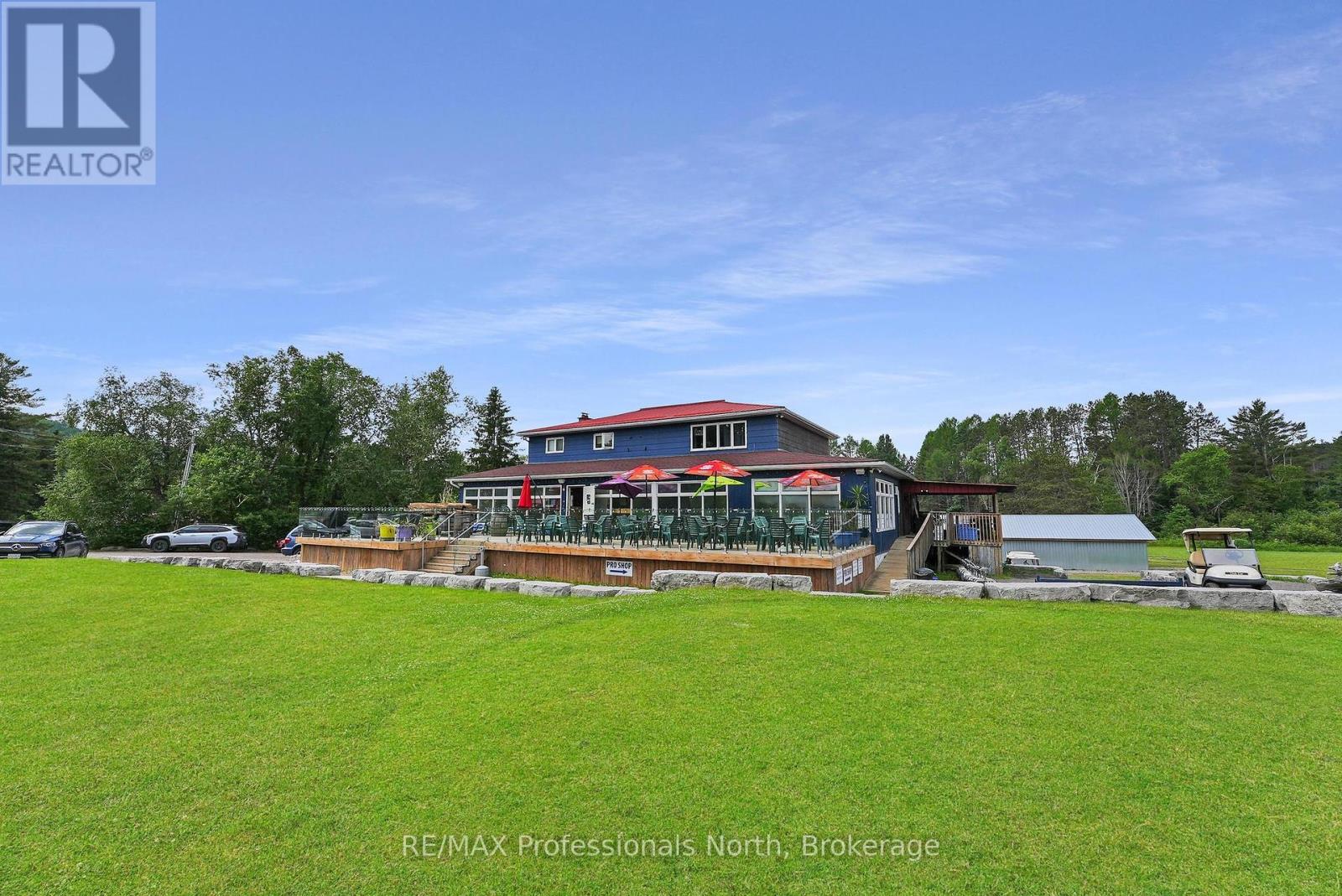 A unique offering. The Gull River Golf Club has been a staple in the community of Minden for a very long time. The beautifully scenic course winds around the Gull River with over 2,200 feet of shoreline and is a favourite among Locals and Visitors alike. Offering 9 exceptional holes of golf, Par 35, and includes a Pro Shop, putting green, chipping area and driving range. Mulligan's Restaurant and Patio (leased) is licensed for 150 people. Also included? A 3 bdrm. apartment above the restaurant, a 6 bedroom, 3 bath house, two 2-bedroom cottages and a 1-bedroom cottage - all provide additional revenues to the property. The 3 cottages have a great view of Beaver Creek. The Course hosts many tournaments and special events throughout the season. Outbuildings include a Garage, a Mechanical Repair Building and additional Storage Shed and the Main Building offers 2 attached garages behind. This is your opportunity to own a local treasure nestled in the heart of Minden and the Haliburton Highlands. (id:64974)