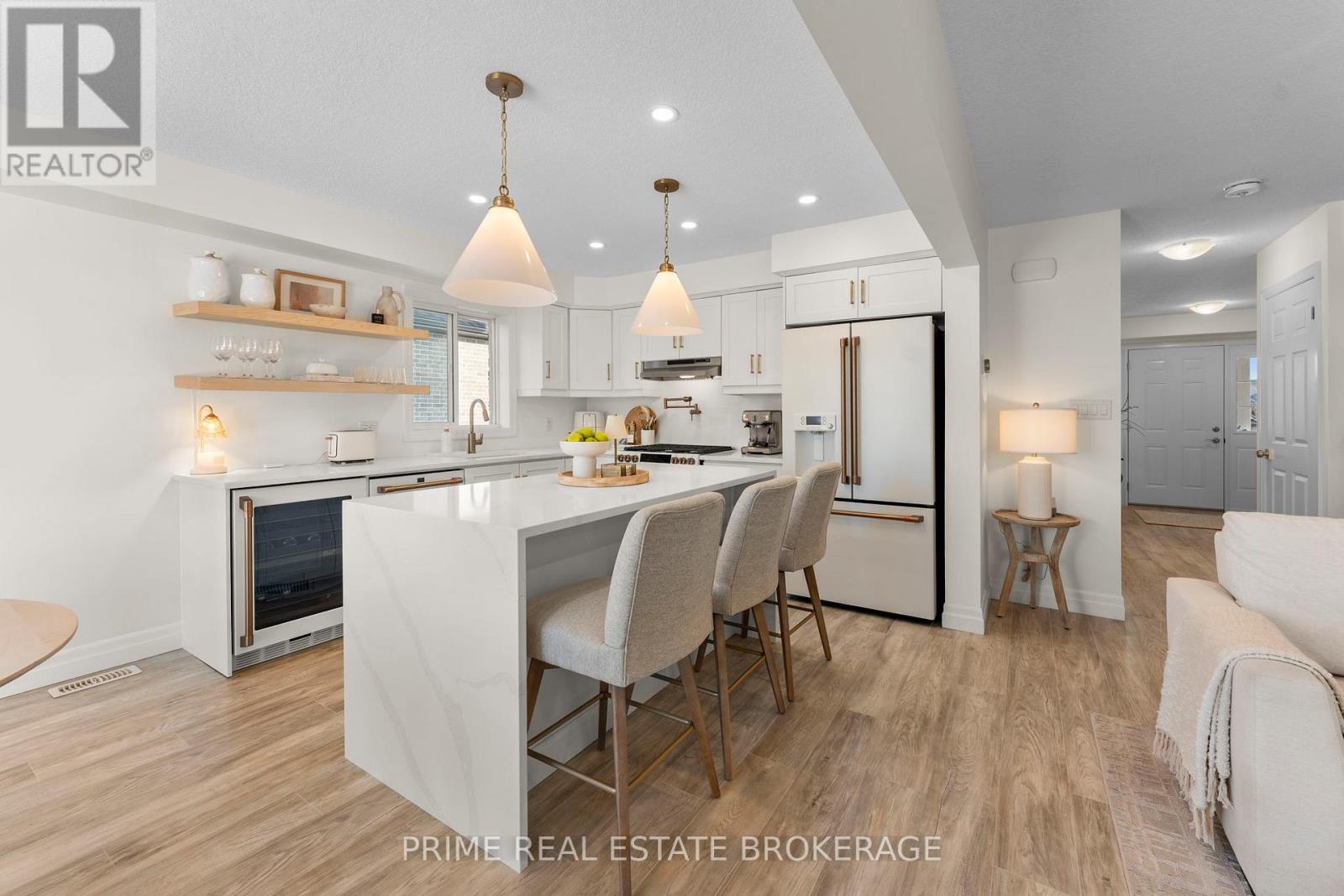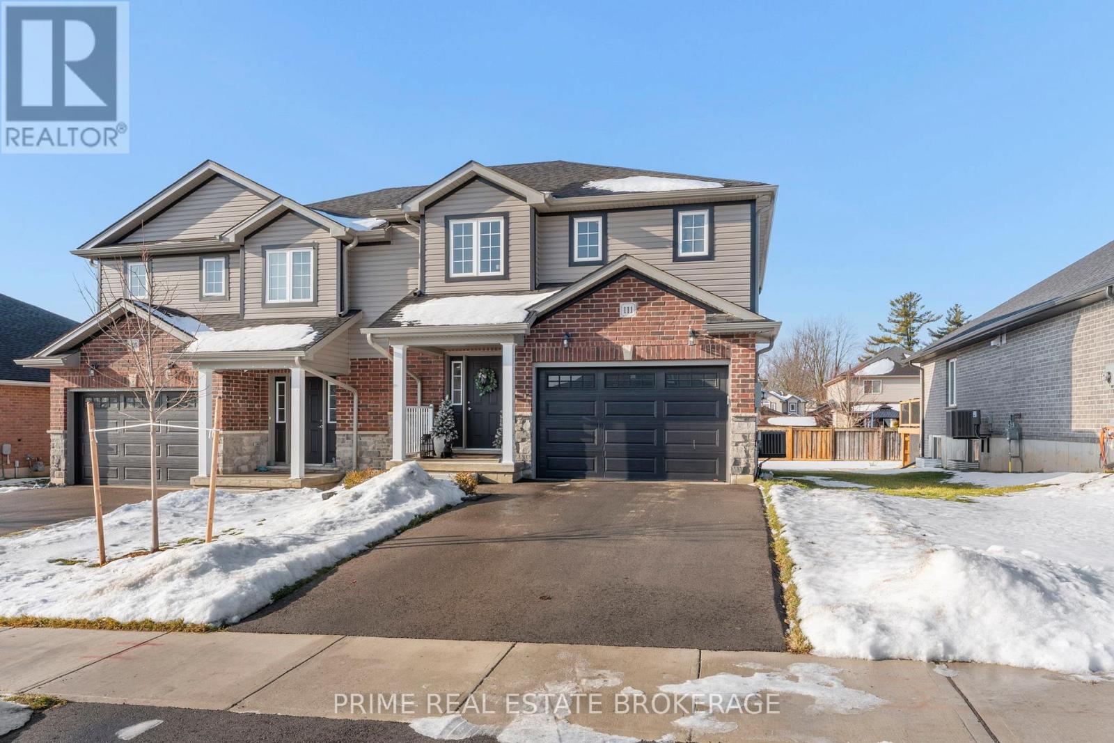 Welcome to 111 Lossing Drive, a beautifully finished 2023 built semi detached home located in the heart of the family friendly community of Norwich.From the moment you step inside, the home makes a strong first impression. The welcoming foyer features a custom built-in bench with elegant gold sconce lighting on either side, immediately setting the tone for the thoughtful design carried throughout the home. Soft neutral tones, upgrades throughout, and an abundance of natural light create a warm, refined feel that is both stylish and inviting.The main living space is the heart of the home. A striking stone feature wall with a gas fireplace, paired with custom built-ins, anchors the room and creates a comfortable, visually impressive gathering space. The open concept layout flows naturally into the kitchen and dining area, which stands out with high-end GE Café appliances, quartz countertops, and a statement waterfall island that brings both style and everyday function together.Upstairs, the home offers three spacious bedrooms, including a primary suite with its own ensuite bathroom, along with a separate full bathroom serving the additional bedrooms which is an ideal layout for growing families and guests alike.The partially finished basement adds valuable living space and is currently set up as a home gym, but could easily be used as a rec room, home office, or media space to suit your needs.Set within a quiet, welcoming neighbourhood, 111 Lossing Drive offers the rare combination of nearly new construction, thoughtful upgrades, and move-in-ready living... An exceptional opportunity to own a home where comfort, style, and functionality come together effortlessly. (id:64974)