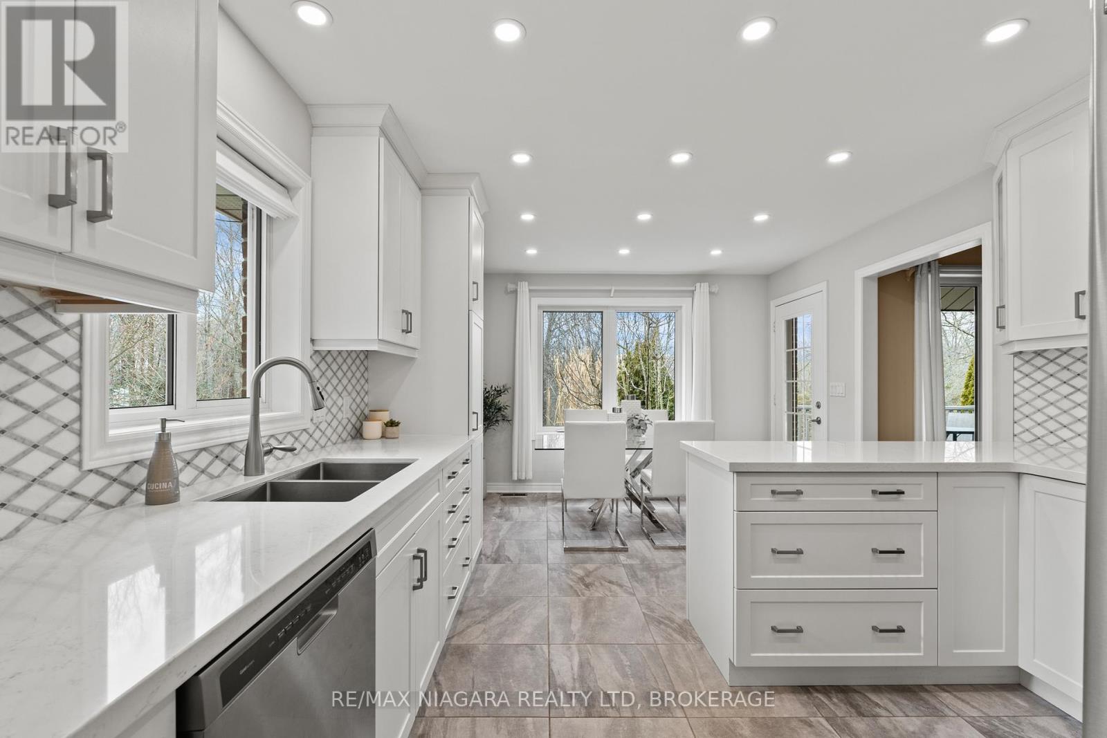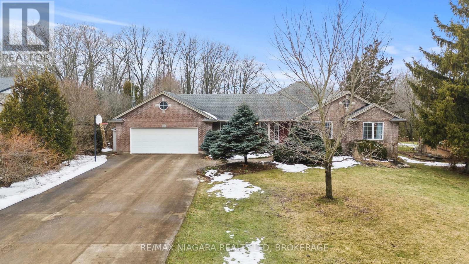 Looking for peace, privacy, and nature while still being close to town? Welcome to 111 Pearson Road in the desirable Cooksmills area of Welland. Situated on just over half an acre, this sprawling executive brick bungalow offers the perfect balance of country living and modern comfort. A charming covered front porch welcomes you into a bright and inviting foyer. The main floor features a formal dining room ideal for entertaining, while the spacious living room showcases gleaming hardwood floors and a cozy gas fireplace, creating the perfect space to relax with family and friends. The recently renovated kitchen is both stylish and functional, featuring quartz countertops, updated appliances, and a modern backsplash. A sun-filled breakfast nook offers beautiful views of the surrounding nature, making it the perfect place to start your day. The main floor also includes three bedrooms, including a spacious primary retreat with ample closet space and a recently updated 3-piece ensuite. An additional 4-piece bathroom and convenient main floor mudroom/laundry room complete the level. The fully finished basement expands the living space with a large recreation room, two additional bedrooms, and a 3-piece bathroom, offering flexibility for guests, a home office, gym, or hobby space. Step outside and discover a private backyard oasis surrounded by mature trees. A gentle babbling brook runs through the ravine, creating a peaceful setting to relax on the back deck or unwind in the hot tub. Additional highlights include an attached double-car garage and an expansive concrete driveway with plenty of parking. Ideally located between Welland and Niagara Falls, this property offers convenient access to the QEW, local amenities, and the new Niagara Falls Hospital scheduled for completion in 2028. Experience the tranquility of country living while staying close to everything you need. (id:64974)