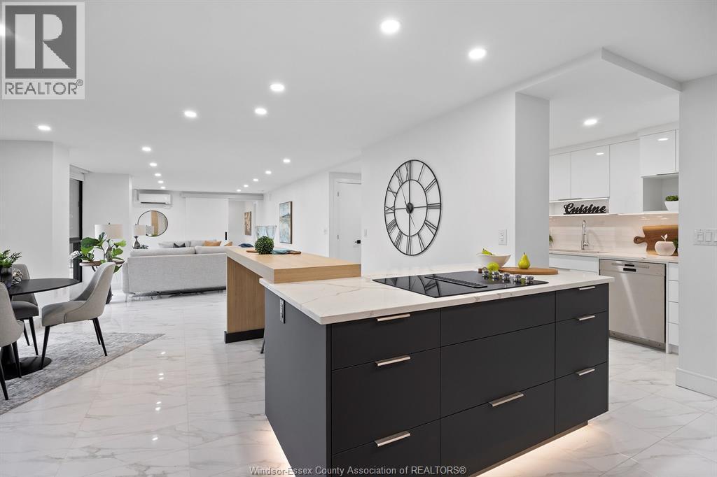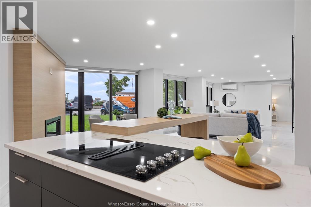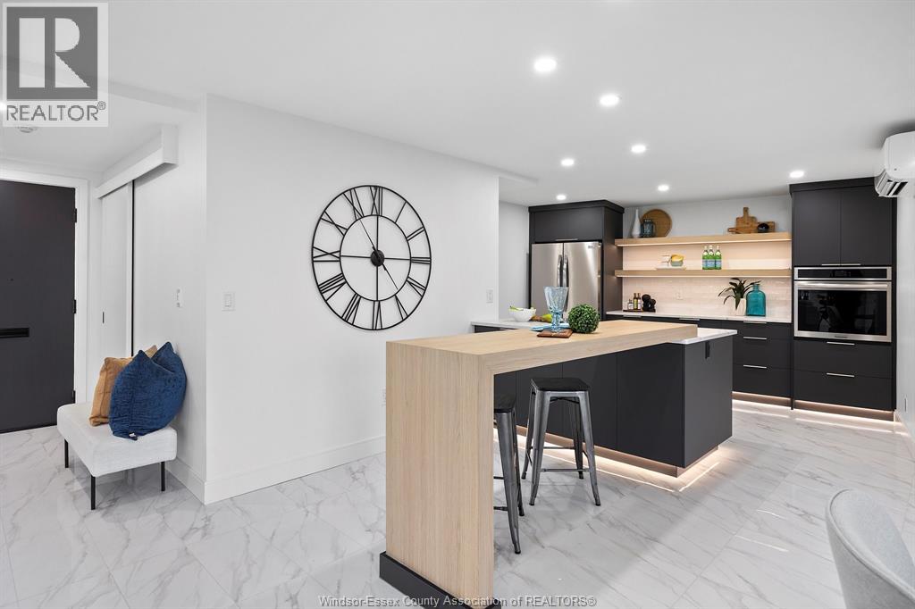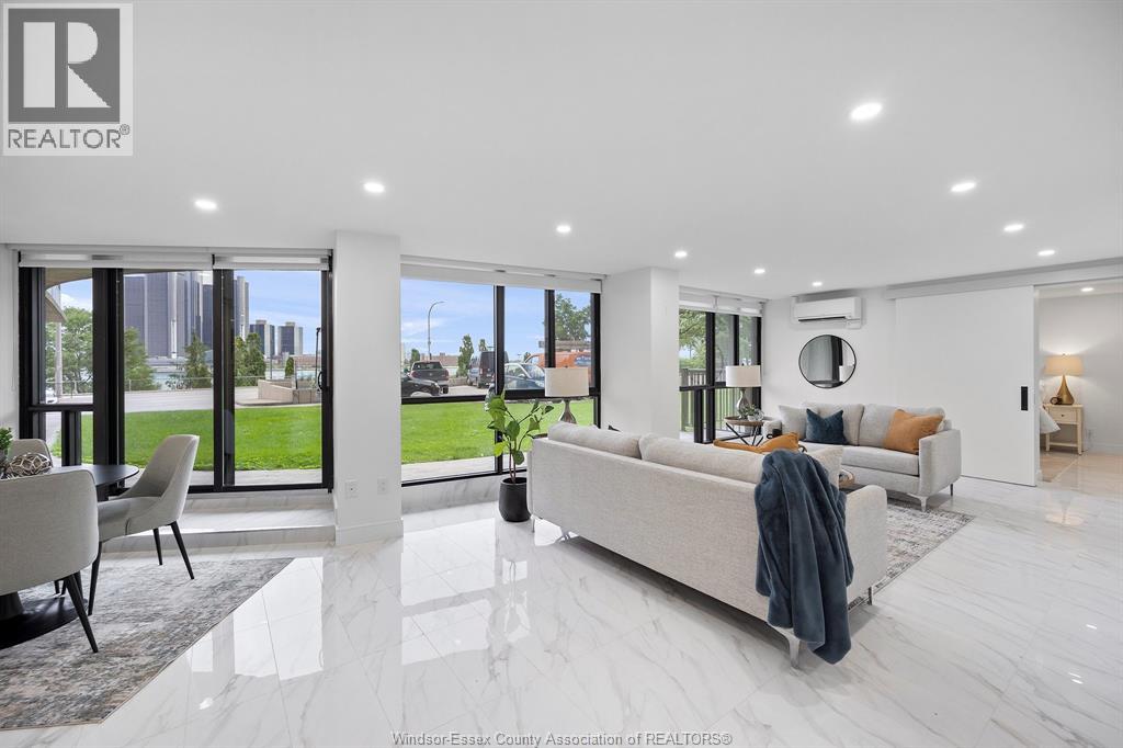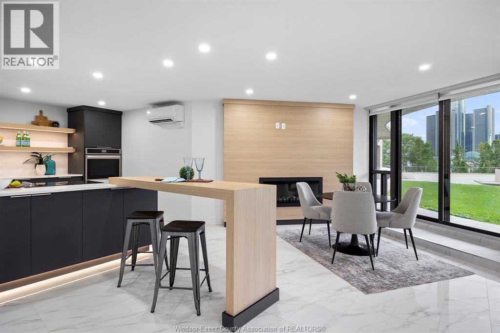 Wake up to panoramic views of the Detroit River and city skyline in this fully renovated 1,200 sq. ft. 1 bed, 2 bath condo. This oversized suite has just undergone a $250,000 renovation and has been stripped to the studs and rebuilt from scratch. This was a high end renovation with every surface, fixture, and finish professionally updated—no expense spared. The spacious open-concept layout features a custom kitchen with large island and walk-in pantry, a dining area with sleek linear electric fireplace, and a family room framed by incredible views, while the primary suite offers a spa-inspired ensuite and an oversized walk-in closet with custom shelving. Located in a secure, smoke-free, and pet-free building, this residence includes one underground parking spot and is just steps from City Hall, the police station, Casino Windsor and waterfront amenities. For US commuters, the Windsor Detroit Tunnel is just around the corner! Enjoy the extraordinary waterfront trails literally right outside your door. There is an option to purchase fully furnished. (id:64974)