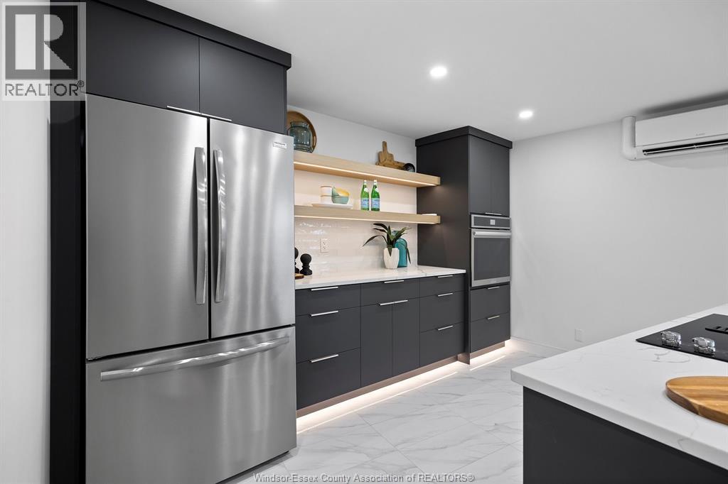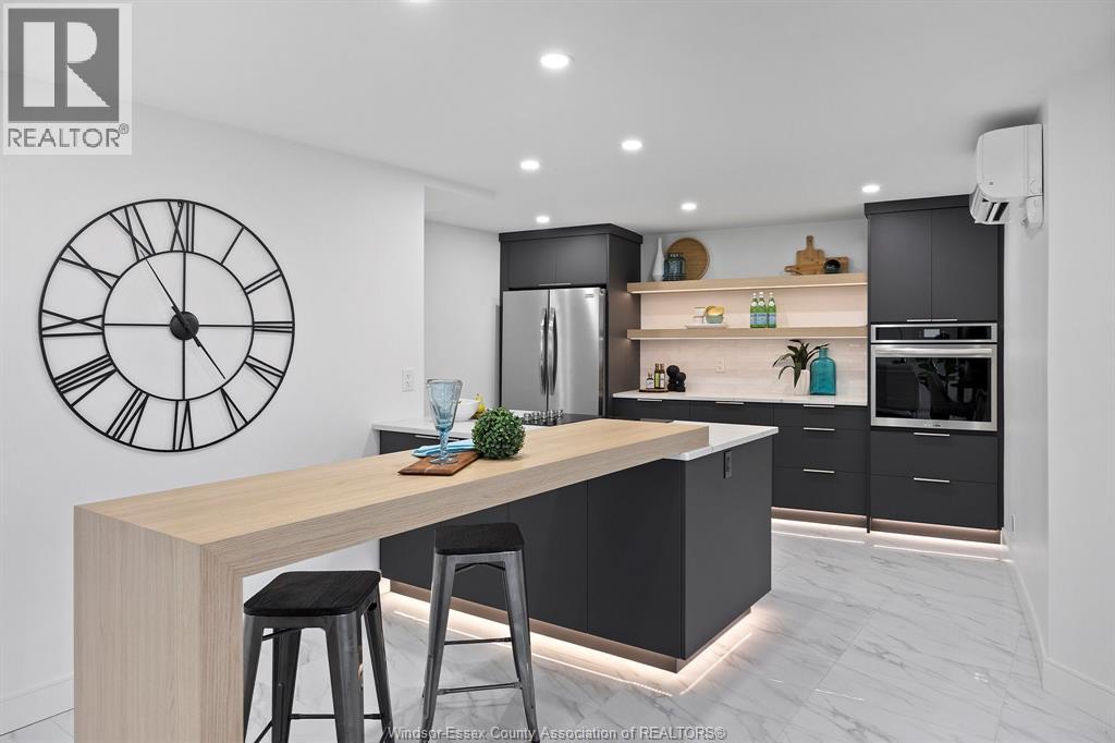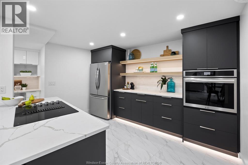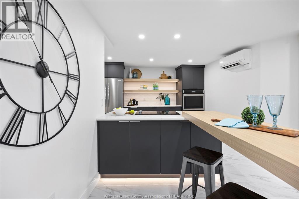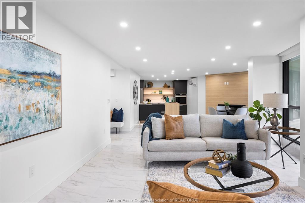 Wake up to panoramic views of the Detroit River and city skyline in this fully renovated 1,200 sq. ft. 1 bed, 2 bath condo. This oversized suite has just undergone a $250,000 renovation and has been stripped to the studs and rebuilt from scratch. This was a high end renovation with every surface, fixture, and finish professionally updated—no expense spared. The spacious open-concept layout features a custom kitchen with large island and walk-in pantry, a dining area with sleek linear electric fireplace, and a family room framed by incredible views, while the primary suite offers a spa-inspired ensuite and an oversized walk-in closet with custom shelving. Located in a secure, smoke-free, and pet-free building, this residence includes one underground parking spot and is just steps from City Hall, the police station, Casino Windsor and waterfront amenities. For US commuters, the Windsor Detroit Tunnel is just around the corner! Enjoy the extraordinary waterfront trails literally right outside your door. There is an option to purchase fully furnished. (id:64974)