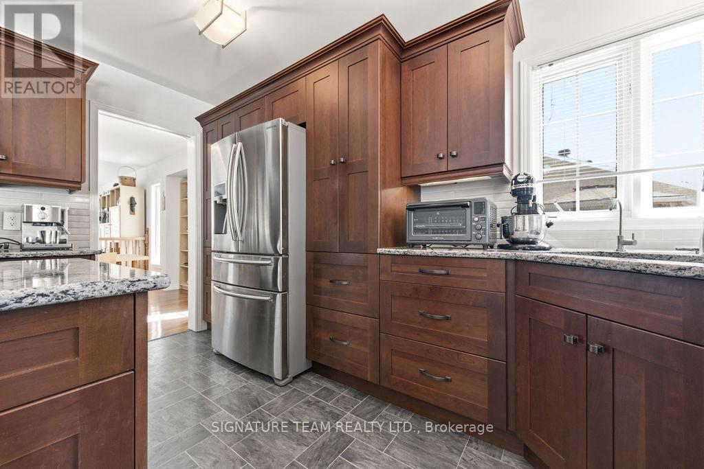 Welcome to this exceptional home in one of Deep River's most desirable neighbourhoods! Offering 4 bedrooms and 3 full bathrooms, this property combines modern comfort with functional living space for the whole family. The spacious primary suite features a private ensuite bath and a walk-in closet, providing the perfect retreat. At the heart of the home is a stunning, modern kitchen complete with rich cherry cabinetry, quartz countertops, and high-end appliances. Enjoy casual meals in the bright breakfast nook or relax in the adjoining sitting area, highlighted by a cozy gas fireplace and direct access to a beautiful deck overlooking the landscaped, fully fenced backyard-ideal for entertaining or quiet evenings outdoors. The main floor also boasts a formal dining room and an impressive sunken living room with vaulted ceilings, creating an open and airy atmosphere. Additional features include a double attached garage and a partly finished basement offering a large family room with a gas stove, a 3-piece bathroom, laundry room, fourth bedroom, and a generous mechanical/storage area. This well-appointed home offers the perfect blend of style, space, and location. Don't miss your opportunity to make it yours! (id:64974)