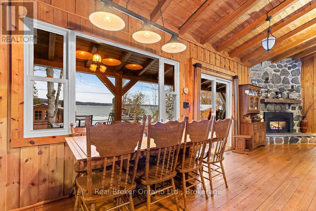 Discover the ultimate four-season waterfront retreat at 111 Wilson Drive, an immaculately maintained and fully renovated property set on the pristine shoreline of Colpoys Bay in Georgian Bluffs. Nestled on a private, flat, tree-lined 70' x 204' lot with breathtaking views of the Niagara Escarpment, this turn-key property offers a sandy walk-out beach, a handcrafted docking system accommodating a 26' boat, multiple watercraft racks, a beach firepit, and a fully equipped Beach House-creating an unmatched setting for swimming, paddling, boating, and family fun. The beautifully updated 1,000 sq ft main home showcases cedar and pine construction, high ceilings, refinished original wood floors, a stunning stone gas fireplace, a high-functioning wood-burning stove, and an open-concept kitchen with custom cabinetry, premium appliances, and a 9'4" island. Thoughtfully upgraded throughout, the home features new windows and doors, insulated steel roofing, municipal water with RO system, hot-water-on-demand, a 2018 septic system, updated electrical and plumbing, fully refinished bathroom, extensive insulation, tile drainage, and a Napoleon natural gas furnace for year-round comfort. Expansive outdoor decking, an 8'x8' deluxe outdoor shower, a designated outdoor cooking deck, an 8-person hot tub, and multiple outbuildings-including a Cabin, a two-level Fort, a Utility Cabin, and the Beach House-enhance the lifestyle experience. Located just minutes from Wiarton, close to golf, trails, beaches, and marinas, this rare offering combines peaceful seclusion with exceptional recreation. A truly turn-key waterfront paradise where memories are made and cherished for generations. (id:64974)