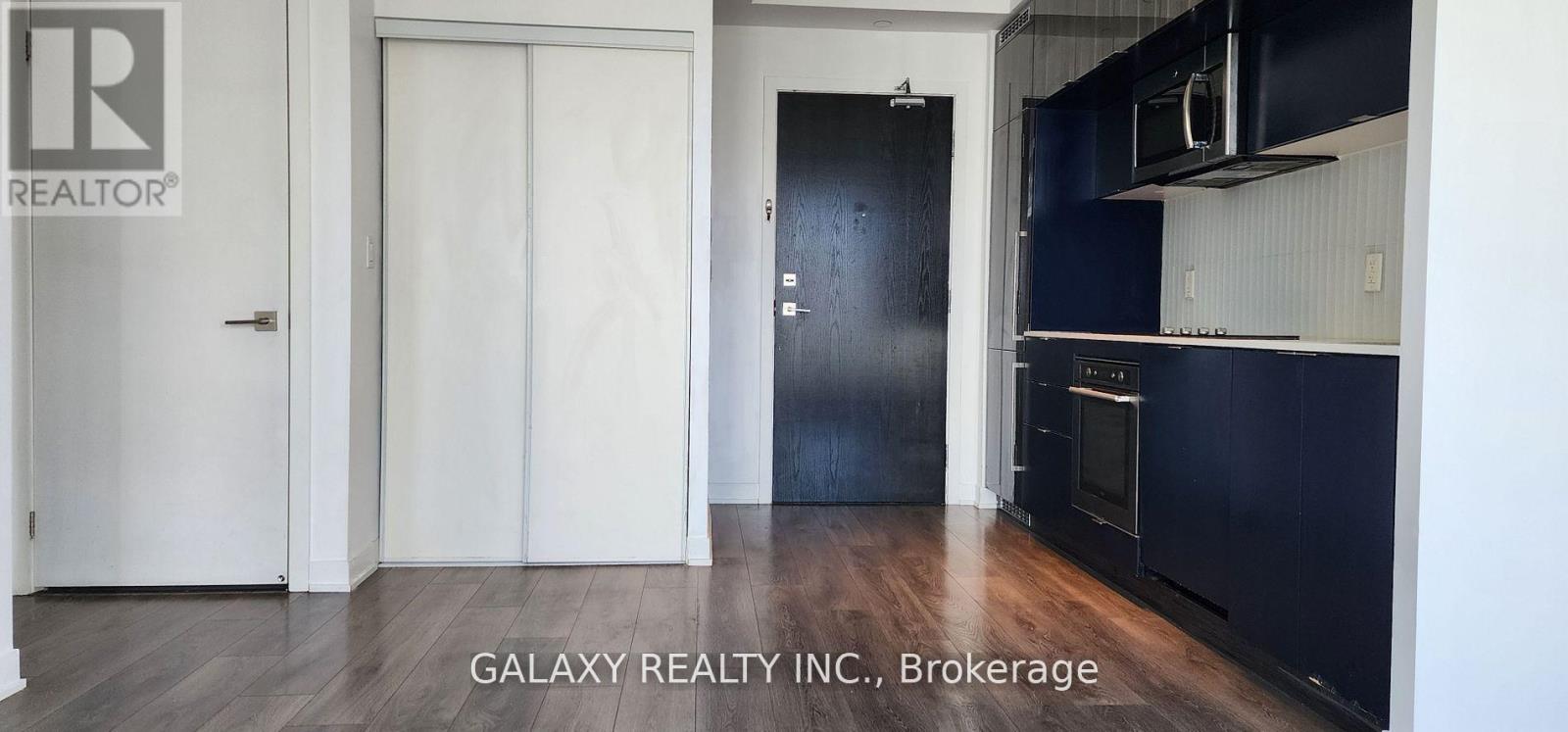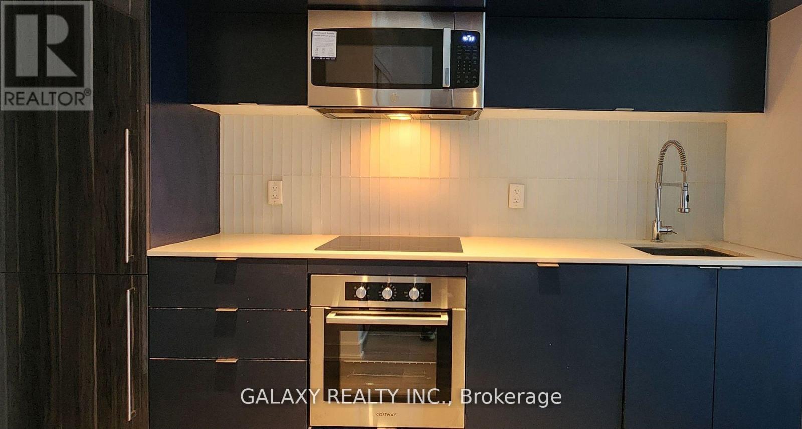 Boutique Flo Condo. A 12-Storey Building On A Quite Low-Rise Residential St.. Beautiful Modern Style One Bedroom with Balcony. Laminate Floor Thru-Out, 9' Ft Ceiling. Amenities Incl: 2 Roof Top Terraces & Party Rm, GYM, Visitor Parking. Designer Kitchen, SS Appliances, Built-in Fridge, Newly Cooktop, New Oven Stove and New Microwave/Hood Fan. Stone Counter-Top, Glass Tile Backsplash, Front-Load Washer & Dryer. Minutes Walk To Subway station, Nearby Hullmark Centre, Service Canada, Restaurants, Supermarkets, Library. Unit is Freshly painted. (id:64974)